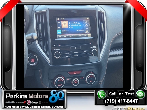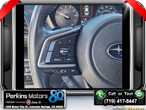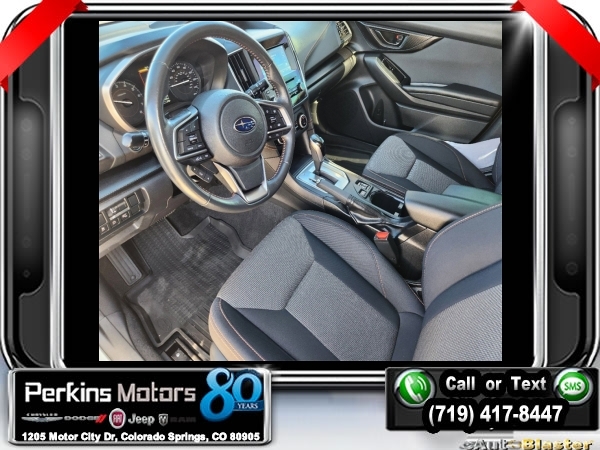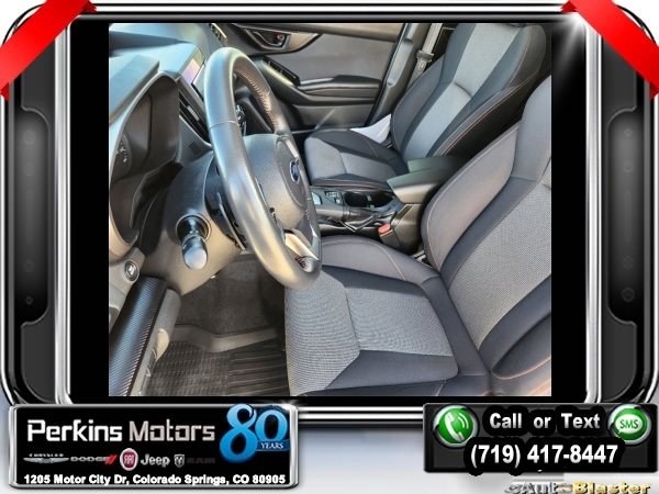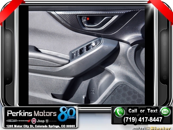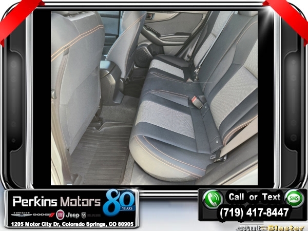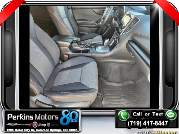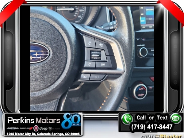 Crystal White Pearl AWD 2.0L DOHC Lineartronic CVT<br><br>6-Way Power Driver's Seat, Blind Spot Detection (BSD), EyeSight System, Keyless Access w/Push-Button Start, Moonroof Package, Power Moonroof, Radio: Subaru STARLINK 6.5 Multimedia Plus System, Subaru STARLINK Smartphone Integration.<br><br><br>Clean CARFAX.<br><br>Check us out at www.perkinsmotors.com to see our specials! Since opening our doors in 1944, we’ve been proud to serve Colorado Springs, CO, and the surrounding areas of Pueblo, Castle Rock and Denver, CO. Throughout this time of being family owned for 80 years, we’ve maintained a firm commitment to our customers: to offer a wide selection of New Chrysler, Dodge, Fiat, Jeep, and Ram vehicles and quality pre-owned vehicles, and provide a quick, no-hassle car-buying process that ensures everyone drives off the lot satisfied with their purchase.<br><br><br>Awards:<br> * ALG Residual Value Awards, Residual Value Awards<br><br>Moonroof Package (6-Way Power Driver's Seat, Blind Spot Detection (BSD), EyeSight System, Keyless Access w/Push-Button Start, and Power Moonroof), Radio: Subaru STARLINK 6.5 Multimedia Plus System, Subaru STARLINK Smartphone Integration, 17 Alloy Wheels, 3.90 Axle Ratio, 4-Wheel Disc Brakes, 6 Speakers, ABS brakes, Air Conditioning, All-Weather Floor Liners, Alloy wheels, AM/FM radio: SiriusXM, Anti-whiplash front head restraints, Auto-Dimming Exterior Mirror w/Approach Light, Auto-Dimming Mirror w/Compass & HomeLink, Automatic temperature control, Brake assist, Bumpers: body-color, CD player, Cloth Upholstery, Cruise Control, Driver door bin, Driver vanity mirror, Dual front impact airbags, Dual front side impact airbags, Electronic Stability Control, Emergency communication system: STARLINK Safety and Security (Subscription Required), Exterior Parking Camera Rear, Four wheel independent suspension, Front anti-roll bar, Front Bucket Seats, Front Center Armrest, Front fog lights, Front reading lights, Fully automatic headlights, Heated door mirrors, Heated Front Bucket Seats, Heated front seats, Illuminated entry, Knee airbag, Leather Shift Knob, Low tire pressure warning, Occupant sensing airbag, Outside temperature display, Overhead airbag, Overhead console, Panic alarm, Passenger door bin, Passenger vanity mirror, Power door mirrors, Power steering, Power windows, Radio data system, Rear anti-roll bar, Rear Bumper Cover, Rear window defroster, Rear window wiper, Remote keyless entry, Roof rack: rails only, Security system, Speed-sensing steering, Split folding rear seat, Spoiler, STARLINK/Apple CarPlay/Android Auto, Steering wheel mounted audio controls, Tachometer, Telescoping steering wheel, Tilt steering wheel, Traction control, Trip computer, and Variably intermittent wipers.