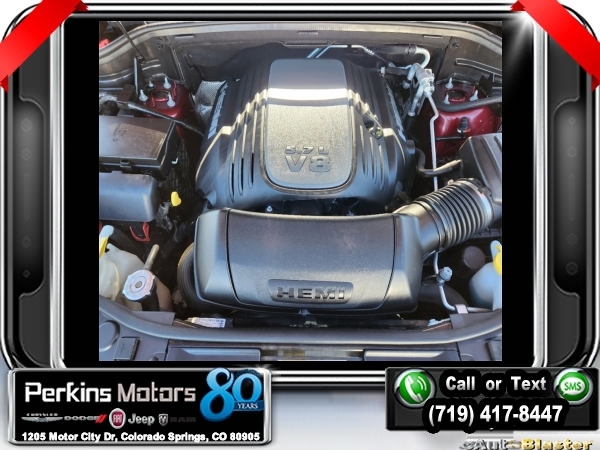 Octane Red Pearlcoat AWD HEMI 5.7L V8 Multi Displacement VVT 8-Speed Automatic<br><br>AWD, 1 USB Charging Port in Console, 12V Auxiliary Power Outlet In Console, 19 harman/kardon Amplified Speakers w/Subwoofer, 2nd Row Console w/Armrest & Storage, 3rd Row Floor Mat & Full Console, 7 & 4 Pin Wiring Harness, 825 Watt Amplifier, Adaptive Cruise Control w/Stop, Advanced Brake Assist, Black Roof Rails, Blacktop Package, Cargo Compartment Cover, Cargo Plus Group, Class IV Receiver Hitch, Full Speed Forward Collision Warning Plus, Gloss Black Badges, Gloss Black Exterior Mirrors, Heavy-Duty Engine Cooling, Illuminated Rear Cupholders, Integrated Roof Rail Crossbars, Lane Departure Warning Plus, Navigation System, Power Sunroof, Premium Interior Group, Premium Wrapped I/P Bezel, Quick Order Package 22S, Radio: Uconnect 4C Nav w/8.4 Display, Rear Load Leveling Suspension, Rear-Seat Video System, Suede Headliner, Technology Group, Trailer Brake Control, Trailer Tow Group IV, Wheels: 20 x 8.0 High Gloss Black Aluminum.<br><br><br>Check us out at www.perkinsmotors.com to see our specials! Since opening our doors in 1944, we’ve been proud to serve Colorado Springs, CO, and the surrounding areas of Pueblo, Castle Rock and Denver, CO. Throughout this time of being family owned for 80 years, we’ve maintained a firm commitment to our customers: to offer a wide selection of New Chrysler, Dodge, Fiat, Jeep, and Ram vehicles and quality pre-owned vehicles, and provide a quick, no-hassle car-buying process that ensures everyone drives off the lot satisfied with their purchase.<br><br><br>2nd Row Console w/Armrest & Storage (1 USB Charging Port in Console, 12V Auxiliary Power Outlet In Console, 3rd Row Floor Mat & Full Console, and Illuminated Rear Cupholders), Blacktop Package (Gloss Black Badges, Gloss Black Exterior Mirrors, and Wheels: 20 x 8.0 High Gloss Black Aluminum), Cargo Plus Group (Black Roof Rails, Cargo Compartment Cover, and Integrated Roof Rail Crossbars), Premium Interior Group (Premium Wrapped I/P Bezel and Suede Headliner), Quick Order Package 22S, Technology Group (Adaptive Cruise Control w/Stop, Advanced Brake Assist, Full Speed Forward Collision Warning Plus, and Lane Departure Warning Plus), Trailer Tow Group IV (7 & 4 Pin Wiring Harness, Class IV Receiver Hitch, Heavy-Duty Engine Cooling, Rear Load Leveling Suspension, and Trailer Brake Control), AWD, 19 harman/kardon Amplified Speakers w/Subwoofer, 825 Watt Amplifier, Navigation System, Power Sunroof, Radio: Uconnect 4C Nav w/8.4 Display, Rear-Seat Video System, 2nd Row Fold/Tumble Captain Chairs, 2nd Row Mini Console w/Cupholders, 2nd Row Seat Mounted Inboard Armrests, 3.09 Rear Axle Ratio, 3rd Row Floor Mat & Mini Console, 3rd row seats: split-bench, 4-Wheel Disc Brakes, 6-Passenger Seating, 9 Speakers, ABS brakes, Air Conditioning, Alloy wheels, AM/FM radio: SiriusXM, Anti-whiplash front head restraints, Apple CarPlay/Android Auto, Audio memory, Auto High-beam Headlights, Auto-dimming door mirrors, Auto-dimming Rear-View mirror, Auto-leveling suspension, Automatic temperature control, Blind Spot & Cross Path Detection, Blu-Ray Compatible Dual Screen Video, Brake assist, Bumpers: body-color, Compass, Cruise Control, Delay-off headlights, Driver door bin, Driver vanity mirror, Dual front impact airbags, Dual front side impact airbags, Electronic Stability Control, Emergency communication system: Roadside Assistance/9-1-1 Call, Four wheel independent suspension, Front anti-roll bar, Front Bucket Seats, Front Center Armrest w/Storage, Front dual zone A/C, Front fog lights, Front reading lights, Fully automatic headlights, Garage door transmitter, Heated door mirrors, Heated front seats, Heated rear seats, Heated steering wheel, High-Intensity Discharge Headlights, Illuminated entry, Knee airbag, Leather Suede Bucket Seats, Low tire pressure warning, Manufacturer's Statement of Origin, Memory seat, Occupant sensing airbag, Outside temperature display, Overhead airba