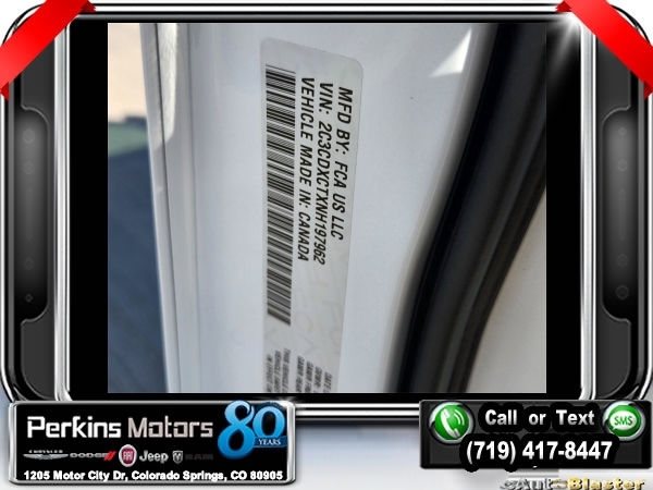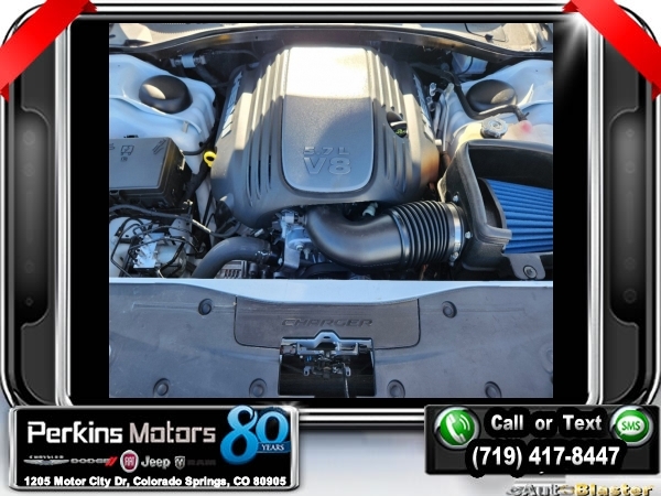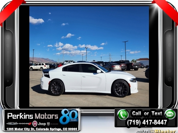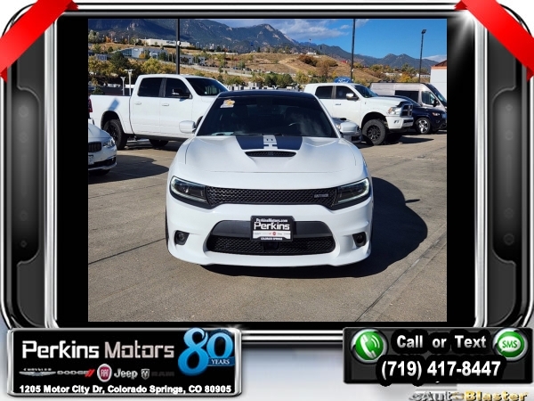 White Knuckle Clearcoat RWD HEMI 5.7L V8 Multi Displacement VVT 8-Speed Automatic<br><br>Black Artificial Leather, 1-Yr SiriusXM Guardian Trial, 19 harman/kardon GreenEdge Speakers, 2-Piece Shark Fin Antenna, 4G LTE Wi-Fi Hot Spot, 5-Year SiriusXM Traffic Service, 5-Year SiriusXM Travel Link Service, 8.4 Touchscreen Display, Adaptive Cruise Control w/Stop, Advanced Brake Assist, All Speed Traction Control, Apple CarPlay, Auto Adjust In Reverse Exterior Mirrors, Auto High Beam Headlamp Control, Auto-Dimming Exterior Driver Mirror, Bi-Function HID Projector Head Lamps, Black 1-Piece Performance Spoiler, Black-Edged Premium Floormats, Blind Spot & Cross Path Detection, Blind Spot Power Heated Mirror, Body Color Exterior Mirrors, Brake Calipers - Black, Brembo 4-Piston Fixed Caliper Brakes, Carbonite Interior Accents, Compass Gauge, Daytona Decals Hood/Roof/Trunk, Daytona Edition Group, Daytona Front Grille Badge, Daytona I/P Badge, Daytona Logo Nappa/Alcantara Seat, Deluxe Security Alarm, Driver & Passenger Lower LED Lamps, Driver Convenience Group, Exterior Mirrors Courtesy Lamps, Exterior Mirrors w/Heating Element, Flat-Bottom Steering Wheel, For Details, Visit DriveUconnect.com, Front & Rear LED Map Pockets, Front Overhead LED Lighting, Full Speed FWD Collision Warn Plus, Gloss Black I/P Cluster Trim Rings, Google Android Auto, GPS Antenna Input, GPS Navigation, harman/kardon Audio Group, harman/kardon GreenEdge Amp, HD Radio, Heated 2nd Row Seats, Heated Front Seats, Heated Steering Wheel, High Perform Suspension, Illuminated Rear Cupholders, Integrated Center Stack Radio, Integrated Voice Command w/Bluetooth, Lane Departure Warning Plus, Media Hub (2 USB, AUX), MOPAR Cold Air Intake System, Navigation & Travel Group, Performance Handling Group, Power 2-Way Driver Lumbar Adjust, Power 2-Way Passenger Lumbar Adjust, Power Front Driver/Passenger Seats, Power Sunroof, Power Tilt/Telescope Steering Column, Premium-Stitched Dash Panel, Quick Order Package 26N, Radio: Uconnect 4C Nav w/8.4 Display, Radio/Driver Seat/Mirrors Memory, Rain Sensitive Windshield Wipers, Rear Seat Armrest w/Storage Cupholder, Rhombi 2-Pc Wheel Center Cap, Satin Black Charger Decklid Badge, Security Alarm, SiriusXM Traffic Plus, SiriusXM Travel Link, Surround Sound, Technology Group, USB Host Flip, Ventilated Front Seats, Wheels: 20 x 9 Lo Gloss Granite Crystal.<br><br>Certified. FCA US LLC Certified Pre-Owned Details:<br><br> * Warranty Deductible: $100<br> * Includes First Day Rental, Car Rental Allowance, and Trip Interruption Benefits. SiriusXM 3 month trial subscription.<br> * Transferable Warranty<br> * 125 Point Inspection<br> * Roadside Assistance<br> * Powertrain Limited Warranty: 84 Month/100,000 Mile (whichever comes first) from original in-service date<br> * Vehicle History<br> * Limited Warranty: 3 Month/3,000 Mile (whichever comes first) after new car warranty expires or from certified purchase date<br><br><br>CARFAX One-Owner. Clean CARFAX.<br><br>Check us out at www.perkinsmotors.com to see our specials! Since opening our doors in 1944, we’ve been proud to serve Colorado Springs, CO, and the surrounding areas of Pueblo, Castle Rock and Denver, CO. Throughout this time of being family owned for 80 years, we’ve maintained a firm commitment to our customers: to offer a wide selection of New Chrysler, Dodge, Fiat, Jeep, and Ram vehicles and quality pre-owned vehicles, and provide a quick, no-hassle car-buying process that ensures everyone drives off the lot satisfied with their purchase.<br><br><br>Daytona Edition Group (Auto Adjust In Reverse Exterior Mirrors, Auto-Dimming Exterior Driver Mirror, Black 1-Piece Performance Spoiler, Black-Edged Premium Floormats, Blind Spot & Cross Path Detection, Body Color Exterior Mirrors, Carbonite Interior Accents, Daytona Decals Hood/Roof/Trunk, Daytona Front Grille Badge, Daytona I/P Badge, Daytona Logo Nappa/Alcantara Seat, Driver & Passenger Lower LED Lamps, Exterior Mirrors Courtesy La