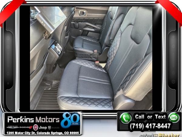 Wolf Gray AWD 2.5L I4 DGI Turbocharged DOHC 16V LEV3-ULEV70 281hp 8-Speed DCT<br><br>AWD, 12 Speakers, Front dual zone A/C, Heated & Ventilated Front Bucket Seats, Heated front seats, Heated rear seats, Navigation System, Power moonroof, Radio: AM/FM Bose Premium Audio System, Smart Key w/ Push Button and Remote Start, Ventilated front seats, Wheels: 8.5J x 20 Matte Gray Alloy.<br><br><br>CARFAX One-Owner.<br><br>Check us out at www.perkinsmotors.com to see our specials! Since opening our doors in 1944, we’ve been proud to serve Colorado Springs, CO, and the surrounding areas of Pueblo, Castle Rock and Denver, CO. Throughout this time of being family owned for 80 years, we’ve maintained a firm commitment to our customers: to offer a wide selection of New Chrysler, Dodge, Fiat, Jeep, and Ram vehicles and quality pre-owned vehicles, and provide a quick, no-hassle car-buying process that ensures everyone drives off the lot satisfied with their purchase.<br><br><br>AWD, 12 Speakers, Front dual zone A/C, Heated & Ventilated Front Bucket Seats, Heated front seats, Heated rear seats, Navigation System, Power moonroof, Radio: AM/FM Bose Premium Audio System, Smart Key w/ Push Button and Remote Start, Ventilated front seats, Wheels: 8.5J x 20 Matte Gray Alloy, 3.316 Axle Ratio, 3rd row seats: split-bench, 4-Wheel Disc Brakes, ABS brakes, Air Conditioning, Alloy wheels, AM/FM radio: SiriusXM, Apple CarPlay & Android Auto, Auto High-beam Headlights, Auto-dimming Rear-View mirror, Automatic temperature control, Brake assist, Bumpers: body-color, Cruise Control, Delay-off headlights, Driver door bin, Driver vanity mirror, Dual front impact airbags, Dual front side impact airbags, EC Mirror w/HomeLink Plug-N-Play, Electronic Stability Control, Emergency communication system: UVO Link, Four wheel independent suspension, Front anti-roll bar, Front Bucket Seats, Front Center Armrest, Front fog lights, Front reading lights, Fully automatic headlights, Heated door mirrors, Heated steering wheel, Illuminated entry, Illuminated Hatch Sill Plate, Knee airbag, Leather steering wheel, Low tire pressure warning, Memory seat, Occupant sensing airbag, Outside temperature display, Overhead airbag, Overhead console, Panic alarm, Passenger door bin, Passenger vanity mirror, Perforated Genuine Leather Seat Trim, Power door mirrors, Power driver seat, Power Liftgate, Power passenger seat, Power steering, Power windows, Radio data system, Rear air conditioning, Rear anti-roll bar, Rear reading lights, Rear window defroster, Rear window wiper, Rear-Seat Entertainment, Remote keyless entry, Roof rack: rails only, Security system, Side Step Bars, Speed-sensing steering, Split folding rear seat, Spoiler, Steering wheel mounted audio controls, Tachometer, Telescoping steering wheel, Tilt steering wheel, Traction control, Trip computer, Turn signal indicator mirrors, and Variably intermittent wipers.