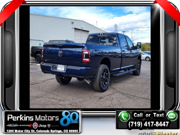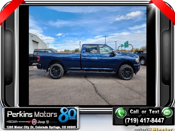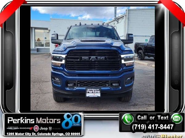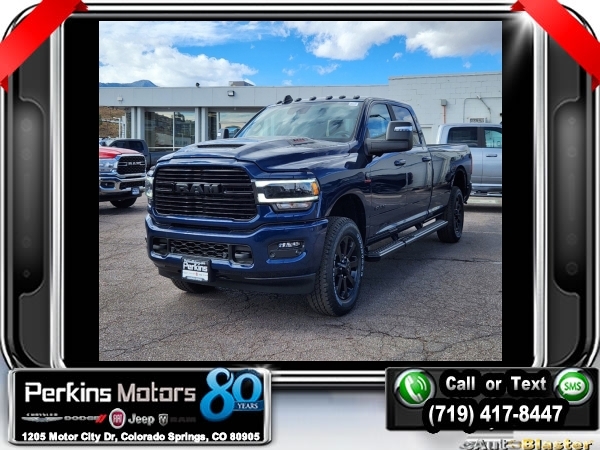 Factory MSRP: $93,405 $11,000 off MSRP! Patriot Blue Pearlcoat 2024 Ram 3500 Laramie 4WD 6-Speed Automatic I6<br><br>Check us out at www.perkinsmotors.com to see our specials! Since opening our doors in 1944, we’ve been proud to serve Colorado Springs, CO, and the surrounding areas of Pueblo, Castle Rock and Denver, CO. Throughout this time of being family owned for 80 years, we’ve maintained a firm commitment to our customers: to offer a wide selection of New Chrysler, Dodge, Fiat, Jeep, and Ram vehicles and quality pre-owned vehicles, and provide a quick, no-hassle car-buying process that ensures everyone drives off the lot satisfied with their purchase.<br><br>Bed Utility Group (LED Bed Lighting and MOPAR Spray In Bedliner), Cold Weather Group (Engine Block Heater), Laramie Level 1 Equipment Group (4G LTE Wi-Fi Hot Spot, Alexa Built-In, Apple CarPlay, Auto High Beam Headlamp Control, Auto Power-Folding Mirrors, Blind Spot & Cross Path Detection, Center Hub, Connected Travel & Traffic Services, Connectivity - US/Canada, Disassociated Touchscreen Display, Exterior Mirrors Courtesy Lamps, Exterior Mirrors w/Heating Element, Exterior Mirrors w/Supplemental Signals, For Details Visit DriveUconnect.com, For More Info, Call 800-643-2112, Forward & Reverse Utility Lights, Global Telematics Box Module (TBM), Google Android Auto, GPS Antenna Input, GPS Navigation, HD Radio, Integrated Voice Command w/Bluetooth, LED Reflector Headlamps, Mirror Running Lights, Off-Road Information Pages, Power Adjust Mirrors, Power Heat Fold Memory Telescopic Mirrors, Power-Adjustable Convex Aux Mirrors, Radio: Uconnect 5 Nav w/12.0 Display, Rear Window Defroster, Selectable Tire Fill Alert, SiriusXM Radio Service, SiriusXM w/360L, and Trailer Tow Pages), Night Edition (Body Color Grille Surround), Protection Group, Quick Order Package 21H Laramie, Safety Group (Adaptive Steering System), Snow Chief Group (Auxiliary Switches Prep, Clearance Lamps, and I/P Mounted Auxiliary Switches), Towing Technology Group (CTR Stop Lamp w/Cargo View Camera), 10 Speakers, 115V Auxiliary Rear Power Outlet, 2 Way Rear Headrest Seat, 220 Amp Alternator, 3.73 Axle Ratio, 4 Way Front Headrests, 4-Wheel Disc Brakes, 50 Gallon Fuel Tank, 5th Wheel/Gooseneck Towing Prep Group, 8.4 Touchscreen Display, ABS brakes, Active Noise Control System, Air Conditioning, Alloy wheels, AM/FM radio: SiriusXM with 360L, Apple CarPlay/Android Auto, Auto Level Rear Air Suspension, Auto-dimming Rear-View mirror, Automatic temperature control, Brake assist, Bumpers: body-color, Compass, Cruise Control, Delay-off headlights, Driver door bin, Driver vanity mirror, Dual Alternators Rated At 440 Amps, Dual front impact airbags, Dual front side impact airbags, Electronic Stability Control, Electronically Controlled Throttle, Folding Flat Load Floor Storage, Front anti-roll bar, Front Center Armrest w/Storage, Front dual zone A/C, Front License Plate Bracket, Front reading lights, Front Seat Back Map Pockets, Fully automatic headlights, Garage door transmitter, Heated door mirrors, Heated Front Seats, Heated front seats, Heated Steering Wheel, Heated steering wheel, High Back Seats, Illuminated entry, Integrated Center Stack Radio, Leather steering wheel, Leather Trim 40/20/40 Bench Seat, Low tire pressure warning, Manufacturer's Statement of Origin, MOPAR Front & Rear Rubber Floor Mats, Occupant sensing airbag, Outside temperature display, Overhead airbag, Overhead console, Painted Flat Wheel-to-Wheel Side Steps, Panic alarm, ParkView Rear Back-Up Camera, Passenger door bin, Passenger vanity mirror, Power 8-Way Adjustable Passenger Seat, Power Adjust 8-Way Driver Seat, Power door mirrors, Power driver seat, Power passenger seat, Power steering, Power Sunroof, Power windows, Radio data system, Radio: Uconnect 5 Nav w/8.4 D Sale price includes all manufacture's incentives and dealer discounts. Sale price not available on lease or compatible with special APR. $1000 - 2024 Bonus Cash . Exp. 0