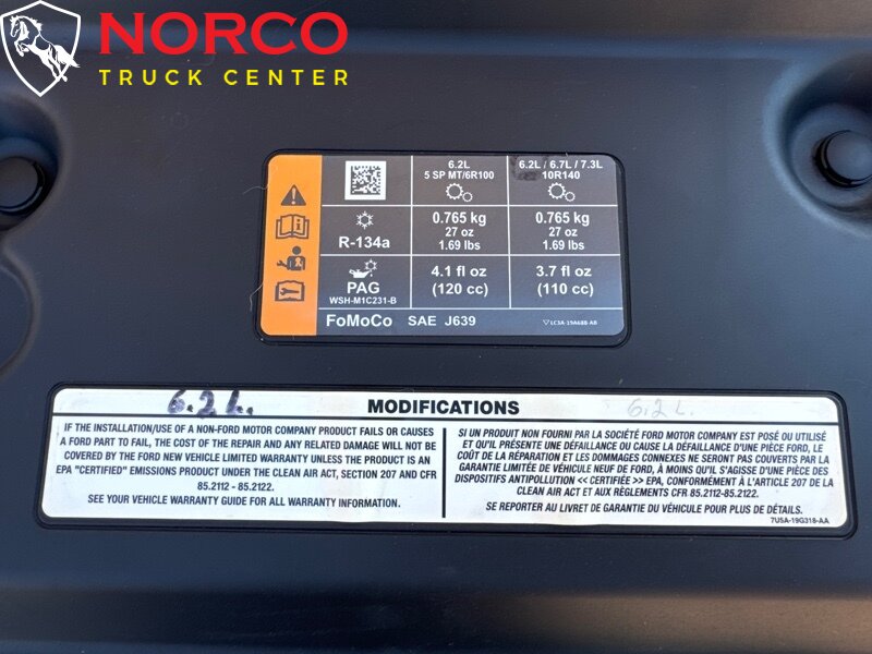 -- INSTALLED FEATURES: Air filtration, Front air conditioning, Front air conditioning zones: single, Airbag deactivation: passenger switch, Front airbags: dual, Side airbags: front, Side curtain airbags: front / rear, Antenna type: mast, Auxiliary audio input: Bluetooth / USB, Radio: AM/FM / voice operated, Speed sensitive volume control, Total speakers: 4, ABS: 4-wheel, Braking assist, Electronic brakeforce distribution, Front brake diameter: 14.29, Front brake type: ventilated disc, Power brakes, Rear brake diameter: 14.3, Rear brake type: ventilated disc, Armrests: front center, Door sill trim: scuff plate, Floor material: rubber/vinyl, Steering wheel trim: urethane, Assist handle: front, Cupholders: front, Overhead console: front, Power outlet(s): 12V front / USB front / USB-C front, Power steering, Reading lights: front / rear, Rearview mirror: manual day/night, Steering wheel: tilt and telescopic, Steering wheel mounted controls: audio / multi-function / phone / voice control, Storage: accessory hook / door pockets, Vanity mirrors: passenger, Axle ratio: 3.73, Alternator: 157 amps, Battery: maintenance-free, Battery rating: 650 CCA, Battery saver, Door handle color: black, Front bumper color: black, Grille color: black, Mirror color: black, Pickup bed light, Rear bumper color: black, Side door type: dual rear-hinged access, Tailgate: lift assist / removable, Window trim: black, Connected in-car apps: app marketplace integration, Infotainment: SYNC, Infotainment screen size: 4.2 in., Clock, Digital odometer, External temperature display, Gauge: oil pressure / tachometer / transmission temperature, Instrument cluster screen size: 2.3 in., Powertrain hour meter, Warnings and reminders: low fuel level / maintenance due, Headlights: auto delay off / auto on/off / halogen / quad headlights / wiper activated, Side mirror adjustments: manual / manual folding / manual telescoping, Towing mirrors, Automatic hazard warning lights, Camera system: rearview, Child seat anchors: LATCH system, Crumple zones: front, Impact sensor: alert system / door unlock / post-collision safety system, Programmable safety key, Rearview monitor: in dash, Emergency locking retractors: front / rear, Front seatbelts: 3-point, Rear seatbelts: 3-point, Seatbelt pretensioners: front, Seatbelt warning sensor: front, Driver seat manual adjustments: lumbar / reclining / 6, Front headrests: adjustable / 2, Front seat type: 40-20-40 split bench, Passenger seat manual adjustments: reclining / 4, Rear headrests: adjustable / 3, Rear seat folding: folds up / split, Rear seat type: 60-40 split bench, Upholstery: vinyl, Anti-theft system: vehicle immobilizer, Hill holder control, Roll stability control, Stability control, Traction control, Trailer stability control, Front shock type: gas, Front spring type: coil, Front stabilizer bar, Front suspension classification: independent, Front suspension type: twin I-beam, Rear shock type: gas, Rear spring type: leaf, Rear suspension classification: solid live axle, Rear suspension type: multi-leaf, Electronic messaging assistance: voice operated / with read function, Hands-free phone call integration: voice operated, Smart device app compatibility: FordPass Connect, Smart device app function: engine start / lock operation / maintenance status / vehicle location, Wi-Fi: hotspot, Wireless data link: Bluetooth, Spare tire mount location: underbody, Spare tire size: full-size, Spare wheel type: steel, Tire Pressure Monitoring System, Tire type: all season, Wheels: painted steel, Tow hooks: front, Trailer hitch, Trailer wiring: 4-pin / 7-pin, Front wipers: variable intermittent, Solar-tinted glass: front