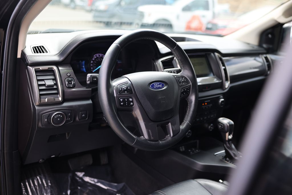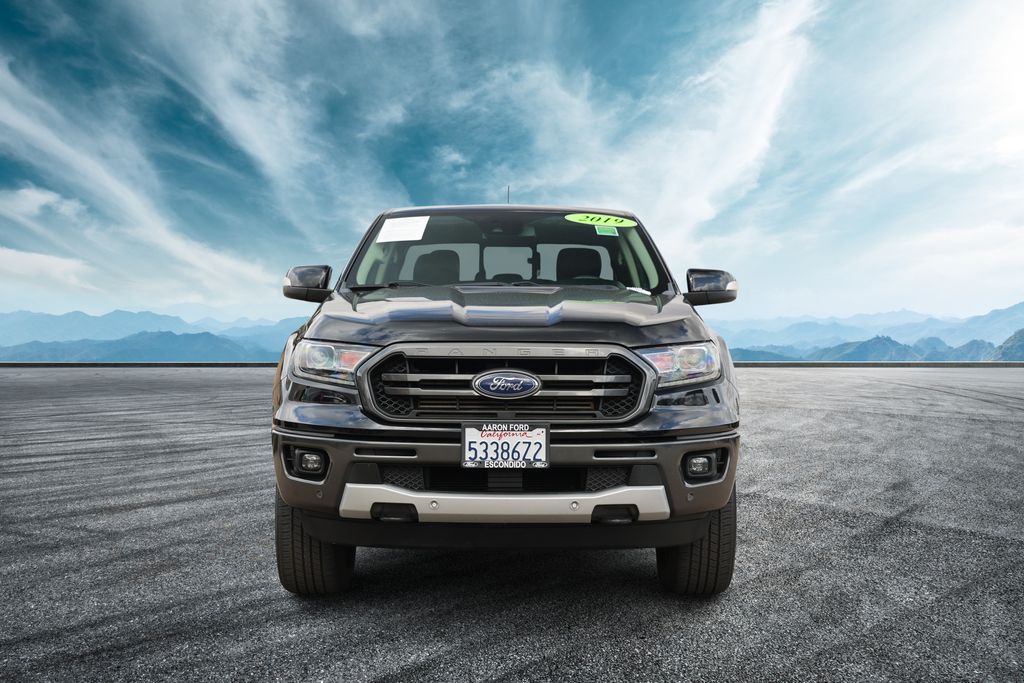 Shadow Black 2019 Ford Ranger Lariat RWD 10-Speed Automatic EcoBoost 2.3L I4 GTDi DOHC Turbocharged VCT 5" Rectangular Black Running Boards, 6 Speakers, ABS brakes, Adaptive Cruise Control, Air Conditioning, Alloy wheels, AppLink/Apple CarPlay and Android Auto, Black Grille w/Magnetic Surround & Bars, Brake assist, Compass, Electronic Stability Control, Equipment Group 501A Mid, Exterior Parking Camera Rear, Front dual zone A/C, Front fog lights, Front Heated Leather-Trimmed Bucket Seats, Fully automatic headlights, Heated door mirrors, Heated front seats, Illuminated entry, Low tire pressure warning, Magnetic Front & Rear Bumper, Magnetic Wheel-Lip Molding, Navigation, Radio: B&O Sound System by Bang & Olufsen, Rain-Sensing Wipers, Remote keyless entry, Remote Start, SiriusXM Satellite Radio, Sport Appearance Package, Sport Box Decal, SYNC 3, Technology Package, Traction control, Wheels: 17" Magnetic Painted Aluminum, Windshield Wiper De-Icer.21/26 City/Highway MPGAwards: * 2019 KBB.com 10 Favorite New-for-2019 Cars