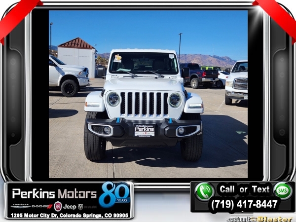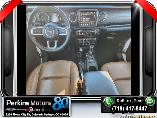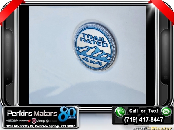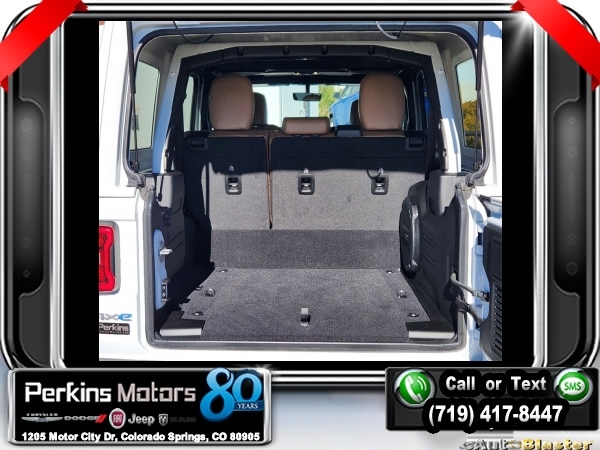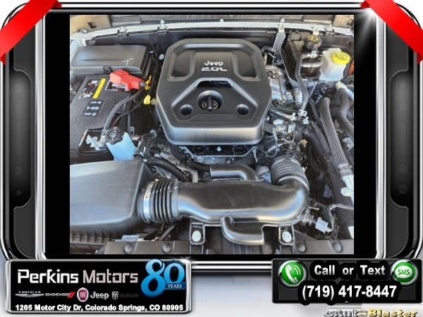 Bright White Clearcoat 4WD 2.0L I4 DOHC 8-Speed Automatic<br><br>2.0L I4 DOHC, 7 & 4 Pin Wiring Harness, 700 Amp Maintenance Free Battery, Auxiliary Switches, Body Color 3-Piece Hard Top, Class II Receiver Hitch, Cold Weather Group, Freedom Panel Storage Bag, Heated door mirrors, Heated Front Seats, Heated Steering Wheel, Navigation System, ParkView Rear Back-Up Camera, Quick Order Package 29P, Radio: Uconnect 4C Nav w/8.4 Display, Rear Window Defroster, Rear Window Wiper/Washer, Remote Start System, Trailer Tow & HD Electrical Group, Wheels: 20 x 8 Fully Painted Aluminum.<br><br><br>CARFAX One-Owner.<br><br>Check us out at www.perkinsmotors.com to see our specials! Since opening our doors in 1944, we’ve been proud to serve Colorado Springs, CO, and the surrounding areas of Pueblo, Castle Rock and Denver, CO. Throughout this time of being family owned for 80 years, we’ve maintained a firm commitment to our customers: to offer a wide selection of New Chrysler, Dodge, Fiat, Jeep, and Ram vehicles and quality pre-owned vehicles, and provide a quick, no-hassle car-buying process that ensures everyone drives off the lot satisfied with their purchase.<br><br><br>Cold Weather Group (Heated Front Seats, Heated Steering Wheel, and Remote Start System), Quick Order Package 29P, Trailer Tow & HD Electrical Group (7 & 4 Pin Wiring Harness, 700 Amp Maintenance Free Battery, Auxiliary Switches, and Class II Receiver Hitch), 2.0L I4 DOHC, Body Color 3-Piece Hard Top, Freedom Panel Storage Bag, Heated door mirrors, Navigation System, ParkView Rear Back-Up Camera, Radio: Uconnect 4C Nav w/8.4 Display, Rear Window Defroster, Rear Window Wiper/Washer, Wheels: 20 x 8 Fully Painted Aluminum, 3.73 Rear Axle Ratio, 4-Wheel Disc Brakes, 9 Speakers, ABS brakes, Air Conditioning, Alloy wheels, AM/FM radio, Anti-Spin Differential Rear Axle, Apple CarPlay/Android Auto, Auto-dimming Rear-View mirror, Automatic temperature control, Brake assist, Compass, Cruise Control, Delay-off headlights, Driver door bin, Driver vanity mirror, Dual front impact airbags, Dual front side impact airbags, Electronic Stability Control, Emergency communication system: SiriusXM Guardian, Front anti-roll bar, Front Bucket Seats, Front Center Armrest w/Storage, Front dual zone A/C, Front fog lights, Front reading lights, Fully automatic headlights, Garage door transmitter, Illuminated entry, Integrated roll-over protection, Leather Shift Knob, Leather steering wheel, Low tire pressure warning, Occupant sensing airbag, Outside temperature display, Panic alarm, Passenger door bin, Passenger vanity mirror, Power door mirrors, Power steering, Power windows, Premium McKinley Trimmed Seats, Radio data system, Rear anti-roll bar, Rear reading lights, Rear seat center armrest, Remote keyless entry, Security system, Split folding rear seat, Sport Suspension, Steering wheel mounted audio controls, Tachometer, Telescoping steering wheel, Tilt steering wheel, Traction control, Trip computer, Variably intermittent wipers, and Voltmeter.