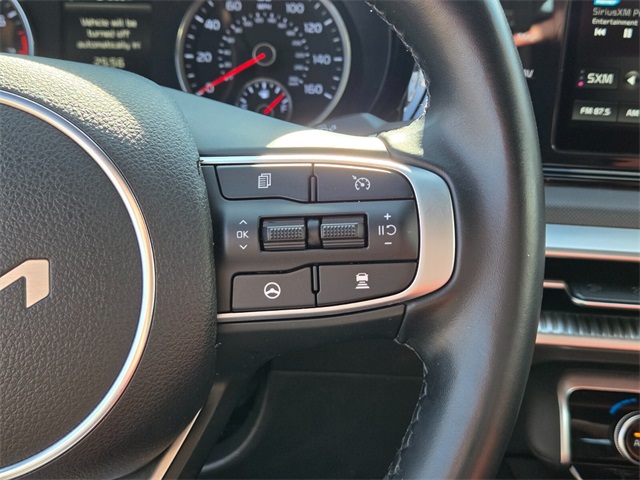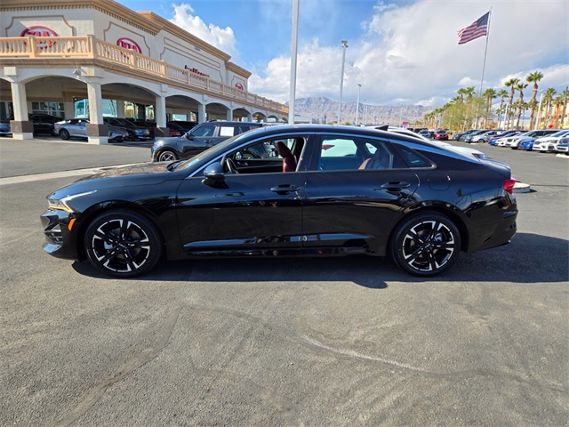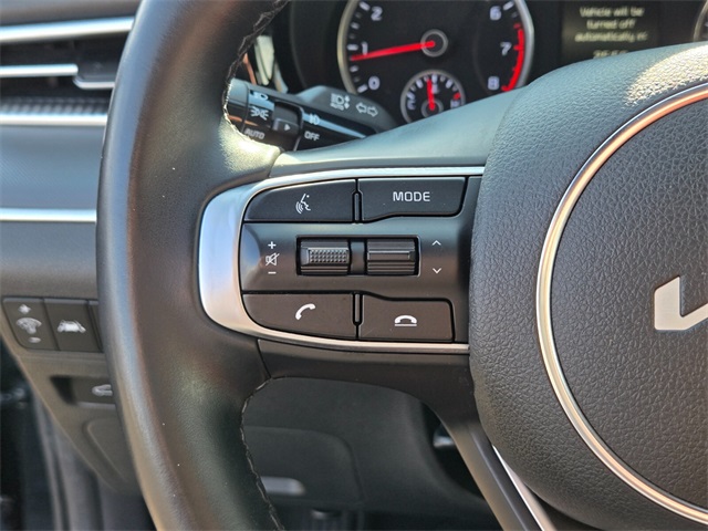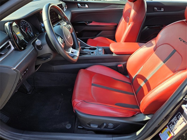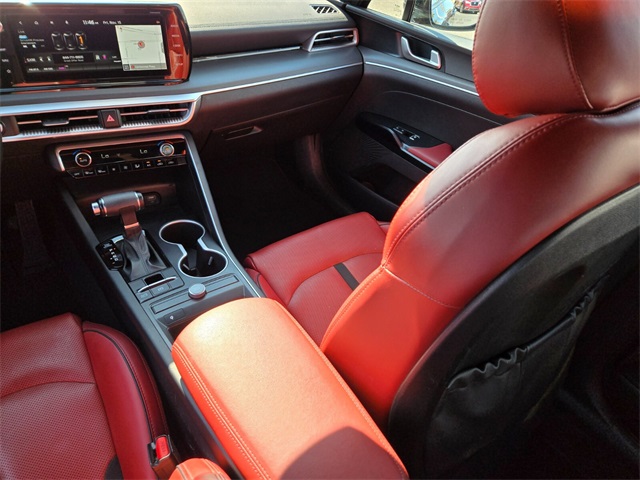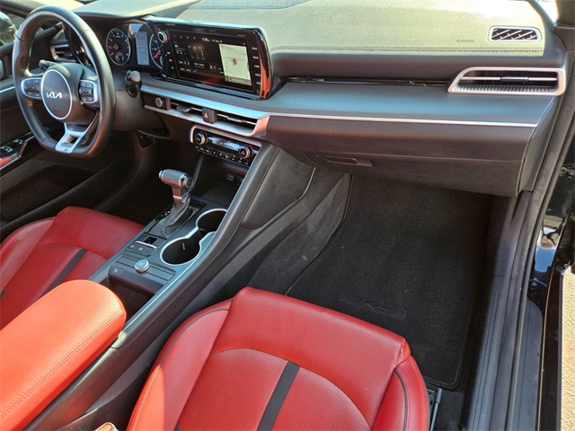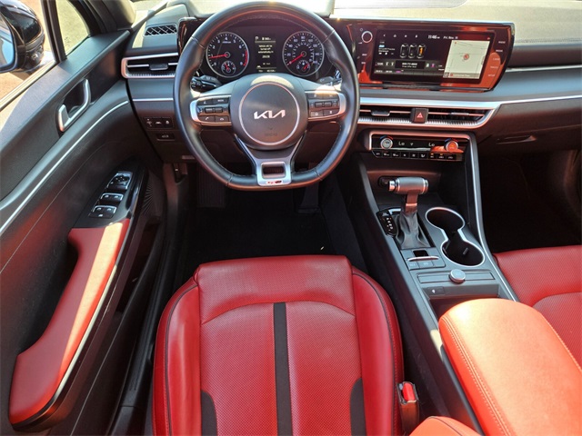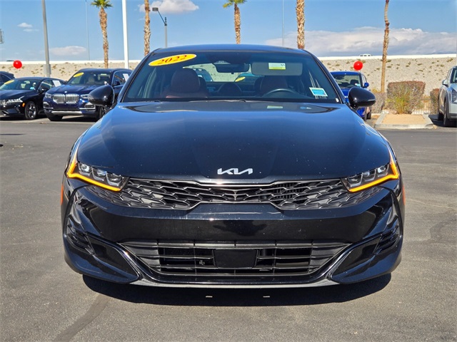 Priced below KBB Fair Purchase Price!27/37 City/Highway MPGEbony Black 2022 Kia K5 GT-Line FWD 8-Speed Automatic I4If you don't drive here, you can't save here!Price may not include recon fee. GT-Line FWD Premium Package (Forward Collision Avoidance-Assist - Junction Turn, LED Projection Headlights, Navigation-Based Smart Cruise Control - Curve, and Smart Cruise Control w/Stop & Go), GT-Line Red Interior Package, 4-Wheel Disc Brakes, 6 Speakers, ABS brakes, Air Conditioning, Alloy wheels, AM/FM radio: SiriusXM, Apple CarPlay & Android Auto, Auto High-beam Headlights, Automatic temperature control, Brake assist, Bumpers: body-color, Carpeted Floor Mats, Cloth/Leatherette Seat Trim, Delay-off headlights, Driver door bin, Driver vanity mirror, Dual front impact airbags, Dual front side impact airbags, Electronic Stability Control, Four wheel independent suspension, Front anti-roll bar, Front Center Armrest, Front dual zone A/C, Front fog lights, Front reading lights, Fully automatic headlights, Heated door mirrors, Illuminated entry, Knee airbag, Low tire pressure warning, Navigation System, Occupant sensing airbag, Outside temperature display, Overhead airbag, Overhead console, Panic alarm, Passenger door bin, Passenger vanity mirror, Power door mirrors, Power driver seat, Power steering, Power windows, Radio data system, Radio: AM/FM/MP3 Audio System, Rear anti-roll bar, Rear seat center armrest, Rear side impact airbag, Rear window defroster, Remote keyless entry, Security system, Speed control, Speed-sensing steering, Split folding rear seat, Spoiler, Sport steering wheel, Steering wheel mounted audio controls, Tachometer, Telescoping steering wheel, Tilt steering wheel, Traction control, Trip computer, Turn signal indicator mirrors, Variably intermittent wipers, and Wheels: 7.5J x 18" Gloss Black Machined Finish Alloy.