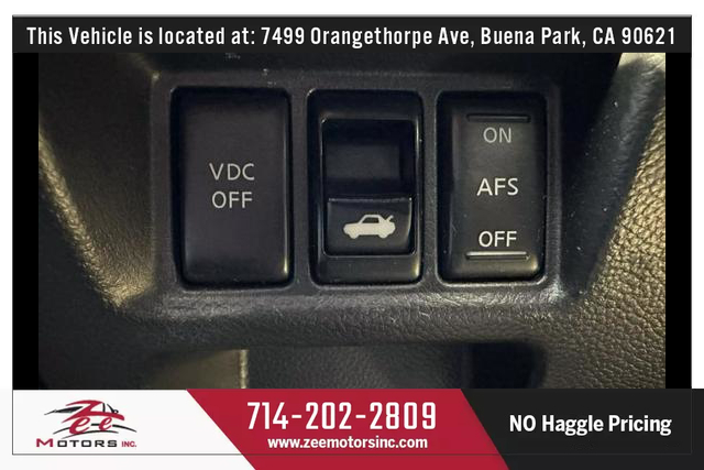 THIS VEHICLE IS LOCATED AT OUR BUENA PARK LOCATION: 7499 ORANGETHORPE AVE, BUENA PARK CA 90621. Please Call us at 714-202-2809 Ext #2 , Or email us at BUENAPARK@ZEEMOTORSINC.COM To Check Availability. * Clean Title. * Clean Carfax. * No Accidents.* Very Well Maintained Vehicle, Service records available on CARFAX. * Very Clean Inside and Outside.* Passed Safety inspection and Smog Check.Attention to all buyers: All special prices are cash price and it does not include sales tax, license and registration fee, documentation fee, smog fee or any dealer add-ons / accessories. Additional financing charges may apply on approved credit. While great effort is made to ensure the accuracy of the information provided on this site, errors do occur so please verify information with a team member. This is easily done by contacting us via phone or email.