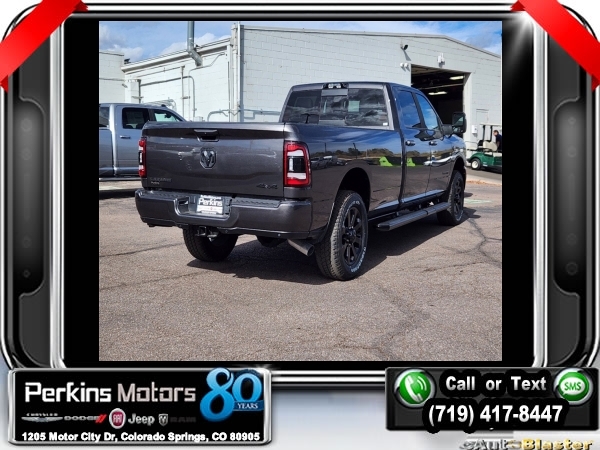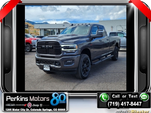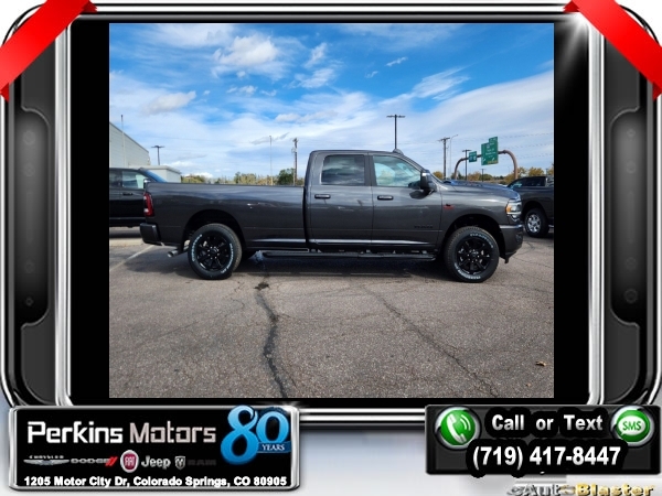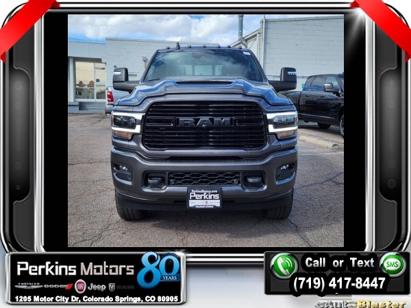 Factory MSRP: $93,455 $11,000 off MSRP! Granite Crystal Metallic Clearcoat 2024 Ram 3500 Laramie 4WD 6-Speed Automatic I6<br><br>Check us out at www.perkinsmotors.com to see our specials! Since opening our doors in 1944, we’ve been proud to serve Colorado Springs, CO, and the surrounding areas of Pueblo, Castle Rock and Denver, CO. Throughout this time of being family owned for 80 years, we’ve maintained a firm commitment to our customers: to offer a wide selection of New Chrysler, Dodge, Fiat, Jeep, and Ram vehicles and quality pre-owned vehicles, and provide a quick, no-hassle car-buying process that ensures everyone drives off the lot satisfied with their purchase.<br><br>Bed Utility Group (LED Bed Lighting and MOPAR Spray In Bedliner), Cold Weather Group (Engine Block Heater and MOPAR Winter Front Grille Cover), Laramie Level 1 Equipment Group (2nd Row In Floor Storage Bins, 4G LTE Wi-Fi Hot Spot, Alexa Built-In, Apple CarPlay, Auto-Dimming Exterior Mirrors, Blind Spot & Cross Path Detection, Center Hub, Connected Travel & Traffic Services, Connectivity - US/Canada, Disassociated Touchscreen Display, Exterior Mirrors Courtesy Lamps, Exterior Mirrors w/Heating Element, Exterior Mirrors w/Supplemental Signals, For Details Visit DriveUconnect.com, For More Info, Call 800-643-2112, Global Telematics Box Module (TBM), Google Android Auto, GPS Antenna Input, GPS Navigation, HD Radio, Integrated Voice Command w/Bluetooth, Off-Road Information Pages, Power Adjust Mirrors, Power-Adjustable Convex Aux Mirrors, Radio: Uconnect 5 Nav w/12.0 Display, Rear Power Sliding Window, Remote Tailgate Release, Selectable Tire Fill Alert, SiriusXM Radio Service, SiriusXM w/360L, and Trailer Tow Pages), Night Edition (Black RAM Head Tailgate Badge and Gloss Black Grille Billets/Accents), Protection Group, Quick Order Package 21H Laramie, Safety Group (Adaptive Cruise Control w/Stop, Adaptive Steering System, and Lane Keep Assist), Snow Chief Group (Auxiliary Switches Prep, Clearance Lamps, and I/P Mounted Auxiliary Switches), Towing Technology Group (CTR Stop Lamp w/Cargo View Camera and Trailer Reverse Guidance), 10 Speakers, 115V Auxiliary Rear Power Outlet, 2 Way Rear Headrest Seat, 220 Amp Alternator, 3.73 Axle Ratio, 4 Way Front Headrests, 4-Wheel Disc Brakes, 50 Gallon Fuel Tank, 5th Wheel/Gooseneck Towing Prep Group, 8.4 Touchscreen Display, ABS brakes, Active Noise Control System, Air Conditioning, Alloy wheels, AM/FM radio: SiriusXM with 360L, Apple CarPlay/Android Auto, Auto Level Rear Air Suspension, Auto-dimming Rear-View mirror, Automatic temperature control, Brake assist, Bumpers: body-color, Compass, Cruise Control, Delay-off headlights, Driver door bin, Driver vanity mirror, Dual Alternators Rated At 440 Amps, Dual front impact airbags, Dual front side impact airbags, Electronic Stability Control, Electronically Controlled Throttle, Folding Flat Load Floor Storage, Front anti-roll bar, Front Center Armrest w/Storage, Front dual zone A/C, Front License Plate Bracket, Front reading lights, Front Seat Back Map Pockets, Fully automatic headlights, Garage door transmitter, Heated door mirrors, Heated Front Seats, Heated front seats, Heated Steering Wheel, Heated steering wheel, High Back Seats, Illuminated entry, Integrated Center Stack Radio, Leather steering wheel, Leather Trim 40/20/40 Bench Seat, Low tire pressure warning, Manufacturer's Statement of Origin, MOPAR Front & Rear Rubber Floor Mats, Occupant sensing airbag, Outside temperature display, Overhead airbag, Overhead console, Painted Flat Wheel-to-Wheel Side Steps, Panic alarm, ParkView Rear Back-Up Camera, Passenger door bin, Passenger vanity mirror, Power 8-Way Adjustable Passenger Seat, Power Adjust 8-Way Driver Seat, Power door mirrors, Power driver seat, Power passenger seat, Power steering, P Sale price includes all manufacture's incentives and dealer discounts. Sale price not available on lease or compatible with special APR. $1000 - 2024 Bonus Cash . Exp. 0