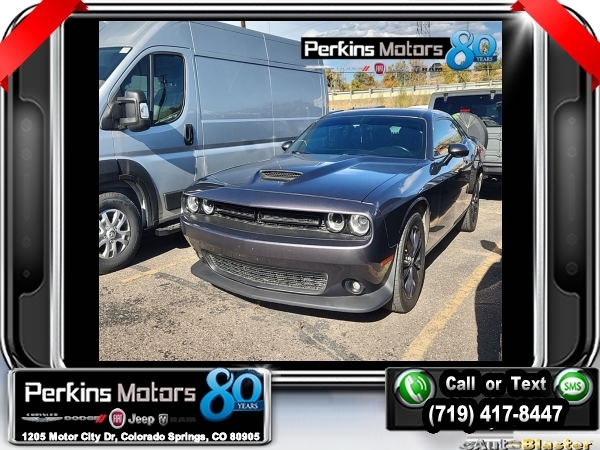 Granite Crystal Metallic Clearcoat AWD 3.6L V6 24V VVT 8-Speed Automatic<br><br>1-Yr SiriusXM Guardian Trial, 276 Watt Amplifier, 4G LTE Wi-Fi Hot Spot, 6 Premium Alpine Speakers, 8.4 Touchscreen Display, AWD Rhombi Black Badge, Black Fuel Filler Door, Black Grille w/Bezel, Blacktop Package, Blind Spot & Cross Path Detection, Bright Pedals, Challenger Blacktop Grille Badge, Dodge Performance Pages, Door Trim Panel w/Ambient Lighting, Driver Convenience Group, For Details, Visit DriveUconnect.com, For More Info, Call 800-643-2112, Gloss Black I/P Cluster Trim Rings, GT Black Grille Badge, HD Radio, Heated Front Seats, Heated Steering Wheel, High-Intensity Discharge Headlamps, Nappa/Alcantara Performance Seats, Plus Package, Power Multi-Function Foldaway Mirrors, Power Tilt/Telescope Steering Column, Premium-Stitched Dash Panel, Quick Order Package 21J GT AWD, Radio: Uconnect 4C w/8.4 Display, Rear Black Spoiler, Satin Black Dodge Tail Lamp Badge, Shark Fin Antenna, SiriusXM Radio Service, SiriusXM Satellite Radio, Ventilated Front Seats, Wheels: 19 x 7.5 Black Noise Painted.<br><br><br>Check us out at www.perkinsmotors.com to see our specials! Since opening our doors in 1944, we’ve been proud to serve Colorado Springs, CO, and the surrounding areas of Pueblo, Castle Rock and Denver, CO. Throughout this time of being family owned for 80 years, we’ve maintained a firm commitment to our customers: to offer a wide selection of New Chrysler, Dodge, Fiat, Jeep, and Ram vehicles and quality pre-owned vehicles, and provide a quick, no-hassle car-buying process that ensures everyone drives off the lot satisfied with their purchase.<br><br><br>Awards:<br> * JD Power Automotive Performance, Execution and Layout (APEAL) Study<br><br>Blacktop Package (AWD Rhombi Black Badge, Black Fuel Filler Door, Black Grille w/Bezel, Challenger Blacktop Grille Badge, Gloss Black I/P Cluster Trim Rings, GT Black Grille Badge, Rear Black Spoiler, Satin Black Dodge Tail Lamp Badge, and Wheels: 19 x 7.5 Black Noise Painted), Driver Convenience Group (Blind Spot & Cross Path Detection, High-Intensity Discharge Headlamps, and Power Multi-Function Foldaway Mirrors), Plus Package (1-Yr SiriusXM Guardian Trial, 276 Watt Amplifier, 4G LTE Wi-Fi Hot Spot, 6 Premium Alpine Speakers, 8.4 Touchscreen Display, Bright Pedals, Dodge Performance Pages, Door Trim Panel w/Ambient Lighting, For Details, Visit DriveUconnect.com, For More Info, Call 800-643-2112, HD Radio, Heated Front Seats, Heated Steering Wheel, Nappa/Alcantara Performance Seats, Power Tilt/Telescope Steering Column, Premium-Stitched Dash Panel, Radio: Uconnect 4C w/8.4 Display, Shark Fin Antenna, SiriusXM Radio Service, SiriusXM Satellite Radio, and Ventilated Front Seats), Quick Order Package 21J GT AWD, 4-Wheel Disc Brakes, 6 Speakers, ABS brakes, Air Conditioning, Alloy wheels, AM/FM radio, Anti-whiplash front head restraints, Apple CarPlay, Apple CarPlay/Android Auto, Auto-dimming Rear-View mirror, Automatic temperature control, Brake assist, Bumpers: body-color, Compass, Cruise Control, Delay-off headlights, Driver door bin, Driver vanity mirror, Dual front impact airbags, Dual front side impact airbags, Electronic Stability Control, Four wheel independent suspension, Front anti-roll bar, Front Bucket Seats, Front Center Armrest, Front dual zone A/C, Front fog lights, Front License Plate Bracket, Front reading lights, Fully automatic headlights, Garage door transmitter, Google Android Auto, GPS Antenna Input, Heated door mirrors, Houndstooth Cloth Performance Seats, Illuminated entry, Integrated Center Stack Radio, Integrated Voice Command w/Bluetooth, Leather Shift Knob, Low tire pressure warning, Media Hub (2 USB, AUX), Outside temperature display, Overhead airbag, Overhead console, Panic alarm, ParkView Rear Back-Up Camera, Passenger door bin, Passenger vanity mirror, Power door mirrors, Power driver seat, Power steering, Power windows, Radio data system, Radio: Uconnect 4 w/7 Display