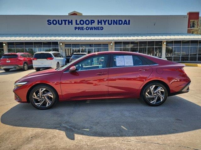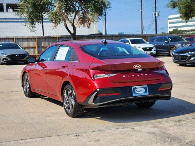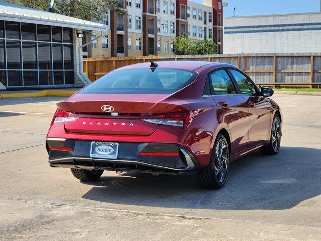 No Accidents! This Ultimate Red 2024 Hyundai Elantra SEL would be a welcomed addition to your family/business.One Owner! \n\nThis Elantra has the following options:\n\n\nThis Elantra has the following features:\n\n\n<h4 class=vc_build_package_name>Convenience Package ($1,750 value)</h4><ul class=vc_build_package_item_list></ul><h4 class=vc_build_package_name>Option Group 02</h4><ul class=vc_build_package_item_list><li>Wireless Charging Pad</li><li>Electronic Parking Brake</li><li>Forward Collision Avoidance Assist</li><li>Heated Front Seats</li><li>Heated Outside Mirrors</li><li>AM/FM/HD/SiriusXM Audio System</li><li>17 X 7.0J Machine Finish Alloy Wheels</li><li>60/40 Split Folding Rear Seatback with Armrest and Cup Holder</li><li>Smart Cruise Control with Stop and Go</li><li>Leather-Wrapped Steering Wheel</li><li>Sunroof</li></ul>\n<h4 class=vc_build_feature_name>Convenience</h4><ul class=vc_build_feature_item_list><li> Distance pacing cruise control with traffic stop-go. Set it and forget it. Road trips used to be stressful. Cruise control only managed speed, but not distance or safety. Now, with Distance pacing cruise control with traffic stop-go, simply set your desired speed and let sensor technology maintain a safe distance between you and the vehicle ahead. It's stop/go feature automatically brings the vehicle to a stop if traffic stops and resumes distance pacing cruise when traffic starts to move again. Distance pacing cruise control with traffic stop-go; your ultimate co-pilot.</li></ul><h4 class=vc_build_feature_name>Safety and Security</h4><ul class=vc_build_feature_item_list><li> Hands-on cruise control. Set it and forget it. Road trips used to be stressful. Cruise control only managed speed, but not distance or safety. Now, with hands-on cruise control, simply set your desired speed and let sensor technology maintain a safe distance between you and surrounding vehicles. It slows you down; speeds you up and even keeps you in your own lane. Meet your ultimate co-pilot with hands-on cruise control.</li><li> Pedestrian impact prevention - An extra step toward safety. Pedestrians don't always stop, look, and listen, but with Pedestrian Impact Prevention, your vehicle is equipped to better see them and avoid them. This system constantly monitors the road ahead to identify and track pedestrians. It projects that image to an interior display screen, AND should an impact become likely, Pedestrian impact prevention takes steps to avoid a collision.</li><li> Brake assist - Stop right there. Something jumps out into the middle of the road and you need to stop now! With brake assist, you will. It uses the speed of the brake pedal's travel to sense panic braking, then applies all available power to boost your stopping power. Brake assist can stop the accident before it is one.</li></ul><h4 class=vc_build_feature_name>Technology and Telematics</h4><ul class=vc_build_feature_item_list><li> Smart device mirroring - Smartphone, meet smart car. You can control your device through your vehicle's infotainment system. Smart device mirroring brings together safety and convenience by making it easier to find what you're looking for while keeping your eyes on the road.</li></ul> \n\nTo be sure you don't miss out, give us a call at and schedule a test drive. We are located at 8811 Lakes At 610 Dr Houston TX 77054. We look forward to seeing you soon.