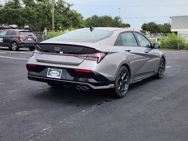 The team at Steele South Loop Hyundai would like to welcome you to our dealership in Houston, where we're confident you'll find the vehicles you're looking for at a price you can afford. Come and check out our full selection of new Hyundai vehicles, or get a great deal on a reliable pre-owned model. No matter which vehicle you decide on, our professional finance team will help you get settled with a competitive financing or lease plan. \n\nGreat choice on this Fluid Metal 2024 Hyundai Elantra N Line With Black Interior. This vehicle gets 35 MPG Highway and 28 MPG City. \n\n\n<h4 class=vc_build_package_name>Option Group 01</h4><ul class=vc_build_package_item_list></ul>\n<h4 class=vc_build_feature_name>Convenience</h4><ul class=vc_build_feature_item_list><li> Cruise control with steering wheel mounted controls. Set it and forget it. Road trips used to be stressful, until cruise control set the pace. Simply set the desired speed using the steering wheel mounted controls and it will maintain that speed without driver intervention. This can help minimize driver fatigue and improve overall fuel economy. Resting your right foot is right at your fingertips thanks to cruise control with steering wheel mounted controls.</li></ul><h4 class=vc_build_feature_name>Safety and Security</h4><ul class=vc_build_feature_item_list><li> Hands-on cruise control. Set it and forget it. Road trips used to be stressful. Cruise control only managed speed, but not distance or safety. Now, with hands-on cruise control, simply set your desired speed and let sensor technology maintain a safe distance between you and surrounding vehicles. It slows you down; speeds you up and even keeps you in your own lane. Meet your ultimate co-pilot with hands-on cruise control.</li><li> Pedestrian impact prevention - An extra step toward safety. Pedestrians don't always stop, look, and listen, but with Pedestrian Impact Prevention, your vehicle is equipped to better see them and avoid them. This system constantly monitors the road ahead to identify and track pedestrians. It projects that image to an interior display screen, AND should an impact become likely, Pedestrian impact prevention takes steps to avoid a collision.</li><li> Brake assist - Stop right there. Something jumps out into the middle of the road and you need to stop now! With brake assist, you will. It uses the speed of the brake pedal's travel to sense panic braking, then applies all available power to boost your stopping power. Brake assist can stop the accident before it is one.</li></ul><h4 class=vc_build_feature_name>Technology and Telematics</h4><ul class=vc_build_feature_item_list><li> Smart device mirroring - Smartphone, meet smart car. You can control your device through your vehicle's infotainment system. Smart device mirroring brings together safety and convenience by making it easier to find what you're looking for while keeping your eyes on the road.</li></ul> <b>Dealership Amenities\nComplimentary shuttle\nFREE car wash\nFREE WiFi\nComplimentary snacks and beverages\nService waiting lounge\nCable TV\nLoaner Vehicles\nVehicle test drive road course\nPopcorn machine\nTowing Available\n\nLots of folks in Houston count on the high-quality vehicles and services found at Steele South Loop Hyundai, and we look forward to living up to our reputation every day. Stop in and see us today at 8811 Lakes At 610 Dr Houston TX 77054or contact our staff with any questions at SALES PHONE NUMBER(832) 810-1266