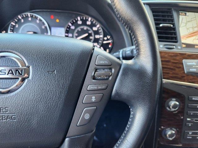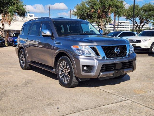 This Gun Metallic 2019 Nissan Armada SL would be a welcomed addition to your family or business. \n\n \n\nThis Armada has the following features:\n\n\n\n<h4 class=vc_build_package_name>Premium Package ($1,480 value)</h4><ul class=vc_build_package_item_list><li>Intelligent Back-Up Intervention (I-Bi)</li><li>Blind Spot Warning (BSW)</li><li>Rear Cross Traffic Alert (RCTA)</li><li>Intelligent Distance Control (I-DC)</li><li>Power Sliding Moonroof with Front Tilt and Rear Slide</li></ul>\n\n\n<h4 class=vc_build_feature_name>Convenience</h4><ul class=vc_build_feature_item_list><li> Distance pacing cruise control - Set it and forget it. Road trips used to be stressful. Cruise control only managed speed, but not distance or safety. Now, with Distance pacing cruise control, simply set your desired speed and let sensor technology maintain a safe distance between you and the vehicle ahead. Distance pacing cruise control; your ultimate co-pilot.</li></ul><h4 class=vc_build_feature_name>Safety and Security</h4><ul class=vc_build_feature_item_list><li> Forward collision mitigation - Forward thinking. You look away for just a second and suddenly the vehicle in front of you has stopped. That's when the forward collision mitigation system comes to life. When it senses an impending impact, it will activate a combination of features to help prevent or reduce the severity of an accident. Forward collision mitigation is always looking ahead.</li><li> Rear camera - Watching your back! The rear camera helps you see obstacles and hazards you otherwise couldn't by showing enhanced images of what is behind you. The rear camera is an extra set of eyes that's both convenient and safe.</li><li> Rear collision mitigation - It has your back. Rear collision mitigation uses sensors to monitor the area behind you. If it senses an impending crash, it activates certain features to help prevent a collision or reduce the severity of it. Put your worries behind you with rear collision mitigation.</li><li> Brake assist - Stop right there. Something jumps out into the middle of the road and you need to stop now! With brake assist, you will. It uses the speed of the brake pedal's travel to sense panic braking, then applies all available power to boost your stopping power. Brake assist can stop the accident before it is one.</li></ul>\n\n\n\n\n \n\nTo be sure you don't miss out, give us a call at and schedule a test drive. We are located at 8811 Lakes At 610 Dr Houston TX 77054. We look forward to seeing you soon.