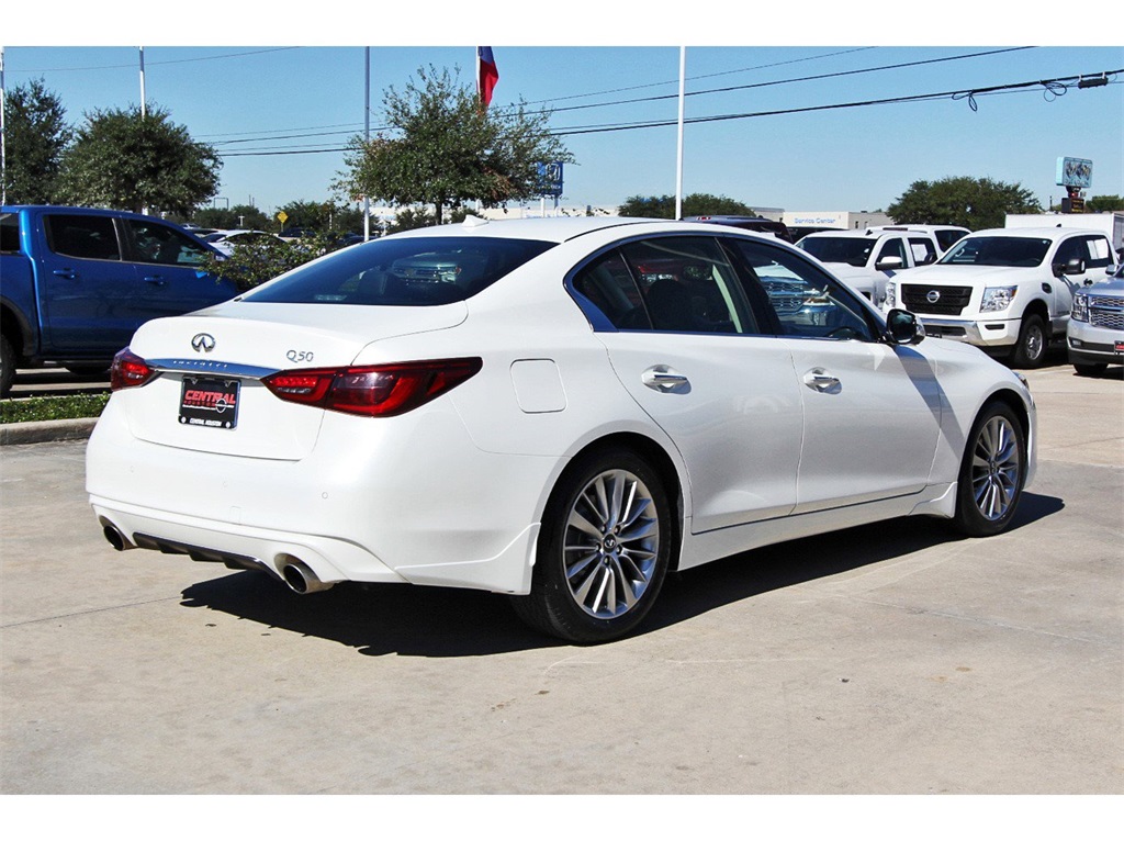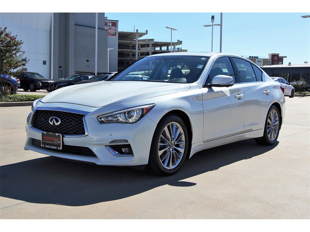 Central Houston Nissan is proud to present you with another True Market Priced Pre-Owned Vehicle. This 2022 INFINITI Q50 LUXE Nissan CPO Select is loaded with the following Factory Options: Nissan CPO Select Certified Nissan CPO Select Certified, 16 Speakers, 18" x 7.5" Aluminum Alloy Wheels, 4-Wheel Disc Brakes, ABS brakes, Air Conditioning, Alloy wheels, AM/FM radio: SiriusXM, Apple CarPlay/Android Auto, Auto High-beam Headlights, Auto tilt-away steering wheel, Auto-dimming Rear-View mirror, Automatic temperature control, Blind Spot Warning, Brake assist, Bumpers: body-color, CD player, Compass, Delay-off headlights, Driver door bin, Driver vanity mirror, Dual front impact airbags, Dual front side impact airbags, Electronic Stability Control, Emergency communication system: INFINITI Connection, Four wheel independent suspension, Front anti-roll bar, Front Bucket Seats, Front Center Armrest, Front dual zone A/C, Front fog lights, Front reading lights, Fully automatic headlights, Garage door transmitter: HomeLink, Heated door mirrors, Heated Front Bucket Seats, Heated front seats, Heated steering wheel, Illuminated entry, Leather Seating Surfaces, Leather Shift Knob, Leather steering wheel, Low tire pressure warning, Memory seat, Occupant sensing airbag, Outside temperature display, Overhead airbag, Overhead console, Panic alarm, Passenger door bin, Passenger vanity mirror, Power door mirrors, Power driver seat, Power moonroof, Power passenger seat, Power steering, Power windows, Radio data system, Radio: INFINITI InTouch w/AM/FM/HD/CD, Rain sensing wipers, Rear anti-roll bar, Rear reading lights, Rear seat center armrest, Rear window defroster, Remote keyless entry, Security system, Speed control, Speed-Sensitive Wipers, Split folding rear seat, Steering wheel memory, Steering wheel mounted audio controls, Tachometer, Telescoping steering wheel, Tilt steering wheel, Traction control, Trip computer, Turn signal indicator mirrors, and Variably intermittent wipers!!Central Houston Nissan is more than just your typical car dealership. When our customers visit us, our goal is to provide quality vehicles, exceptional service and a friendly atmosphere. Our staff has been trained to create ease during your purchase or service experience and we are always making sure you get everything you want and deserve out of your visit. Our vision and mission is an employee-centered and customer-focused environment. Vehicles may be subject to prep package and market adjustment. When you buy from Central Houston Nissan, we'll make it the best car buying experience you've ever had. When you purchase a New Nissan or a qualifying Pre-Owned vehicle from Central Houston Nissan, you are automatically enrolled into our Central Houston Nissan Central Care Program at no cost to you. You can’t beat that! Vehicles may be subject to prep package and market adjustment. Stop by 2901 S Loop W, Houston, Texas 77054 today!!!