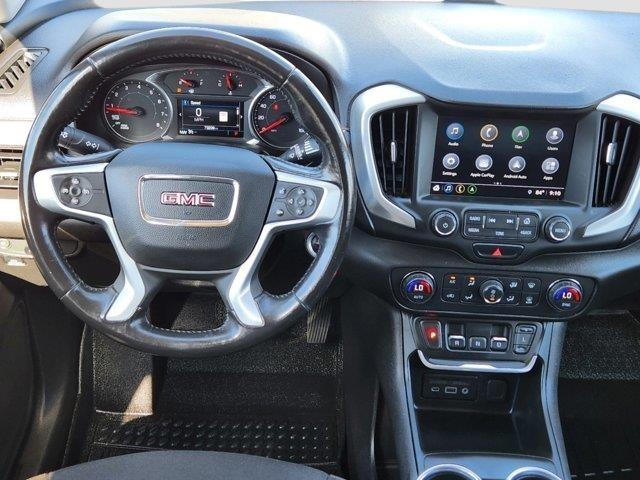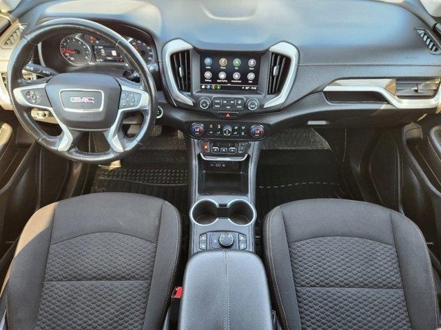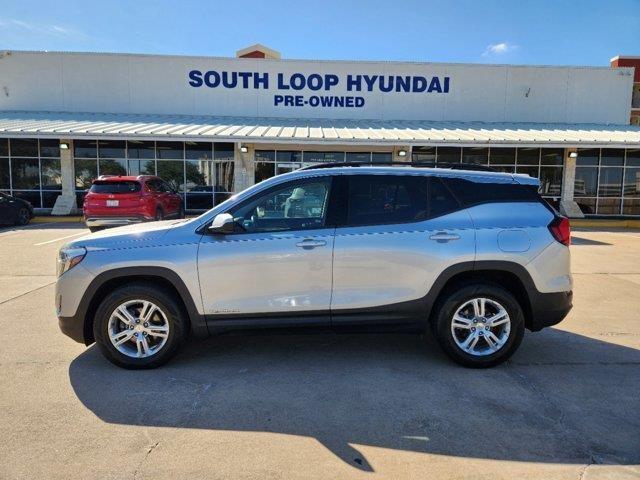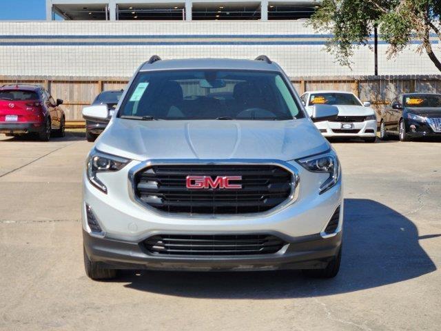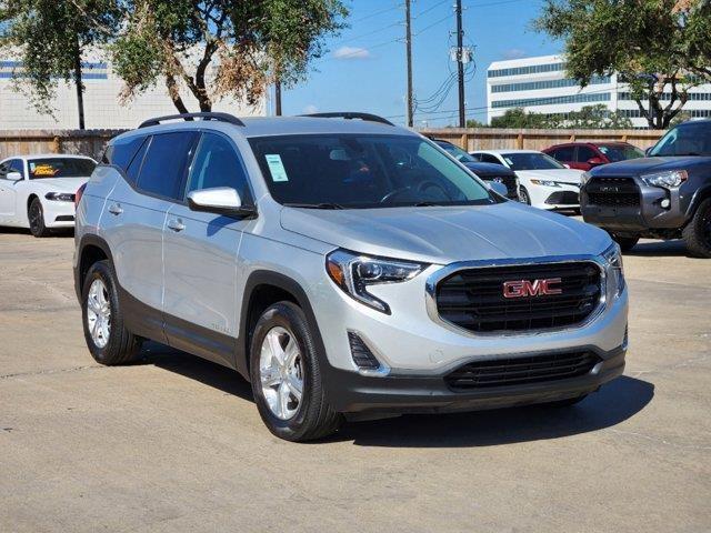 This Quicksilver Metallic 2018 GMC Terrain SLE would be a welcomed addition to your family or business. \n\n \n\nThis Terrain has the following features:\n\n\n\n<h4 class=vc_build_package_name>Driver Convenience Package ($1,375 value)</h4><ul class=vc_build_package_item_list><li>8-Way Power Driver Seat Adjuster</li><li>Remote Start</li><li>Dual-Zone Automatic Climate Control</li><li>Driver and Front Passenger Heated Seats</li><li>Roof-Mounted Luggage Rack Black Side Rails</li></ul><h4 class=vc_build_package_name>Driver Alert Package I ($890 value)</h4><ul class=vc_build_package_item_list><li>Outside Heated Power-Adjustable Mirrors</li><li>Rear Park Assist and Safety Alert Seat</li><li>Rear Cross-Traffic Alert</li><li>Lane Change Alert with Side Blind Zone Alert</li></ul><h4 class=vc_build_package_name>Preferred Equipment Group 3SA</h4><ul class=vc_build_package_item_list></ul><h4 class=vc_build_package_name>Infotainment Package I ($995 value)</h4><ul class=vc_build_package_item_list><li>GMC Infotainment Audio System with Navigation</li><li>110-Volt Power Outlet</li><li>4.2 Multi-Color Enhanced Driver Information Screen</li></ul>\n\n\n<h4 class=vc_build_feature_name>Convenience</h4><ul class=vc_build_feature_item_list><li> Cruise control with steering wheel mounted controls. Set it and forget it. Road trips used to be stressful, until cruise control set the pace. Simply set the desired speed using the steering wheel mounted controls and it will maintain that speed without driver intervention. This can help minimize driver fatigue and improve overall fuel economy. Resting your right foot is right at your fingertips thanks to cruise control with steering wheel mounted controls.</li></ul><h4 class=vc_build_feature_name>Safety and Security</h4><ul class=vc_build_feature_item_list><li> Rear camera - Watching your back! The rear camera helps you see obstacles and hazards you otherwise couldn't by showing enhanced images of what is behind you. The rear camera is an extra set of eyes that's both convenient and safe.</li><li> Brake assist - Stop right there. Something jumps out into the middle of the road and you need to stop now! With brake assist, you will. It uses the speed of the brake pedal's travel to sense panic braking, then applies all available power to boost your stopping power. Brake assist can stop the accident before it is one.</li></ul><h4 class=vc_build_feature_name>Technology and Telematics</h4><ul class=vc_build_feature_item_list><li> Smart device mirroring - Smartphone, meet smart car. You can control your device through your vehicle's infotainment system. Smart device mirroring brings together safety and convenience by making it easier to find what you're looking for while keeping your eyes on the road.</li><li> Mobile hotspot - WiFi on the fly. Connect your devices to the Internet through your vehicle's private mobile hotspot and take the internet wherever your journey takes you, without eating up your data allowance. Find the hotspot with mobile hotspot.</li></ul>\n\n\n\n\n \n\nTo be sure you don't miss out, give us a call at and schedule a test drive. We are located at 8811 Lakes At 610 Dr Houston TX 77054. We look forward to seeing you soon.