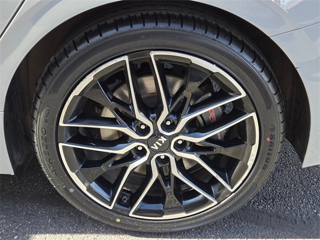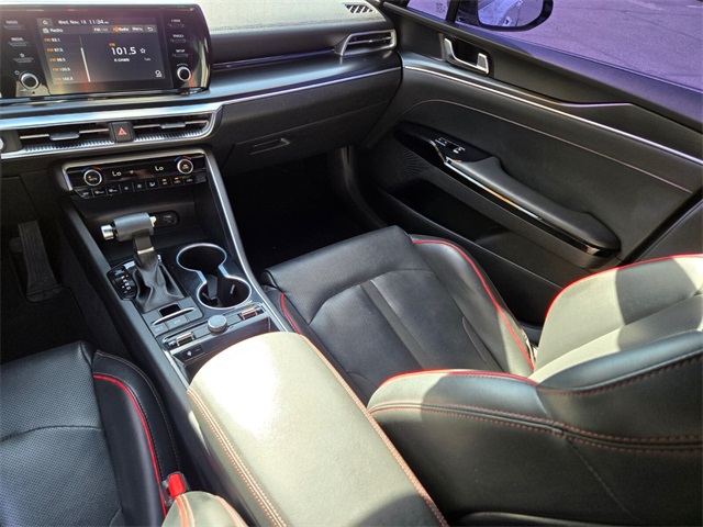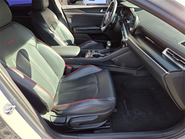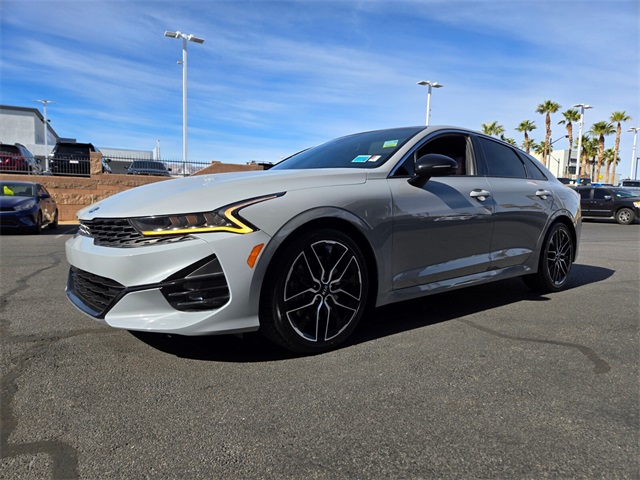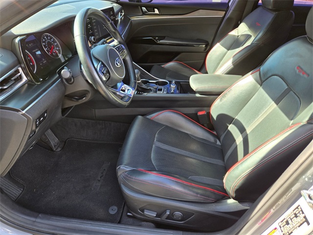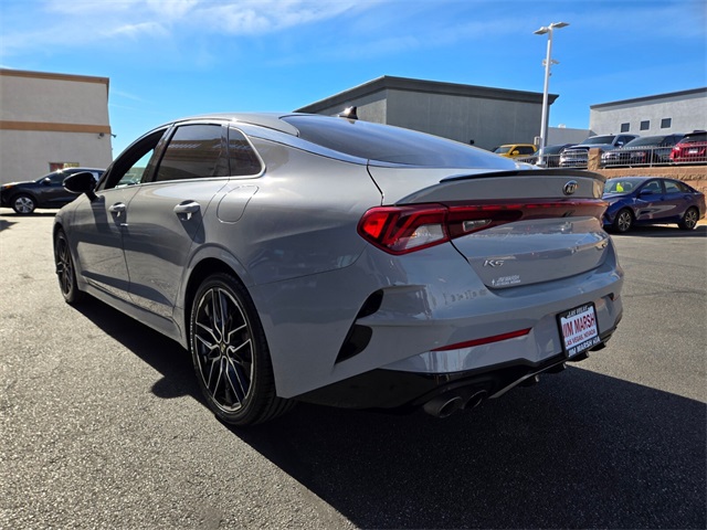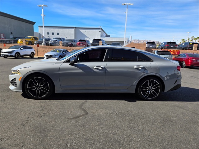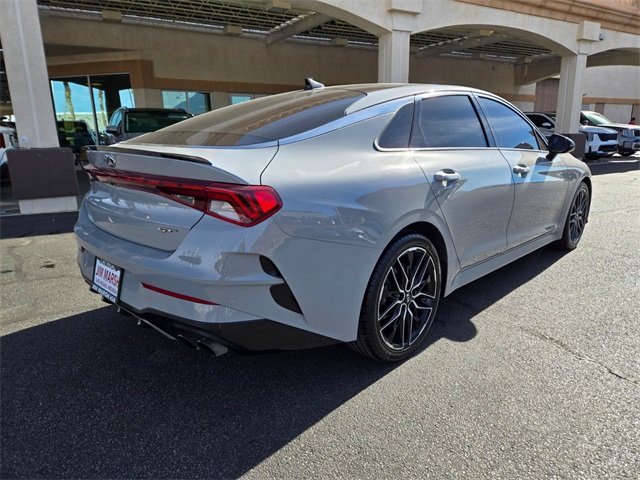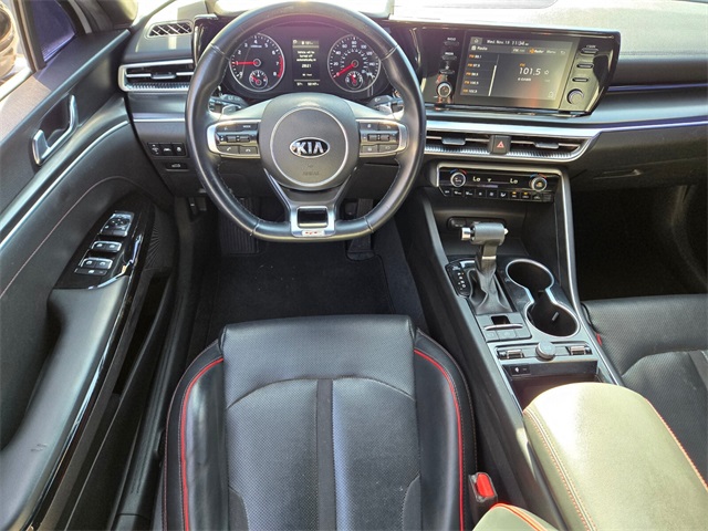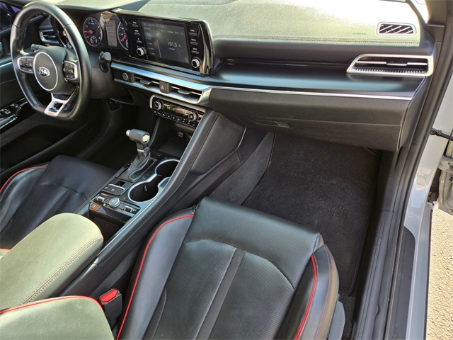 Priced below KBB Fair Purchase Price!24/32 City/Highway MPGWolf Gray 2021 Kia K5 GT FWD 8 Speed Dual Clutch I4If you don't drive here, you can't save here!Awards: * JD Power Automotive Performance, Execution and Layout (APEAL) StudyPrice may not include recon fee. 4-Wheel Disc Brakes, 6 Speakers, ABS brakes, Air Conditioning, Alloy wheels, AM/FM radio, Apple CarPlay & Android Auto, Auto High-beam Headlights, Automatic temperature control, Brake assist, Bumpers: body-color, Cargo Mat, Cargo Net, Carpeted Floor Mats, Delay-off headlights, Driver door bin, Driver vanity mirror, Dual front impact airbags, Dual front side impact airbags, Electronic Stability Control, Emergency communication system: UVO eServices, Four wheel independent suspension, Front anti-roll bar, Front Bucket Seats, Front Center Armrest, Front dual zone A/C, Front fog lights, Front reading lights, Fully automatic headlights, Heated door mirrors, Heated front seats, Heated Sport Bucket Seats, Illuminated entry, Knee airbag, Leather Shift Knob, Leatherette Seat Trim, Low tire pressure warning, Occupant sensing airbag, Outside temperature display, Overhead airbag, Overhead console, Panic alarm, Passenger door bin, Passenger vanity mirror, Power door mirrors, Power driver seat, Power moonroof, Power steering, Power windows, Radio data system, Radio: AM/FM/MP3 Audio System, Rear anti-roll bar, Rear reading lights, Rear seat center armrest, Rear side impact airbag, Rear window defroster, Remote keyless entry, Security system, Smart Key w/ Push Button and Remote Start, Speed control, Speed-sensing steering, Split folding rear seat, Spoiler, Sport steering wheel, Steering wheel mounted audio controls, Tachometer, Telescoping steering wheel, Tilt steering wheel, Traction control, Trip computer, Turn signal indicator mirrors, Variably intermittent wipers, and Wheels: 8.0J x 19" Machined Finish Alloy.