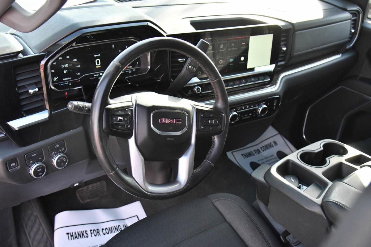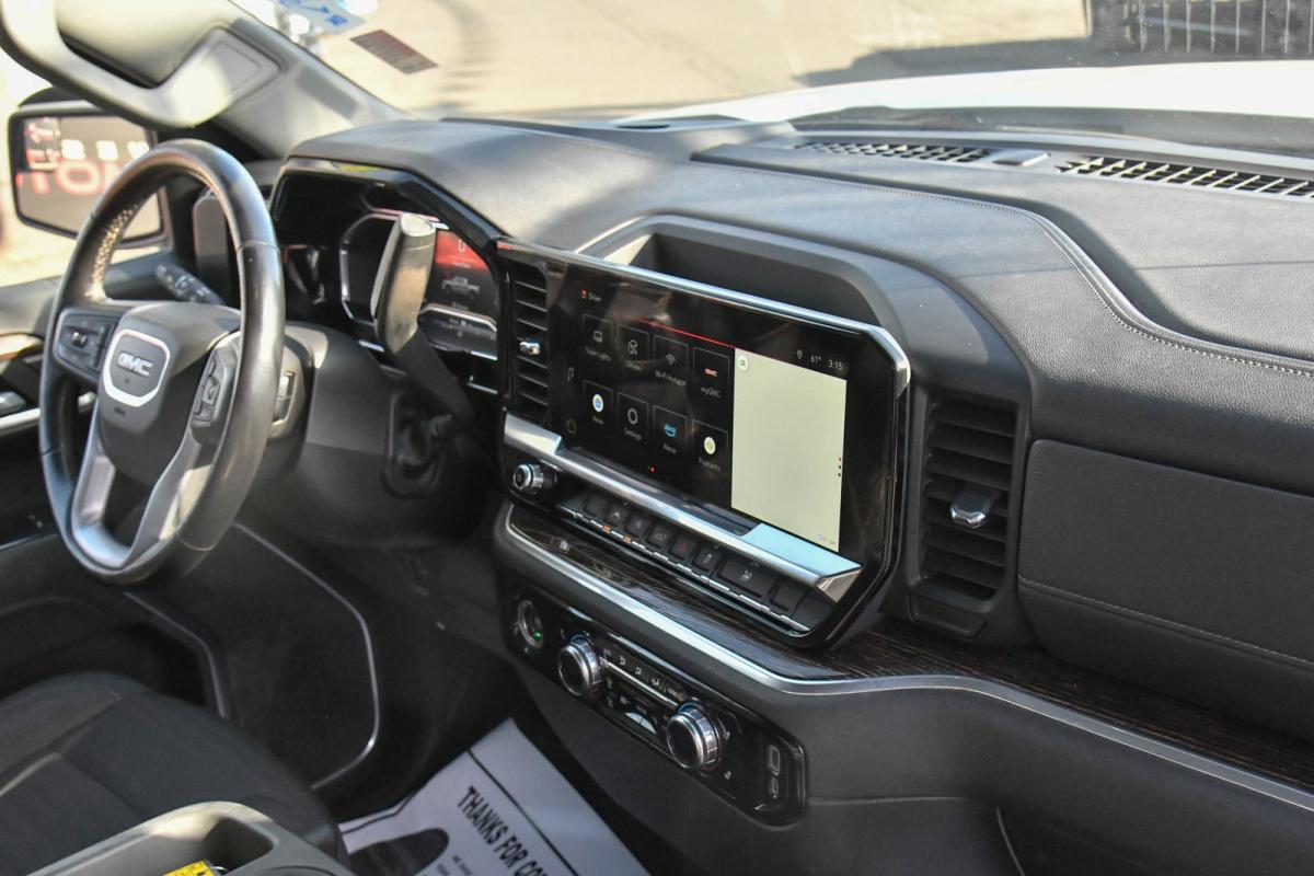 This GMC Sierra 1500 has a dependable Gas V8 5.3L/325 engine powering this Automatic transmission. WHEELS, 18 X 8.5 (45.7 CM X 21.6 CM) 6-SPOKE MACHINED ALUMINUM with Dark Grey Metallic accents, TRANSMISSION, 10-SPEED AUTOMATIC, (COLUMN SHIFTER) ELECTRONICALLY CONTROLLED with overdrive and tow/haul mode. Includes Cruise Grade Braking and Powertrain Grade Braking, TIRES, 265/65R18SL ALL-TERRAIN, BLACKWALL.*This GMC Sierra 1500 Comes Equipped with These Options *REMOTE START PACKAGE includes (BTV) Remote Start, (UTJ) content theft alarm and (C49) rear-window defogger , TIRE, SPARE 265/70R17SL ALL-SEASON, BLACKWALL, SUMMIT WHITE, STEERING COLUMN LOCK, ELECTRICAL (Vehicles built prior to 4-4-2022 will include steering column lock. Certain vehicles built on or after 4-4-2022 will be forced to include (R7N) Not Equipped with Steering Column Lock, which removes Steering Column Lock. See dealer for details.), SLE PREFERRED EQUIPMENT GROUP Includes Standard Equipment, SEATS, FRONT 40/20/40 SPLIT-BENCH with covered armrest storage and under-seat storage (lockable) (STD), REAR AXLE, 3.23 RATIO, NOT EQUIPPED WITH HEATED OR VENTILATED FRONT SEATS, SEE DEALER FOR DETAILS (Certain vehicles built on or after 3-14-2022 through 4-24-2022 will be forced to include (00V) Not Equipped with Heated or Ventilated Front Seats, which removes driver and passenger heated and ventilated front seats. Vehicles equipped with (00V) Not Equipped with Heated or Ventilated Front Seats will be eligible for later dealer retrofit to enable functionality. See the window label for the features on a specific vehicle.), NOT EQUIPPED WITH DYNAMIC FUEL MANAGEMENT, LICENSE PLATE KIT, FRONT.