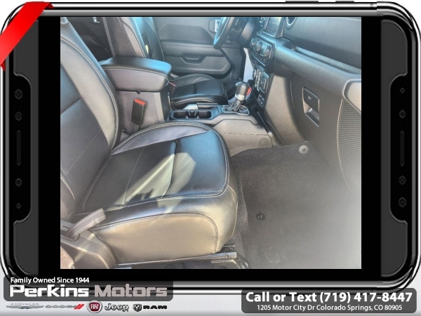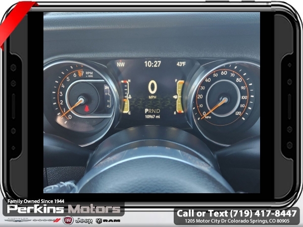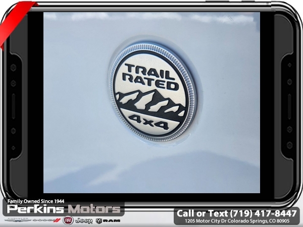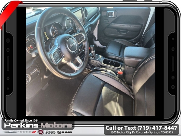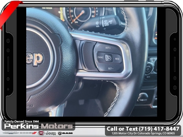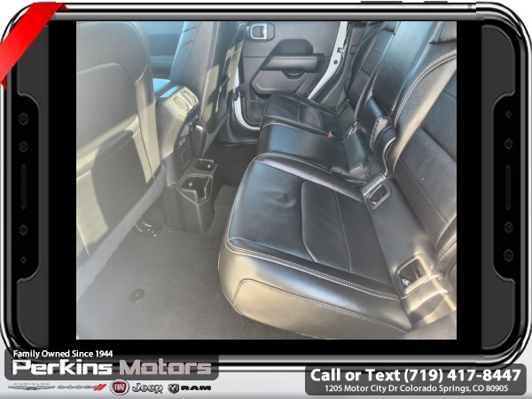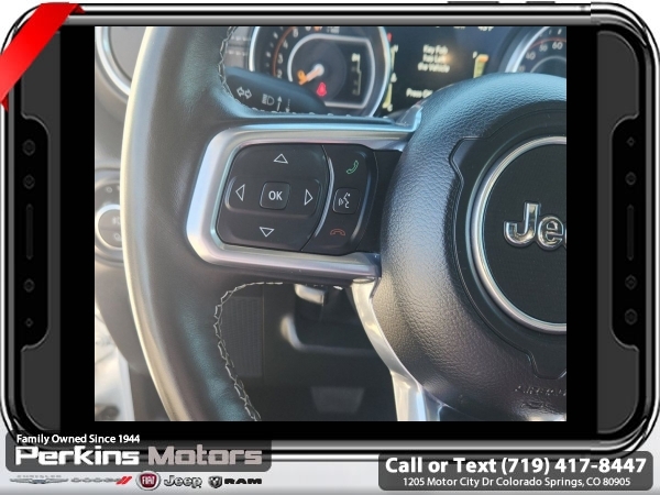 Bright White Clearcoat 4WD 3.6L V6 24V VVT 8-Speed Automatic<br><br><br>Certified. FCA US LLC Certified Pre-Owned Details:<br><br> * 125 Point Inspection<br> * Warranty Deductible: $100<br> * Vehicle History<br> * Powertrain Limited Warranty: 84 Month/100,000 Mile (whichever comes first) from original in-service date<br> * Roadside Assistance<br> * Limited Warranty: 3 Month/3,000 Mile (whichever comes first) after new car warranty expires or from certified purchase date<br> * Includes First Day Rental, Car Rental Allowance, and Trip Interruption Benefits. SiriusXM 3 month trial subscription<br> * Transferable Warranty<br><br><br>CARFAX One-Owner. Clean CARFAX.<br><br>Check us out at www.perkinsmotors.com to see our specials! Since opening our doors in 1944, we’ve been proud to serve Colorado Springs, CO, and the surrounding areas of Pueblo, Castle Rock and Denver, CO. Throughout this time of being family owned for 80 years, we’ve maintained a firm commitment to our customers: to offer a wide selection of New Chrysler, Dodge, Fiat, Jeep, and Ram vehicles and quality pre-owned vehicles, and provide a quick, no-hassle car-buying process that ensures everyone drives off the lot satisfied with their purchase.<br><br><br>Auxiliary Switch Group, Cold Weather Group (Heated Front Seats), LED Lighting Group (LED Park Turn Lamps), Popular Equipment Package (Rear Sliding Window), Quick Order Package 24G, Trail Rail Management System, Trailer Tow Package, FCA US LLC Certified Pre-Owned Certified, 110 MPH Vehicle Max Speed Calibration, 3.73 Rear Axle Ratio, 4-Wheel Disc Brakes, 9 Speakers, ABS brakes, Air Conditioning, Alloy wheels, AM/FM radio: SiriusXM, Anti-Spin Differential Rear Axle, Apple CarPlay/Android Auto, Auto-dimming Rear-View mirror, Automatic temperature control, Bluetooth Wireless Speaker, Body Color 3-Piece Hard Top, Brake assist, Compass, Corning Gorilla Glass, Cruise Control, Delay-off headlights, Driver door bin, Driver vanity mirror, Dual front impact airbags, Dual front side impact airbags, Electronic Stability Control, Emergency communication system: SiriusXM Guardian, Front anti-roll bar, Front Bucket Seats, Front Center Armrest w/Storage, Front dual zone A/C, Front fog lights, Front License Plate Bracket, Front reading lights, Fully automatic headlights, Garage door transmitter, Heated door mirrors, Illuminated entry, Integrated Off-Road Camera, Integrated roll-over protection, Jeep Trail Rated Kit, Leather steering wheel, Low tire pressure warning, MOPAR All-Weather Slush Mats, MOPAR Hardtop Headliner, MOPAR Spray In Bedliner, Navigation System, Normal Duty Plus Suspension, Occupant sensing airbag, Outside temperature display, Overland Cloth Bucket Seats, Panic alarm, ParkView Rear Back-Up Camera, Passenger door bin, Passenger vanity mirror, Power door mirrors, Power steering, Power windows, Radio data system, Radio: Uconnect 4C Nav w/8.4 Display, Rear anti-roll bar, Rear reading lights, Remote keyless entry, Remote Start System, Security system, Split folding rear seat, Steering wheel mounted audio controls, Tachometer, Telescoping steering wheel, Tilt steering wheel, Traction control, Trip computer, Variably intermittent wipers, Voltmeter, and Wheels: 18 x 7.5 Granite Crystal Aluminum.