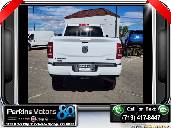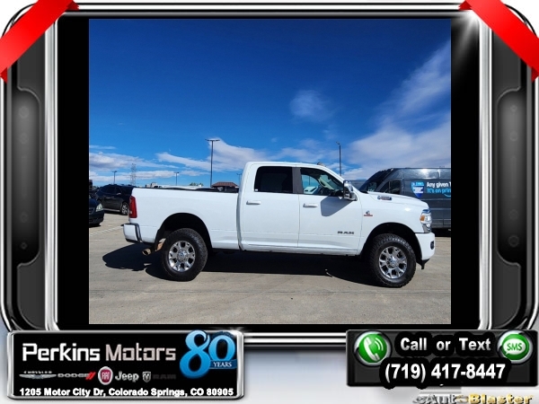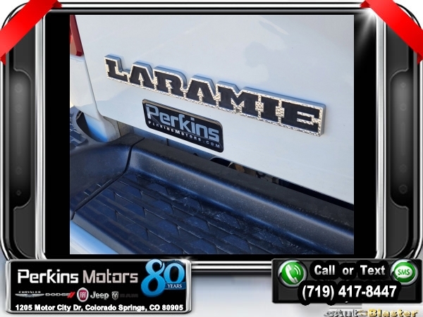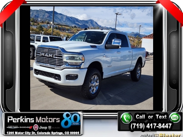 Bright White Clearcoat 4WD Cummins 6.7L I6 Turbodiesel 6-Speed Automatic<br><br>12 Touchscreen Display, 2nd Row In Floor Storage Bins, 4G LTE Wi-Fi Hot Spot, Alexa Built-In, Apple CarPlay, Auto Adjust In Reverse Exterior Mirrors, Auto Dim Exterior Mirror, Auto High Beam Headlamp Control, Auto Power-Folding Mirrors, Auto-Dimming Exterior Passenger Mirror, Blind Spot & Cross Path Detection, Chrome Exterior Mirrors, Connected Travel & Traffic Services, Connectivity - US/Canada, Disassociated Touchscreen Display, Exterior Mirrors Courtesy Lamps, Exterior Mirrors w/Heating Element, Exterior Mirrors w/Memory, Exterior Mirrors w/Supplemental Signals, Foam Bottle Insert (Door Trim Panel), For Details, Visit DriveUconnect.com, For More Info, Call 800-643-2112, Forward & Reverse Utility Lights, Front LED Fog Lamps, Global Telematics Box Module (TBM), Google Android Auto, GPS Antenna Input, GPS Navigation, HD Radio, Integrated Voice Command w/Bluetooth, Laramie Level 1 Equipment Group, LED Reflector Headlamps, Mirror Running Lights, Navigation System, Off-Road Information Pages, ParkSense Front/Rear Park Assist System, Power Adjust Mirrors, Power Adjustable Convex Aux Mirrors, Power Adjustable Pedals w/Memory, Power Heated Fold Telescopic Mirrors w/Memory, Power Telescoping Mirrors, Quick Order Package 2HH Laramie, Radio: Uconnect 5 Nav w/12.0 Display, Radio/Driver Seat/Mirrors/Pedals Memory, Rain Sensitive Windshield Wipers, Rear Power Sliding Window, Rear Window Defroster, Remote Tailgate Release, Selectable Tire Fill Alert, SiriusXM Radio Service, SiriusXM w/360L, Trailer Tow Pages.<br><br>Certified. FCA US LLC Certified Pre-Owned Details:<br><br> * 125 Point Inspection<br> * Includes First Day Rental, Car Rental Allowance, and Trip Interruption Benefits. SiriusXM 3 month trial subscription.<br> * Powertrain Limited Warranty: 84 Month/100,000 Mile (whichever comes first) from original in-service date<br> * Vehicle History<br> * Roadside Assistance<br> * Limited Warranty: 3 Month/3,000 Mile (whichever comes first) after new car warranty expires or from certified purchase date<br> * Transferable Warranty<br> * Warranty Deductible: $100<br><br><br>Clean CARFAX.<br><br>Check us out at www.perkinsmotors.com to see our specials! Since opening our doors in 1944, we’ve been proud to serve Colorado Springs, CO, and the surrounding areas of Pueblo, Castle Rock and Denver, CO. Throughout this time of being family owned for 80 years, we’ve maintained a firm commitment to our customers: to offer a wide selection of New Chrysler, Dodge, Fiat, Jeep, and Ram vehicles and quality pre-owned vehicles, and provide a quick, no-hassle car-buying process that ensures everyone drives off the lot satisfied with their purchase.<br><br><br>Laramie Level 1 Equipment Group (12 Touchscreen Display, 2nd Row In Floor Storage Bins, 4G LTE Wi-Fi Hot Spot, Alexa Built-In, Apple CarPlay, Auto Adjust In Reverse Exterior Mirrors, Auto Dim Exterior Mirror, Auto High Beam Headlamp Control, Auto Power-Folding Mirrors, Auto-Dimming Exterior Passenger Mirror, Blind Spot & Cross Path Detection, Chrome Exterior Mirrors, Connected Travel & Traffic Services, Connectivity - US/Canada, Disassociated Touchscreen Display, Exterior Mirrors Courtesy Lamps, Exterior Mirrors w/Heating Element, Exterior Mirrors w/Memory, Exterior Mirrors w/Supplemental Signals, Foam Bottle Insert (Door Trim Panel), For Details, Visit DriveUconnect.com, For More Info, Call 800-643-2112, Forward & Reverse Utility Lights, Front LED Fog Lamps, Global Telematics Box Module (TBM), Google Android Auto, GPS Antenna Input, GPS Navigation, HD Radio, Integrated Voice Command w/Bluetooth, LED Reflector Headlamps, Mirror Running Lights, Off-Road Information Pages, ParkSense Front/Rear Park Assist System, Power Adjust Mirrors, Power Adjustable Convex Aux Mirrors, Power Adjustable Pedals w/Memory, Power Heated Fold Telescopic Mirrors w/Memory, Power Telescoping Mirrors, Radio: Uconnect 5 Nav w/12.0 Displa