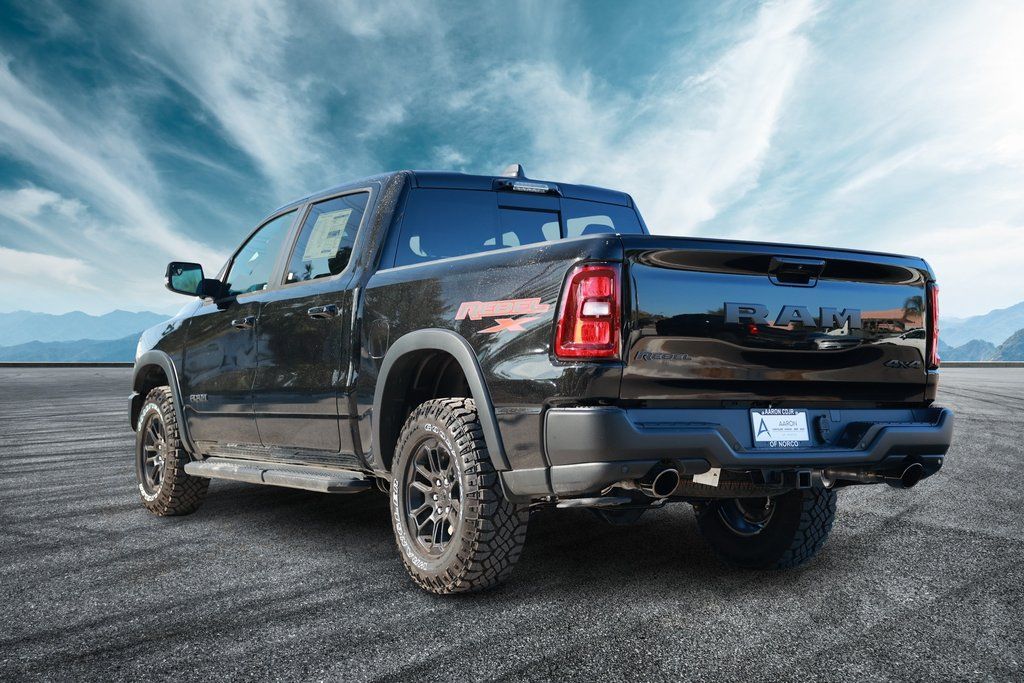 2025 Ram 1500 Rebel Diamond Black Crystal PearlcoatExplore the latest models from Chrysler, Dodge, Jeep, and Ram at Aaron CDJR of Norco. Whether you're looking for a rugged Jeep Wrangler, a powerful Ram truck, or a sleek Chrysler sedan, our vast inventory has something for everyone. Experience exceptional customer service and find the perfect vehicle to match your lifestyle.17/24 City/Highway MPG 4WD 8-Speed Automatic 3.0L I6 Price includes: $1000 - 2025 National Holiday Bonus Cash. Exp. 01/02/2025 $4000 - 2025 National Retail Consumer Cash. Exp. 01/02/2025