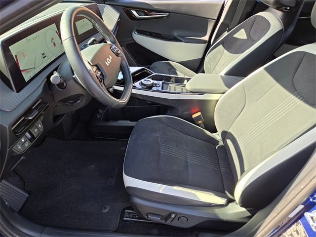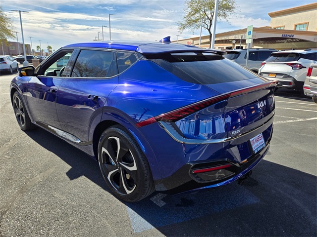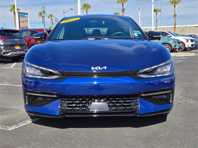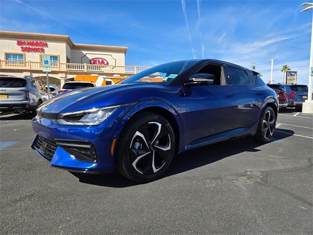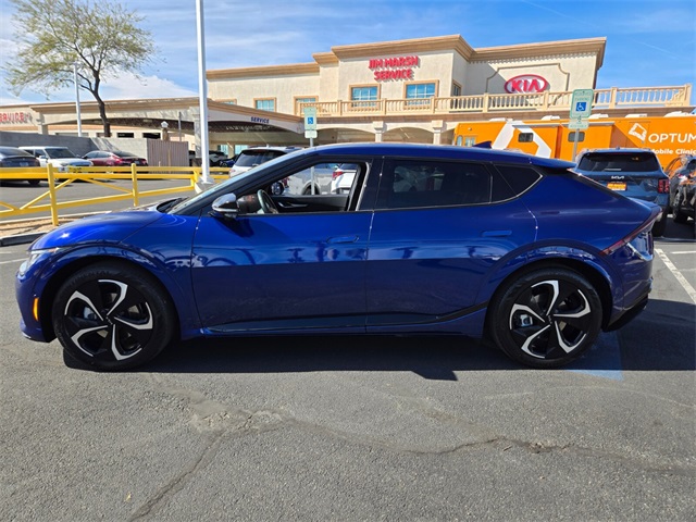 106/86 City/Highway MPGYacht Blue 2023 Kia EV6 GT-Line AWD 1-Speed Automatic Electric MotorIf you don't drive here, you can't save here!Price may not include recon fee. GT-Line Suede Seat Package (Black Seat Color w/White Accents and Suede Seat Trim w/Vegan Leather Accents), 14 Speakers, 4-Wheel Disc Brakes, ABS brakes, Air Conditioning, Alloy wheels, AM/FM radio: SiriusXM, Apple CarPlay & Android Auto, Auto High-beam Headlights, Auto-dimming Rear-View mirror, Automatic temperature control, Axle Ratio: 10.650, Brake assist, Bumpers: body-color, Carpet Floor Mats, Delay-off headlights, Driver door bin, Driver vanity mirror, Dual front impact airbags, Dual front side impact airbags, Electronic Stability Control, Emergency communication system, Four wheel independent suspension, Front anti-roll bar, Front Bucket Seats, Front Center Armrest, Front dual zone A/C, Front reading lights, Fully automatic headlights, Garage door transmitter: HomeLink, Heads-Up Display, Heated & Ventilated Front Bucket Seats, Heated door mirrors, Heated front seats, Heated rear seats, Heated steering wheel, Illuminated entry, Knee airbag, Low tire pressure warning, Memory seat, Navigation system: AVN 5.0 Navigation System, Occupant sensing airbag, Outside temperature display, Overhead airbag, Overhead console, Panic alarm, Passenger door bin, Passenger vanity mirror, Power door mirrors, Power driver seat, Power Liftgate, Power moonroof, Power passenger seat, Power steering, Power windows, Radio: Meridian Premium Audio System, Rain sensing wipers, Rear anti-roll bar, Rear seat center armrest, Rear window defroster, Remote keyless entry, Security system, Smart Key w/ Push Button and Remote Start, Speed control, Speed-sensing steering, Split folding rear seat, Spoiler, Sport steering wheel, Steering wheel mounted audio controls, Telescoping steering wheel, Tilt steering wheel, Tow Hitch, Traction control, Trip computer, Turn signal indicator mirrors, Variably intermittent wipers, Vegan Leather Seat Trim, Ventilated front seats, Wheel Locks, and Wheels: 8.0J x 20" Black Painted Alloy.