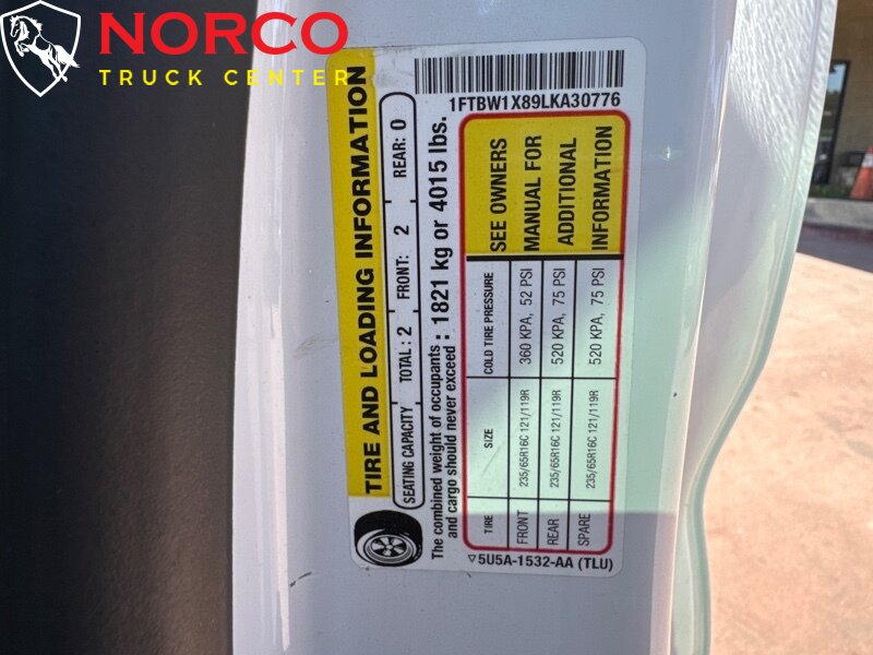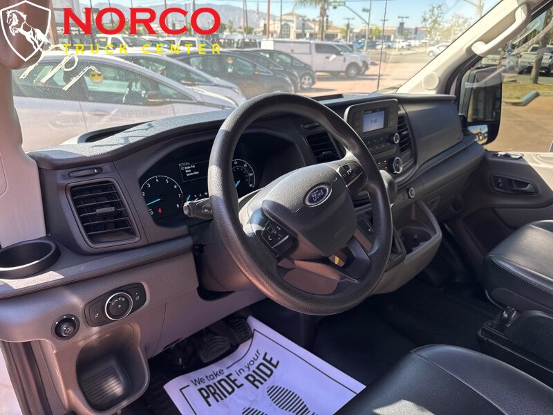 INSTALLED FEATURES: Front air conditioning, Front air conditioning zones: single, Airbag deactivation: passenger switch, Front airbags: dual, Side airbags: front, Side curtain airbags: front, Antenna type: mast, Auxiliary audio input: Bluetooth / USB, Radio: AM/FM, Total speakers: 4, ABS: 4-wheel, Braking assist, Cornering brake control, Electronic brakeforce distribution, Emergency braking preparation, Front brake diameter: 12.1, Front brake type: ventilated disc, Power brakes, Rear brake diameter: 12.1, Rear brake type: ventilated disc, Armrests: dual front, Floor material: rubber/vinyl, Shift knob trim: urethane, Steering wheel trim: urethane, Assist handle: front / rear, Capless fuel filler system, Cargo area light, Center console: front console with storage, Cupholders: front, Multi-function remote: keyless entry / panic alarm / trunk release, Overhead console: front, Power outlet(s): 12V front, Power steering: variable/speed-proportional, Reading lights: front, Steering wheel: tilt and telescopic, Steering wheel mounted controls: audio / multi-function / phone, Storage: cargo tie-down anchors and hooks / door pockets, Sun visors, Axle ratio: 4.10, Alternator: 250 amps, Battery: maintenance-free, Battery rating: 610 CCA, Body side moldings: black, Door handle color: black, Front bumper color: black, Grille color: black / black surround, Mirror color: black, Rear bumper color: black, Rear trunk/liftgate: barn, Side door type: passenger-side manual sliding, Window trim: black, Infotainment screen size: 4 in., Clock, Digital odometer, Gauge: tachometer, Trip odometer, Warnings and reminders: low fuel level, Headlights: auto high beam dimmer / halogen / wiper activated, Side mirror adjustments: manual folding / power, OEM roof height: high, Automatic emergency braking: front, Camera system: rearview, Driver attention alert system, Impact sensor: door unlock / post-collision safety system, Lane deviation sensors, Pre-collision warning system: audible warning / visual warning, Rearview monitor: in dash, Front seatbelts: 3-point, Driver seat manual adjustments: reclining / 2, Front headrests: adjustable / 2, Front seat type: bucket, Passenger seat manual adjustments: reclining / 2, Upholstery: vinyl, Anti-theft system: vehicle immobilizer, Power door locks: auto-locking, Crosswind stabilization, Hill holder control, Roll stability control, Stability control, Traction control, Trailer stability control, Front shock type: gas, Front spring type: coil, Front stabilizer bar, Front struts: MacPherson, Front suspension classification: independent, Front suspension type: lower control arms, Rear shock type: gas, Rear spring type: leaf, Rear suspension classification: solid live axle, Rear suspension type: multi-leaf, Smart device app compatibility: FordPass Connect, Smart device app function: engine start / lock operation / maintenance status / vehicle location, Wi-Fi: hotspot, Wireless data link: Bluetooth, Spare tire mount location: underbody, Spare tire size: full-size, Spare wheel type: steel, Tire Pressure Monitoring System, Tire type: all season, Wheel covers: partial, Wheels: painted steel, Auxiliary transmission fluid cooler, Front wipers: rain sensing / variable intermittent, Power windows, Solar-tinted glass