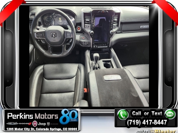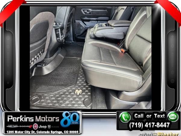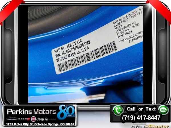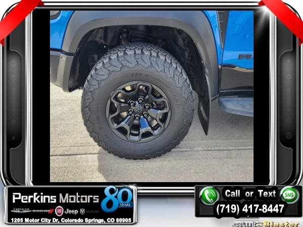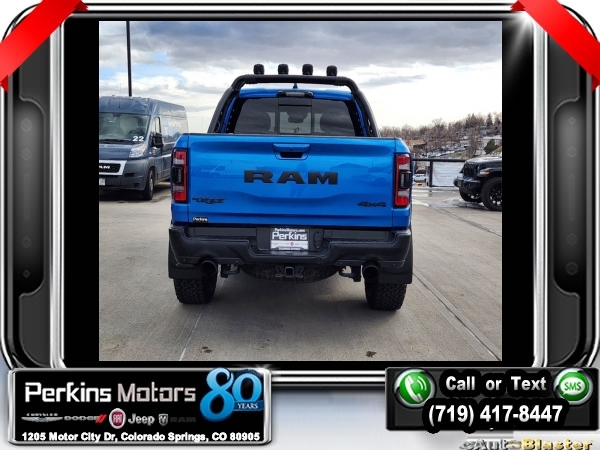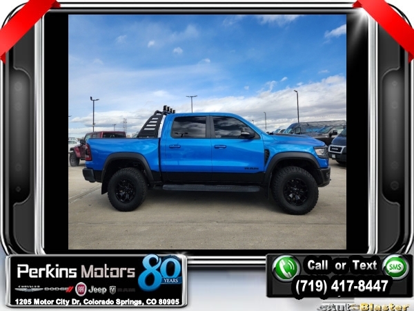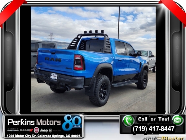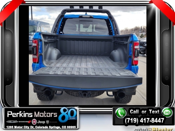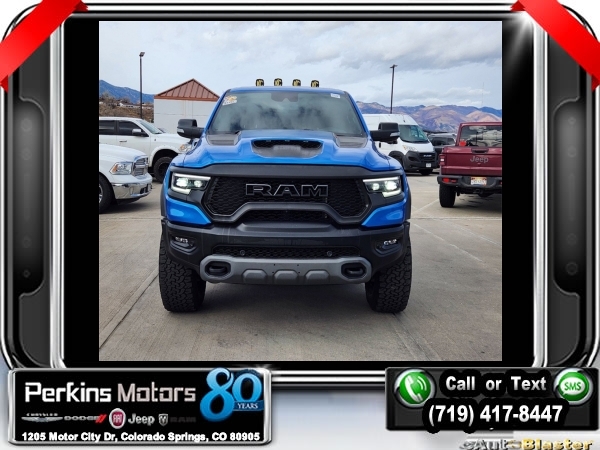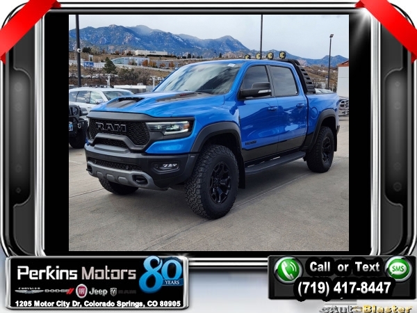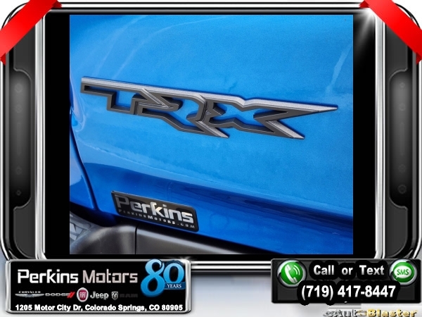 Hydro Blue Pearlcoat 4WD 6.2L Supercharged HEMI V8 SRT 8-Speed Automatic<br><br>4 Way Front Headrests, Adaptive suspension, Bed Utility Group, Blind Spot & Cross Path Detection, Body Color Door Handles, Bucket Seats, Dome Dual LED Reading Lamp, Driver Seat Memory, Driver/Passenger Wrapped Assist Handles, Dual-Pane Panoramic Sunroof, Exterior Mirrors w/Memory, Front Door Accent Lighting, Front dual zone A/C, Full Length Premium Upgraded Floor Console, harman/kardon 19 Speaker Premium Sound, Heads-Up Display, Heated Front Seats, Heated Second Row Seats, Heated Steering Wheel, IP LED Ambient Light Pipe, Leather Trimmed Bucket Seats, Leather/Suede Flat-Bottom Steering Wheel, LED CHMSL Lamp, Luxury Front Door Trim Panel, MOPAR 4 Adjustable Cargo Tie-Down Hooks, MOPAR Deployable Bed Step, MOPAR Spray In Bedliner, Navigation System, ParkSense Front/Rear Park Assist w/Stop, Pick-Up Box Lighting, Power 4-Way Driver Lumbar Adjust, Power 4-Way Passenger Lumbar Adjust, Power 8-Way Driver & Passenger Seats, Power Adjustable Pedals w/Memory, Premium Wrapped IP Bezel, Quick Order Package 29Y, Radio: Uconnect 12 w/Navigation, Radio/Driver Seat/Mirrors/Pedals Memory, Rain Sensitive Windshield Wipers, Rear 60/40 Folding Split Recline Seat, Rear Door Accent Lighting, Rear Underseat Compartment Storage, Rear Window Defroster, Rearview Autodim Digital Display Mirror, Remote Proximity Keyless Entry, Remote Start System, Remote Tailgate Release, Sun Visors w/Illuminated Vanity Mirrors, Surround View Camera System, Technology Group, Trailer Brake Control, Trailer Light Check, Trailer Tire Pressure Monitoring System, Trailer Tow Group, TRX Level 2 Equipment Group, Universal Garage Door Opener, Ventilated Front Seats, Ventilated Rear Seats, Wheels: 18 x 9 Black Paint/Polish Aluminum, Wireless Charging Pad.<br><br><br>Check us out at www.perkinsmotors.com to see our specials! Since opening our doors in 1944, we’ve been proud to serve Colorado Springs, CO, and the surrounding areas of Pueblo, Castle Rock and Denver, CO. Throughout this time of being family owned for 80 years, we’ve maintained a firm commitment to our customers: to offer a wide selection of New Chrysler, Dodge, Fiat, Jeep, and Ram vehicles and quality pre-owned vehicles, and provide a quick, no-hassle car-buying process that ensures everyone drives off the lot satisfied with their purchase.<br><br><br>Awards:<br> * Motor Trend Automobiles of the year * JD Power Automotive Performance, Execution and Layout (APEAL) Study<br><br>Bed Utility Group (MOPAR 4 Adjustable Cargo Tie-Down Hooks, MOPAR Deployable Bed Step, and MOPAR Spray In Bedliner), Quick Order Package 29Y, Technology Group (Heads-Up Display, LED CHMSL Lamp, and Rearview Autodim Digital Display Mirror), Trailer Tow Group (Trailer Brake Control, Trailer Light Check, and Trailer Tire Pressure Monitoring System), TRX Level 2 Equipment Group (4 Way Front Headrests, Blind Spot & Cross Path Detection, Body Color Door Handles, Bucket Seats, Driver Seat Memory, Driver/Passenger Wrapped Assist Handles, Exterior Mirrors w/Memory, Front Door Accent Lighting, Full Length Premium Upgraded Floor Console, Heated Front Seats, Heated Second Row Seats, Heated Steering Wheel, IP LED Ambient Light Pipe, Leather Trimmed Bucket Seats, Leather/Suede Flat-Bottom Steering Wheel, Luxury Front Door Trim Panel, ParkSense Front/Rear Park Assist w/Stop, Pick-Up Box Lighting, Power 4-Way Driver Lumbar Adjust, Power 4-Way Passenger Lumbar Adjust, Power 8-Way Driver & Passenger Seats, Power Adjustable Pedals w/Memory, Premium Wrapped IP Bezel, Radio/Driver Seat/Mirrors/Pedals Memory, Rain Sensitive Windshield Wipers, Rear 60/40 Folding Split Recline Seat, Rear Door Accent Lighting, Rear Underseat Compartment Storage, Rear Window Defroster, Remote Proximity Keyless Entry, Remote Start System, Remote Tailgate Release, Sun Visors w/Illuminated Vanity Mirrors, Surround View Camera System, Universal Garage Door Opener, Ventilated Front Seats, Ventilated Rear