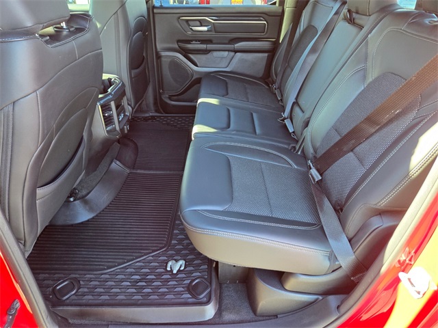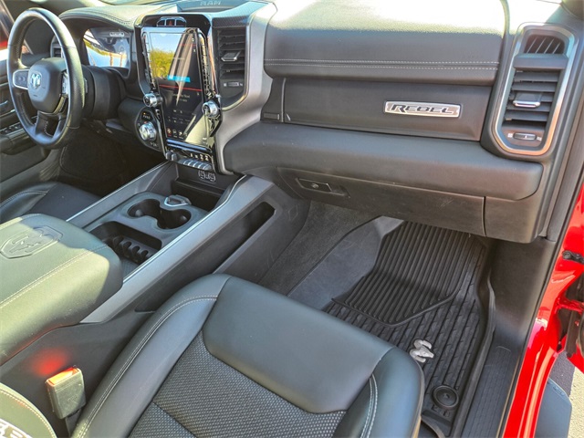 Priced below KBB Fair Purchase Price!Odometer is 22626 miles below market average!Flame Red Clearcoat 2021 Ram 1500 Rebel 4WD 8-Speed Automatic HEMI 5.7L V8 Multi Displacement VVTIf you don't drive here, you can't save here!Awards: * JD Power Automotive Performance, Execution and Layout (APEAL) Study * Motor Trend Automobiles of the yearPrice may not include recon fee. Night Edition (Black Front Bumper w/Black Plate, Grille Moustache Black Outline Texture 3, RAM Grille Badge - Black, and Wheels: 18" x 8.0" Gloss Black), Quick Order Package 25W Rebel, Rebel Level 2 Equipment Group (115V Auxiliary Rear Power Outlet, Air Conditioning ATC w/Dual Zone Control, Auto-Dimming Exterior Driver Mirror, Black Premium Power Mirrors, Body Color Door Handles, Exterior Mirrors Courtesy Lamps, Exterior Mirrors w/Supplemental Signals, Foam Bottle Insert (Door Trim Panel), Heated Front Seats, Heated Steering Wheel, Media Hub w/2 Charge Only USBs, ParkSense Front/Rear Park Assist w/Stop, Power Adjustable Pedals, Power-Folding Mirrors, Radio: Uconnect 4 w/8.4" Display, Rain Sensitive Windshield Wipers, Rear Dome w/On/Off Switch Lamp, Rear Underseat Compartment Storage, Rear Window Defroster, Remote Proximity Keyless Entry, Security Alarm, Sun Visors w/Illuminated Vanity Mirrors, and Universal Garage Door Opener), 1-Yr SiriusXM Guardian Trial, 12" Touchscreen Display, 3.92 Rear Axle Ratio, 4 Way Front Headrests, 4-Wheel Disc Brakes, 48V Belt Starter Generator, 4G LTE Wi-Fi Hot Spot, 5-Year SiriusXM Traffic Service, 5-Year SiriusXM Travel Link Service, 6 Speakers, 9 Amplified Speakers w/Subwoofer, ABS brakes, Air Conditioning, Alloy wheels, AM/FM radio: SiriusXM, Apple CarPlay, Auto-dimming Rear-View mirror, Black Exterior Mirrors, Brake assist, Bucket Seats, Cloth/Vinyl Low Back Bucket Seats, Compass, Delay-off headlights, Disassociated Touchscreen Display, Driver door bin, Dual front impact airbags, Dual front side impact airbags, Electric Shift-On-Demand Transfer Case, Electronic Stability Control, For Details, Visit DriveUconnect.com, For More Info, Call 800-643-2112, Front anti-roll bar, Front Bucket Seats, Front Center Armrest w/Storage, Front fog lights, Front License Plate Bracket, Front reading lights, Front Seat Back Map Pockets, Front wheel independent suspension, Full Length Upgraded Floor Console, Fully automatic headlights, Google Android Auto, GPS Antenna Input, GPS Navigation, HD Radio, Heated door mirrors, Illuminated entry, Instrument Cluster Theme 5 - Rebel 2, Integrated Center Stack Radio, Integrated Voice Command w/Bluetooth, Leather steering wheel, LED Footwell Lighting, Low tire pressure warning, Manufacturer's Statement of Origin, Occupant sensing airbag, Outside temperature display, Overhead airbag, Overhead console, Panic alarm, ParkView Rear Back-Up Camera, Passenger door bin, Passenger vanity mirror, Power 4-Way Driver Lumbar Adjust, Power door mirrors, Power driver seat, Power steering, Power windows, Radio data system, Radio: Uconnect 12 w/Navigation, Radio: Uconnect 3 w/5" Display, Rear 60/40 Folding Seat, Rear anti-roll bar, Rear seat center armrest, Rear step bumper, Remote keyless entry, Remote Start System, SiriusXM Radio Service, SiriusXM Satellite Radio, SiriusXM Traffic Plus, SiriusXM Travel Link, SiriusXM w/360L, Speed control, Split folding rear seat, Steering wheel mounted audio controls, Tachometer, Telescoping steering wheel, Tilt steering wheel, Traction control, Trailer Brake Control, Trip computer, USB Host Flip, Variably intermittent wipers, Voltmeter, and Wheels: 18" x 8.0" Painted Mid-Gloss BlacK.