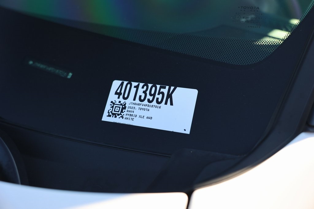 Ice Cap 2023 Toyota RAV4 Hybrid XLE AWD eCVT 2.5L 4-Cylinder 2.5L 4-Cylinder, 6 Speakers, Air Conditioning, Brake assist, Convenience Package, Electronic Stability Control, Exterior Parking Camera Rear, Front Door Smart Key System w/Push Button Start, Front Seat Heating, Fully automatic headlights, Heated 3-Spoke Leather Steering Wheel, Lane Departure Warning System, Radio: AM/FM/XM Audio System, Tilt & Slide Moon Roof, Wheels: 17" x 7.0J Silver Aluminum Alloy, XLE Grade Weather Package.41/38 City/Highway MPG