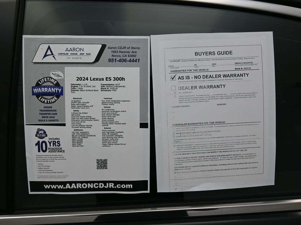 Priced below KBB Fair Purchase Price!FACTORY WARRANTY, LIFE TIME WARRANTY, BELOW AVERAGE ODOMETER, FRESH OIL CHANGE, ES 300h, 4D Sedan, 2.5L I4 DOHC 16V, eCVT, FWD, 10 Speakers, Alloy wheels, Compass, Exterior Parking Camera Rear, Front dual zone A/C, Heated & Ventilated Seats, Heated Leather 3-Spoke Steering Wheel, Intuitive Parking Assist w/Auto Braking, Knee airbag, Low tire pressure warning, Overhead airbag, Parking Support Alert/Brake, Perforated NuLuxe Seat Trim (LD), Power moonroof, Power Tilt/Telescoping Steering Wheel w/Memory, Power-Folding Outside Mirrors w/Memory, Premium Package, Radio: Lexus Interface w/8" Multimedia Touch Scrn, Rain Sensing Wipers, Windshield De-Icer, Wireless Charger.For help with any Vehicle needs please call us directly at 951-621-1288.Clean CARFAX.CARFAX One-Owner.