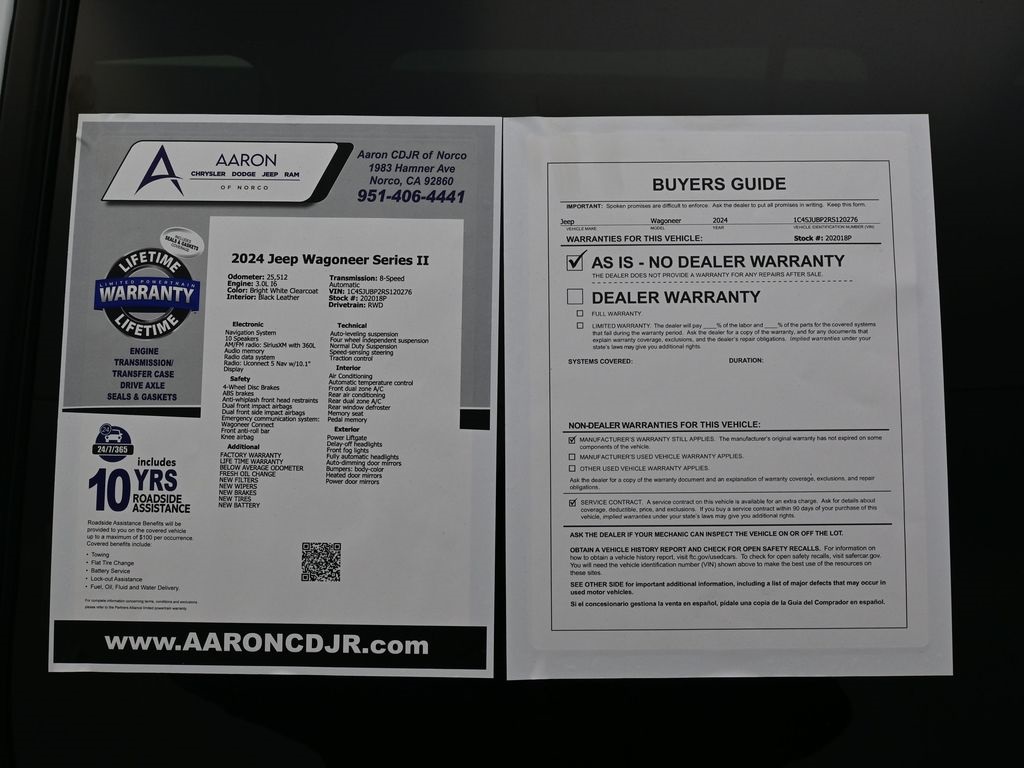 Priced below KBB Fair Purchase Price!LIFE TIME WARRANTY, BELOW AVERAGE ODOMETER, FRESH OIL CHANGE, NEW FILTERS, NEW WIPERS, Wagoneer Series II, 4D Sport Utility, 3.0L I6, 8-Speed Automatic, RWD, 10 Speakers, 3rd row seats: bench, Alloy wheels, Apple CarPlay/Android Auto, Compass, Exterior Parking Camera Rear, Front dual zone A/C, Front fog lights, Knee airbag, Low tire pressure warning, Memory seat, Navigation System, Power Liftgate, Quick Order Package 25J, Radio: Uconnect 5 Nav w/10.1" Display, Rear dual zone A/C, Reclining 3rd row seat, Wheels: 20" x 9.0" Premium 2 Aluminum.For help with any Vehicle needs please call us directly at 951-621-1288.Clean CARFAX.CARFAX One-Owner.
