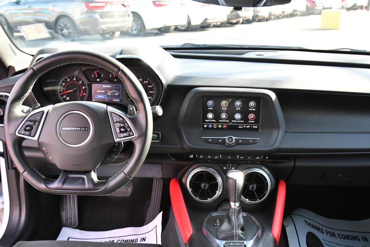 Delivers 26 Highway MPG and 16 City MPG! This Chevrolet Camaro delivers a Gas V8 6.2L/376 engine powering this Automatic transmission. WHEELS, 20 (50.8 CM) BLACK-PAINTED ALUMINUM WITH RED ACCENTS, TRANSMISSION, 10-SPEED AUTOMATIC includes transmission oil cooler and (BTV) remote vehicle starter system, SUMMIT WHITE.*This Chevrolet Camaro Comes Equipped with These Options *RS PACKAGE includes dark tint LED tail lamps, RS-specific grilles, Black front and rear bowties, and (D80) decklid-mounted lip spoiler , SPOILER, DECKLID-MOUNTED LIP SPOILER, SEATS, LEATHER-TRIMMED WITH SUEDED INSERTS FRONT BUCKET, RECARO PERFORMANCE, SEAT BELT COLOR, RED, REMOTE VEHICLE STARTER SYSTEM, REDLINE EDITION GRAPHICS, REDLINE EDITION includes (SRI/58E) 20 Black-painted aluminum wheels with Red accents, (CG6) Black Camaro fender badge with Red outline, (VUP) Redline Edition graphics, (3F9) Red seat belt color and (2F5) Red knee pads (Also includes lower grille with Red Hot inserts., REAR AXLE, 2.77 RATIO, PADDLE-SHIFT MANUAL CONTROLS, LT1 PREFERRED EQUIPMENT GROUP includes standard equipment.