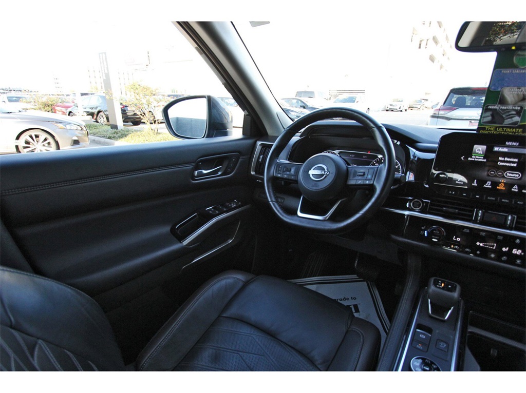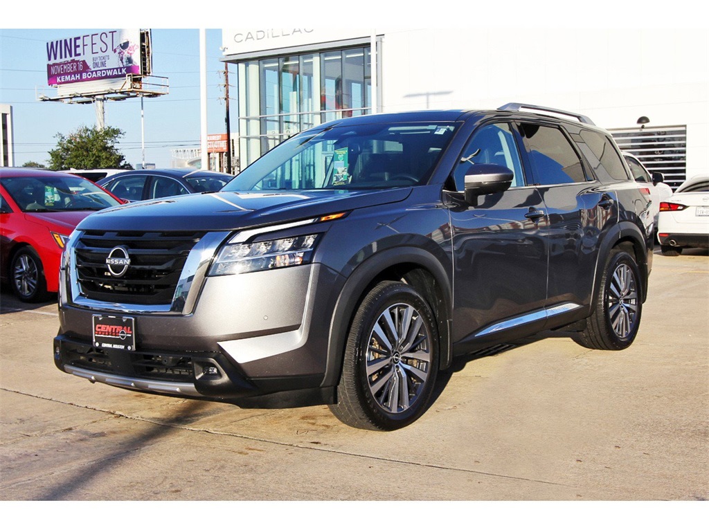 Central Houston Nissan is proud to present you with another True Market Priced Pre-Owned Vehicle. This 2022 Nissan Pathfinder Platinum Nissan Certified is loaded with the following Factory Options: Nissan Certified Certified and 4WD Cargo Package (Cargo Area Protector, Cargo Net, and First Aid Kit), Nissan Certified Certified, 4WD, 13 Speakers, 3rd row seats: bench, 4-Wheel Disc Brakes, ABS brakes, Air Conditioning, Alloy wheels, AM/FM radio: SiriusXM, Auto High-beam Headlights, Auto tilt-away steering wheel, Auto-dimming Rear-View mirror, Automatic temperature control, Axle Ratio: TBD, Black Splash Guards (Set of 4), Bodyside moldings, Bose Premium Audio System, Brake assist, Bumpers: body-color, Captain's Chairs Carpeted Floor Mats (Set of 4), Climate Controlled Front Bucket Seats, Delay-off headlights, Driver door bin, Driver vanity mirror, Dual front impact airbags, Dual front side impact airbags, Electronic Stability Control, Emergency communication system: NissanConnect Services, Exterior Parking Camera Rear, Four wheel independent suspension, Front anti-roll bar, Front Bucket Seats, Front Center Armrest, Front dual zone A/C, Front fog lights, Front reading lights, Fully automatic headlights, Garage door transmitter: HomeLink, Heads-Up Display, Heated door mirrors, Heated front seats, Heated rear seats, Heated steering wheel, Illuminated entry, Knee airbag, Leather steering wheel, Low tire pressure warning, Memory seat, Navigation system: NissanConnect Navigation, NissanConnect w/Navigation & Services, Occupant sensing airbag, Outside temperature display, Overhead airbag, Overhead console, Panic alarm, Passenger door bin, Passenger vanity mirror, Power door mirrors, Power driver seat, Power Liftgate, Power moonroof, Power passenger seat, Power steering, Power windows, Radio data system, Radio: AM/FM Audio System, Rain sensing wipers, Rear air conditioning, Rear anti-roll bar, Rear reading lights, Rear side impact airbag, Rear window defroster, Rear window wiper, Reclining 3rd row seat, Remote keyless entry, Security system, Semi-Aniline Leather Seating Surfaces, Speed control, Speed-sensing steering, Speed-Sensitive Wipers, Split folding rear seat, Spoiler, Steering wheel memory, Steering wheel mounted audio controls, Tachometer, Telescoping steering wheel, TFT Meter Delete, Tilt steering wheel, Traction control, Trip computer, Turn signal indicator mirrors, Variably intermittent wipers, Ventilated front seats, and Wheels: 20" Alloy w/Unique Finish!!Central Houston Nissan is more than just your typical car dealership. When our customers visit us, our goal is to provide quality vehicles, exceptional service and a friendly atmosphere. Our staff has been trained to create ease during your purchase or service experience and we are always making sure you get everything you want and deserve out of your visit. Our vision and mission is an employee-centered and customer-focused environment. Vehicles may be subject to prep package and market adjustment. When you buy from Central Houston Nissan, we'll make it the best car buying experience you've ever had. When you purchase a New Nissan or a qualifying Pre-Owned vehicle from Central Houston Nissan, you are automatically enrolled into our Central Houston Nissan Central Care Program at no cost to you. You can’t beat that! Vehicles may be subject to prep package and market adjustment. Stop by 2901 S Loop W, Houston, Texas 77054 today!!!