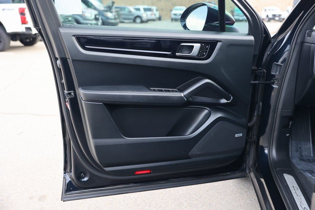 New Price! Moonlight Blue Metallic 2019 Porsche Cayenne S AWD 8-Speed Automatic with Tiptronic 2.9L V6 Black w/Leather Seat Trim w/Leather Interior, 10 Speakers, 14-Way Power Seats w/Memory Package, Adaptive suspension, Air Conditioning, Ambient Lighting, Apple CarPlay, Automatically Dimming Mirrors, BOSE Surround Sound System, Brake assist, Comfort Access, Electronic Stability Control, Exterior Parking Camera Rear, Front Bucket Seats, Fully automatic headlights, Heated Front Seats, Lane Change Assist (LCA), LED Headlights w/PDLS, Navigation system: Porsche Communication Management (PCM), Porsche Communication Management, Power Liftgate, Power moonroof: Panoramic, Premium Package, Rear fog lights, Remote keyless entry, Speed control, Spoiler, Wheels: 20" Cayenne Sport.Awards: * JD Power Automotive Performance, Execution and Layout (APEAL) Study * JD Power Automotive Performance, Execution and Layout (APEAL) Study, Vehicle Dependability Study (VDS) * 2019 KBB.com 10 Best Luxury SUVs * 2019 KBB.com Best Resale Value Awards * 2019 KBB.com Brand Image Awards