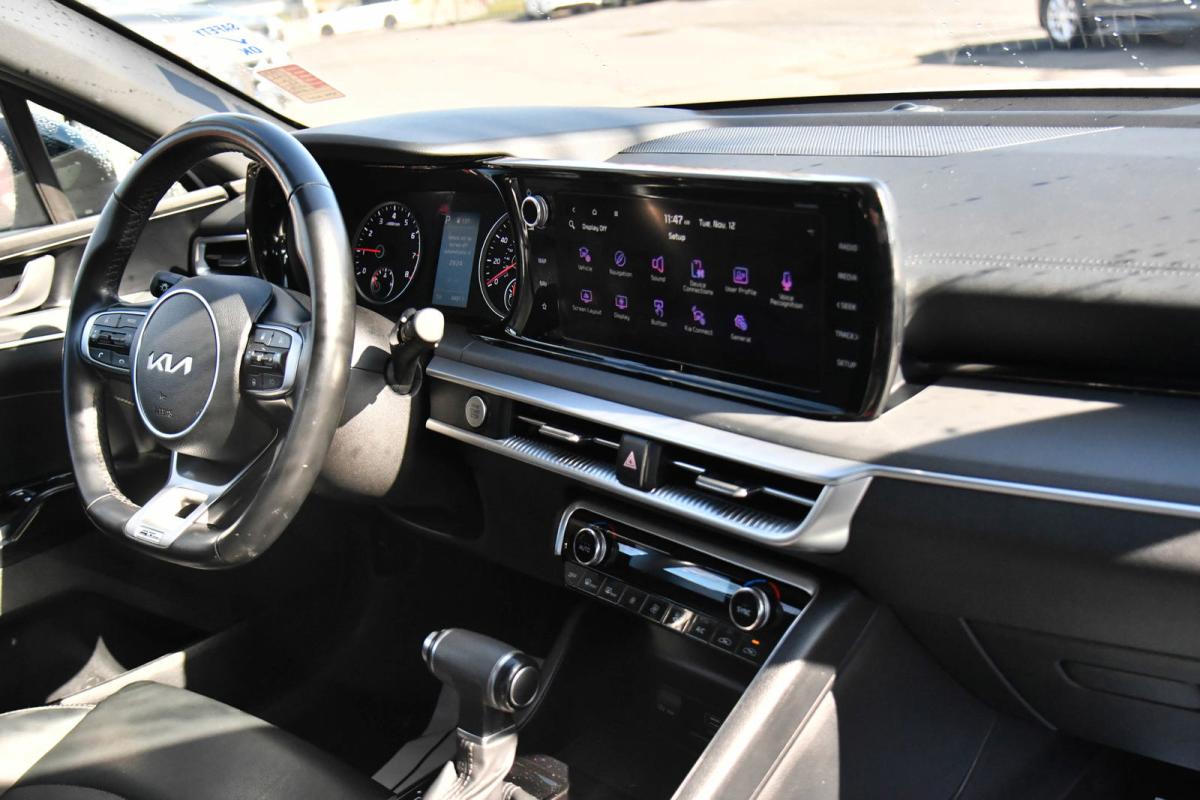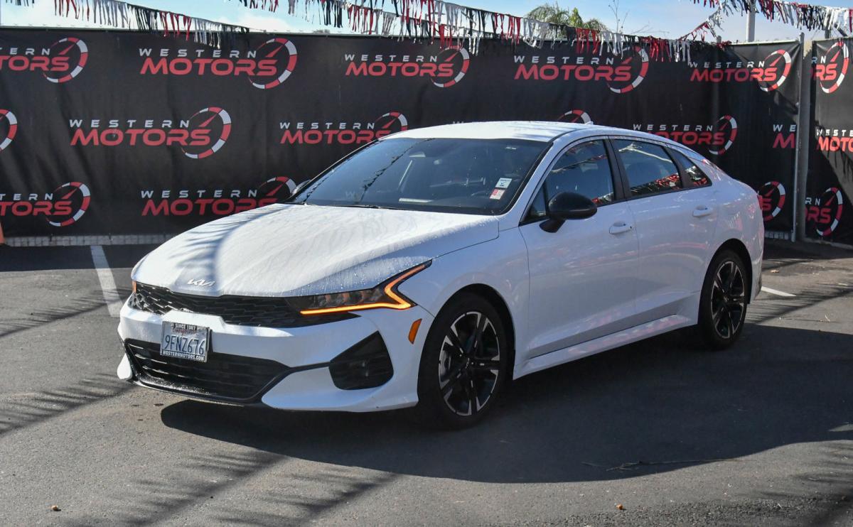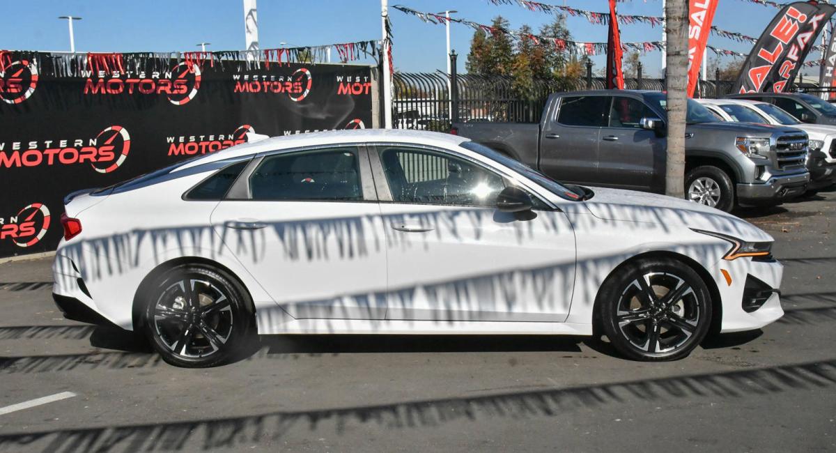 Delivers 37 Highway MPG and 27 City MPG! This Kia K5 delivers a Intercooled Turbo Regular Unleaded I-4 1.6 L/98 engine powering this Automatic transmission. GLACIAL WHITE PEARL, CARPETED FLOOR MATS, CARGO MAT.*This Kia K5 Comes Equipped with These Options *BLACK, CLOTH/SYNTEX SEAT TRIM -inc: GT-Line logo, Window Grid Antenna, Wheels: 18 Gloss Black Machined Finish Alloy, Variable Intermittent Wipers, Urethane Gear Shifter Material, Turn-By-Turn Navigation Directions, Trunk Rear Cargo Access, Trip Computer, Transmission: 8-Speed Automatic -inc: drive mode select system, Transmission w/Sequential Shift Control.