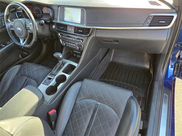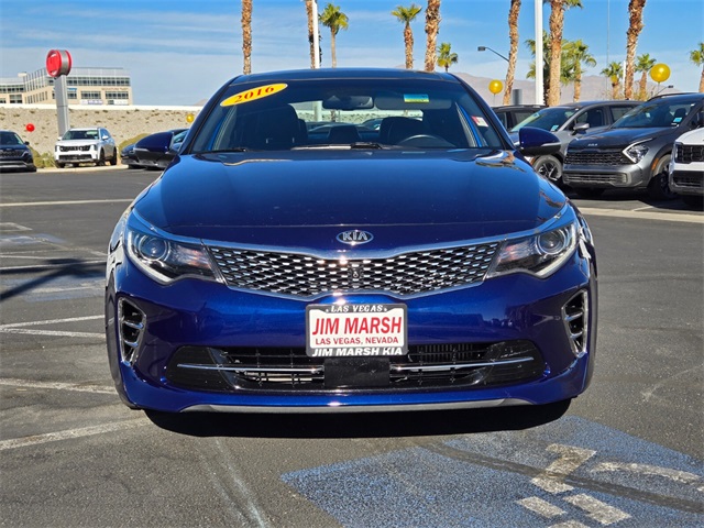 Odometer is 20328 miles below market average!22/32 City/Highway MPGBlue 2016 Kia Optima SXL Turbo FWD 6-Speed Automatic with Sportmatic 2.0L I4 DGI DOHC Turbocharged Leather.If you don't drive here, you can't save here!Awards: * JD Power Automotive Performance, Execution and Layout (APEAL) Study * 2016 IIHS Top Safety Pick+ * 2016 KBB.com 16 Best Family Cars * 2016 KBB.com 10 Best Used Cars Under $20,000 * 2016 KBB.com 10 Best Sedans Under $25,000 * 2016 KBB.com 10 Most Awarded Cars * 2016 KBB.com 10 Most Comfortable Cars Under $30,000 * 2016 KBB.com Best Buy Awards Finalist * 2016 KBB.com Best Buy AwardsPrice may not include recon fee. Leather, 10 Speakers, 18" Chrome Alloy Wheels, 4-Wheel Disc Brakes, 8" Navigation System, ABS brakes, Air Conditioning, Alloy wheels, AM/FM radio: SiriusXM, AM/FM/CD/MP3 Radio, Auto High-beam Headlights, Auto-dimming Rear-View mirror, Automatic temperature control, Brake assist, Bumpers: body-color, Chrome wheels, Compass, Delay-off headlights, Driver door bin, Driver vanity mirror, Dual front impact airbags, Dual front side impact airbags, Electronic Stability Control, Exterior Parking Camera Rear, Four wheel independent suspension, Front anti-roll bar, Front Bucket Seats, Front Center Armrest, Front dual zone A/C, Front reading lights, Fully automatic headlights, Garage door transmitter: HomeLink, Heated & Ventilated Front Bucket Seats, Heated door mirrors, Heated front seats, Heated rear seats, Heated steering wheel, High intensity discharge headlights: Bi-Xenon, Illuminated entry, Knee airbag, Leather Shift Knob, Leather steering wheel, Low tire pressure warning, Memory seat, Nappa Leather Seat Trim, Navigation System, Occupant sensing airbag, Outside temperature display, Overhead airbag, Overhead console, Panic alarm, Passenger door bin, Passenger vanity mirror, Power door mirrors, Power driver seat, Power moonroof, Power passenger seat, Power steering, Power windows, Rear anti-roll bar, Rear Camera Display, Rear Parking Sensors, Rear reading lights, Rear seat center armrest, Rear window defroster, Remote keyless entry, Security system, Speed control, Speed-sensing steering, Split folding rear seat, Spoiler, Sport steering wheel, Steering wheel mounted audio controls, Tachometer, Telescoping steering wheel, Tilt steering wheel, Traction control, Trip computer, Turn signal indicator mirrors, Variably intermittent wipers, and Ventilated front seats.