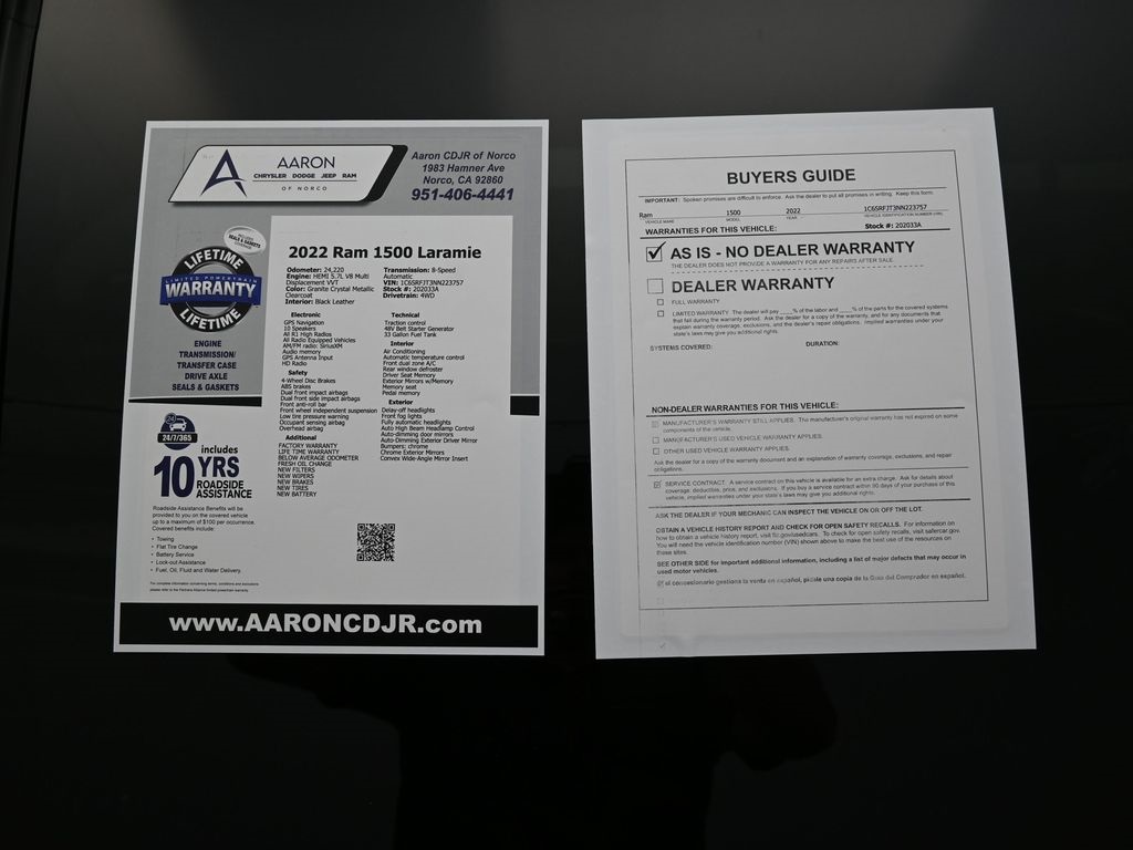 Priced below KBB Fair Purchase Price!LIFE TIME WARRANTY, BELOW AVERAGE ODOMETER, FRESH OIL CHANGE, NEW FILTERS, NEW WIPERS, 1500 Laramie, 4D Crew Cab, HEMI 5.7L V8 Multi Displacement VVT, 8-Speed Automatic, 4WD, 10 Speakers, 12" Touchscreen Display, 3 Rear Seat Head Restraints, 4G LTE Wi-Fi Hot Spot, All R1 High Radios, All Radio Equipped Vehicles, Apple CarPlay, Auto High Beam Headlamp Control, Connected Travel & Traffic Services, Connectivity - US/Canada, Disassociated Touchscreen Display, Foam Bottle Insert (Door Trim Panel), For Details, Visit DriveUconnect.com, For More Info, Call 800-643-2112, Front dual zone A/C, Front fog lights, Global Telematics Box Module (TBM), Google Android Auto, GPS Antenna Input, GPS Navigation, HD Radio, Integrated Center Stack Radio, Integrated Voice Command w/Bluetooth, Laramie Level A Equipment Group (DISC), Low tire pressure warning, Memory seat, Overhead airbag, ParkSense Front/Rear Park Assist w/Stop, ParkView Rear Back-Up Camera, Quick Order Package 27H Laramie, Radio: Uconnect 5 Nav w/12.0" Display, Rain Sensitive Windshield Wipers, Rear 60/40 Folding Split Recline Seat, Remote Tailgate Release, SiriusXM Radio Service, SiriusXM w/360L, USB Host Flip.CARFAX One-Owner.