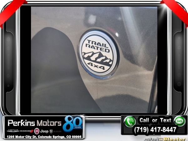 Granite Crystal Metallic Clearcoat 4WD 3.6L V6 24V VVT 8-Speed Automatic<br><br>1-Year SiriusXM Guardian Trial, 240 Amp Alternator, 5-Year SiriusXM Traffic Service, 5-Year SiriusXM Travel Link Service, 8.4 Radio & Premium Audio Group, 8.4 Touchscreen Display, Alpine Premium Audio System, Auto-Dimming Rear-View Mirror, Black 3-Piece Hard Top, Class IV Hitch Receiver, Emergency/Assistance Call, For Details, Visit DriveUconnect.com, Freedom Panel Storage Bag, Front Bucket Seats, Full Length Floor Console Premium Armrest, GPS Navigation, HD Radio, Heavy-Duty Engine Cooling, Leather Trimmed Bucket Seats, Leather Wrapped Park Brake Handle, Leather Wrapped Shift Knob, Navigation System, Off-Road Info Pages, Popular Equipment Package, Premium Door Trim Panel, Premium Wrapped I/P Bezel, Quick Order Package 24G, Radio: Uconnect 4C Nav w/8.4 Display, Rear Armrest w/Cupholder Seat, Rear Sliding Window, Rear Window Defroster, SiriusXM Traffic Plus, SiriusXM Travel Link, Trailer Hitch Zoom, Trailer Tow Package.<br><br>Certified. FCA US LLC Certified Pre-Owned Details:<br><br> * Vehicle History<br> * Warranty Deductible: $100<br> * Powertrain Limited Warranty: 84 Month/100,000 Mile (whichever comes first) from original in-service date<br> * Limited Warranty: 3 Month/3,000 Mile (whichever comes first) after new car warranty expires or from certified purchase date<br> * Transferable Warranty<br> * Includes First Day Rental, Car Rental Allowance, and Trip Interruption Benefits. SiriusXM 3 month trial subscription<br> * Roadside Assistance<br> * 125 Point Inspection<br><br><br>Clean CARFAX.<br><br>Check us out at www.perkinsmotors.com to see our specials! Since opening our doors in 1944, we’ve been proud to serve Colorado Springs, CO, and the surrounding areas of Pueblo, Castle Rock and Denver, CO. Throughout this time of being family owned for 80 years, we’ve maintained a firm commitment to our customers: to offer a wide selection of New Chrysler, Dodge, Fiat, Jeep, and Ram vehicles and quality pre-owned vehicles, and provide a quick, no-hassle car-buying process that ensures everyone drives off the lot satisfied with their purchase.<br><br><br>8.4 Radio & Premium Audio Group (1-Year SiriusXM Guardian Trial, 5-Year SiriusXM Traffic Service, 5-Year SiriusXM Travel Link Service, 8.4 Touchscreen Display, Alpine Premium Audio System, Auto-Dimming Rear-View Mirror, Emergency/Assistance Call, For Details, Visit DriveUconnect.com, GPS Navigation, HD Radio, Radio: Uconnect 4C Nav w/8.4 Display, SiriusXM Traffic Plus, and SiriusXM Travel Link), Popular Equipment Package (Black 3-Piece Hard Top, Freedom Panel Storage Bag, Full Length Floor Console Premium Armrest, Leather Trimmed Bucket Seats, Leather Wrapped Park Brake Handle, Leather Wrapped Shift Knob, Off-Road Info Pages, Premium Door Trim Panel, Premium Wrapped I/P Bezel, Rear Armrest w/Cupholder Seat, Rear Sliding Window, and Rear Window Defroster), Quick Order Package 24G, Trailer Tow Package (240 Amp Alternator, Class IV Hitch Receiver, Heavy-Duty Engine Cooling, and Trailer Hitch Zoom), FCA US LLC Certified Pre-Owned Certified, Front Bucket Seats, Navigation System, 110 mph Vehicle Max Speed Calibration, 3.73 Rear Axle Ratio, 4-Wheel Disc Brakes, 400W Inverter, 8 Speakers, ABS brakes, Air Conditioning, Alloy wheels, AM/FM radio: SiriusXM, Apple CarPlay/Android Auto, Automatic temperature control, Brake assist, Compass, Cruise Control, Delay-off headlights, Driver door bin, Driver vanity mirror, Dual front impact airbags, Dual front side impact airbags, Electronic Stability Control, Front anti-roll bar, Front Center Armrest w/Storage, Front dual zone A/C, Front fog lights, Front License Plate Bracket, Front reading lights, Fully automatic headlights, Garage door transmitter, Heated door mirrors, Illuminated entry, Integrated roll-over protection, Leather steering wheel, Low tire pressure warning, MOPAR Hardtop Headliner, Normal Duty Plus Suspension, Occupant sensing airbag, Outs
