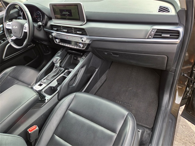Priced below KBB Fair Purchase Price!Dark Moss 2022 Kia Telluride S AWD 8-Speed Automatic 3.8L V6 DOHCIf you don't drive here, you can't save here!Price may not include recon fee. 20" x 7.5" Machined Alloy Wheels, 3.648 Axle Ratio, 3rd row seats: split-bench, 4-Wheel Disc Brakes, 6 Speakers, ABS brakes, Air Conditioning, Alloy wheels, AM/FM radio: SiriusXM, Apple CarPlay & Android Auto, Automatic temperature control, Brake assist, Bumpers: body-color, Cargo Cover, Carpeted Floor Mats, Delay-off headlights, Driver door bin, Driver vanity mirror, Dual front impact airbags, Dual front side impact airbags, Electronic Stability Control, Emergency communication system: 911 Connect, Four wheel independent suspension, Front anti-roll bar, Front Bucket Seats, Front Center Armrest, Front dual zone A/C, Front reading lights, Fully automatic headlights, Heated door mirrors, Heated Front Bucket Seats, Heated front seats, Illuminated entry, Knee airbag, Leather Shift Knob, Leather steering wheel, Low tire pressure warning, Navigation System, Occupant sensing airbag, Outside temperature display, Overhead airbag, Overhead console, Panic alarm, Passenger door bin, Passenger vanity mirror, Power door mirrors, Power driver seat, Power moonroof, Power steering, Power windows, Radio data system, Radio: AM/FM Display Audio System, Rear air conditioning, Rear anti-roll bar, Rear audio controls, Rear reading lights, Rear window defroster, Rear window wiper, Reclining 3rd row seat, Remote keyless entry, Roof rack: rails only, Security system, Smart Key w/ Push Button and Remote Start, Speed control, Speed-sensing steering, Split folding rear seat, Spoiler, Steering wheel mounted audio controls, Synthetic Leather Seat Trim, Tachometer, Telescoping steering wheel, Tilt steering wheel, Traction control, Trip computer, Turn signal indicator mirrors, and Variably intermittent wipers.