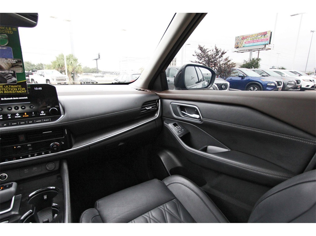 Central Houston Nissan is proud to present you with another True Market Priced Pre-Owned Vehicle. This 2022 Nissan Rogue Platinum Nissan Certified is loaded with the following Factory Options: Nissan Certified Certified Head-Up Display Package (Heads-Up Display), Nissan Certified Certified, 10 Speakers, 19" Aluminum Alloy Wheels, 4-Wheel Disc Brakes, 5.604 Axle Ratio, ABS brakes, Air Conditioning, Alloy wheels, AM/FM radio: SiriusXM, Apple CarPlay/Android Auto, Auto High-beam Headlights, Auto-dimming Rear-View mirror, Automatic temperature control, Black Splash Guards (Set of 4), Bose Premium Audio System, Brake assist, Bumpers: body-color, Chrome Rear Bumper Protector, Delay-off headlights, Driver door bin, Driver vanity mirror, Dual front impact airbags, Dual front side impact airbags, Electronic Stability Control, Emergency communication system: NissanConnect Services, External Ground Lighting, First Aid Kit, Floor Mats w/2-Piece Cargo Area Protector, Four wheel independent suspension, Frameless Rearview Mirror w/Universal Remote, Front anti-roll bar, Front Bucket Seats, Front Center Armrest, Front dual zone A/C, Front fog lights, Front reading lights, Fully automatic headlights, Heated door mirrors, Heated Front Bucket Seats, Heated front seats, Heated rear seats, Heated steering wheel, Illuminated entry, Illuminated Kick Plates, Knee airbag, Low tire pressure warning, Memory seat, Navigation system: NissanConnect Navigation, Occupant sensing airbag, Outside temperature display, Overhead airbag, Overhead console, Panic alarm, Passenger door bin, Passenger vanity mirror, Power door mirrors, Power driver seat, Power Liftgate, Power moonroof, Power passenger seat, Power steering, Power windows, Quilted Semi-Aniline Leather Seat Trim, Radio data system, Radio: AM/FM NissanConnect w/Navigation, Rear air conditioning, Rear anti-roll bar, Rear reading lights, Rear seat center armrest, Rear side impact airbag, Rear window defroster, Rear window wiper, Remote keyless entry, Roof rack: rails only, Security system, Speed control, Speed-Sensitive Wipers, Split folding rear seat, Spoiler, Steering wheel mounted audio controls, Tachometer, Telescoping steering wheel, Tilt steering wheel, Traction control, Trip computer, Turn signal indicator mirrors, and Variably intermittent wipers!!Central Houston Nissan is more than just your typical car dealership. When our customers visit us, our goal is to provide quality vehicles, exceptional service and a friendly atmosphere. Our staff has been trained to create ease during your purchase or service experience and we are always making sure you get everything you want and deserve out of your visit. Our vision and mission is an employee-centered and customer-focused environment. Vehicles may be subject to prep package and market adjustment. When you buy from Central Houston Nissan, we'll make it the best car buying experience you've ever had. When you purchase a New Nissan or a qualifying Pre-Owned vehicle from Central Houston Nissan, you are automatically enrolled into our Central Houston Nissan Central Care Program at no cost to you. You can’t beat that! Vehicles may be subject to prep package and market adjustment. Stop by 2901 S Loop W, Houston, Texas 77054 today!!!