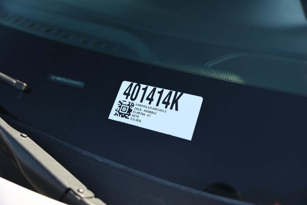 Symphony Air Silver 2018 Hyundai Elantra GT FWD 6-Speed Automatic with Shiftronic 2.0L DOHC 17" x 7" Alloy Wheels, 6 Speakers, Air Conditioning, Apple CarPlay & Android Auto, Blind Spot Detection w/Rear Cross Traffic Alert, Blue Link Connected Car System, Brake assist, Driver's Auto-Up/Down Window, Dual Automatic Temperature Control, Electronic Stability Control, Exterior Parking Camera Rear, Full LED Headlights, Fully automatic headlights, Heated Front Bucket Seats, Leather Seating Surfaces, Leather Wrapped Steering Wheel & Shift Knob, LED Taillights, Option Group 02, Panoramic Sunroof, Proximity Key Entry w/Push Button Start, Radio: AM/FM/HD Radio/SiriusXM Audio System, Radio: AM/FM/HD/SiriusXM w/Navigation System, Side Mirrors w/Turn Signal Indicators, Sliding Center Armrest, Speed control, Style Package 02, Tech Package 03.Odometer is 78544 miles below market average! 24/32 City/Highway MPGAwards: * 2018 KBB.com 5-Year Cost to Own Awards * 2018 KBB.com 10 Most Awarded Brands