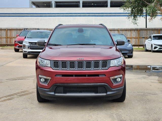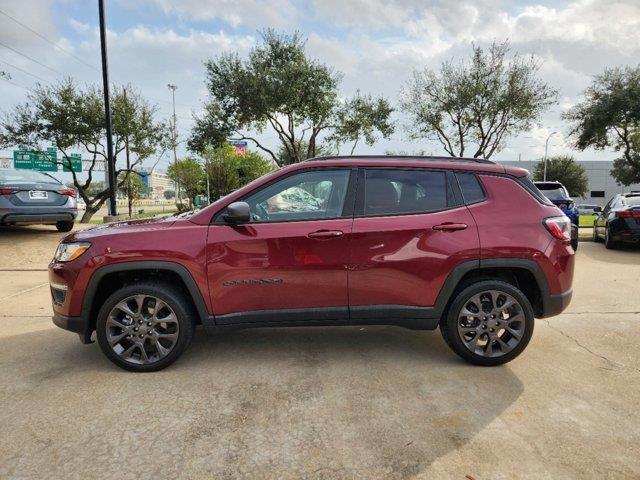 This Velvet Red Pearlcoat 2021 Jeep Compass 80th Anniversary would be a welcomed addition to your family or business. \n\n \n\nThis Compass has the following features:\n\n\n\n<h4 class=vc_build_package_name>80th Anniversary Convenience Group ($1,195 value)</h4><ul class=vc_build_package_item_list><li>Reversible Carpet/vinyl Cargo Mat</li><li>Heated Front Seats</li><li>Power Liftgate</li><li>Windshield Wiper De-Icer</li><li>Heated Steering Wheel</li></ul><h4 class=vc_build_package_name>Quick Order Package 2GP</h4><ul class=vc_build_package_item_list><li>Jeep 80th Anniversary Edition</li></ul>\n\n\n<h4 class=vc_build_feature_name>Comfort</h4><ul class=vc_build_feature_item_list><li> Heated steering wheel - A warm touch. Trying to drive with bulky winter gloves on isn't always easy. Keep your hands warm in cold temperatures so you can ditch the mitts and get a firm grip with this heated steering wheel.</li></ul><h4 class=vc_build_feature_name>Convenience</h4><ul class=vc_build_feature_item_list><li> Smart device engine start control - Phone ahead. Remotely start your vehicle's engine from your smart device, ensuring your ride is ready to go when you get in. Now you can stay comfortable inside while your vehicle gets comfortable outside, thanks to Smart device engine start control.</li><li> Power open and close liftgate - On-demand access. When your arms are full of cargo, the last thing you want to do is set it all down just to open the liftgate, then pick it all back up to load it in. By remotely opening and closing, power liftgate lets you skip straight to the loading. It also eliminates the awkward stretch to reach up for the liftgate to close it. Load and go with power open and close liftgate.</li></ul><h4 class=vc_build_feature_name>Technology and Telematics</h4><ul class=vc_build_feature_item_list><li> Smart device mirroring - Smartphone, meet smart car. You can control your device through your vehicle's infotainment system. Smart device mirroring brings together safety and convenience by making it easier to find what you're looking for while keeping your eyes on the road.</li><li> Voice activated integrated navigation system - A to B made easy! Whether it's an errand or a road trip, the voice activated integrated navigation system will guide you to your destination. No more bulky, impossible-to-fold maps, and no more stopping to ask for directions. Just tell it where you want to go, and the voice activated integrated navigation system shows you the right way.</li></ul>\n\n\n\n\n \n\nTo be sure you don't miss out, give us a call at and schedule a test drive. We are located at 8811 Lakes At 610 Dr Houston TX 77054. We look forward to seeing you soon.