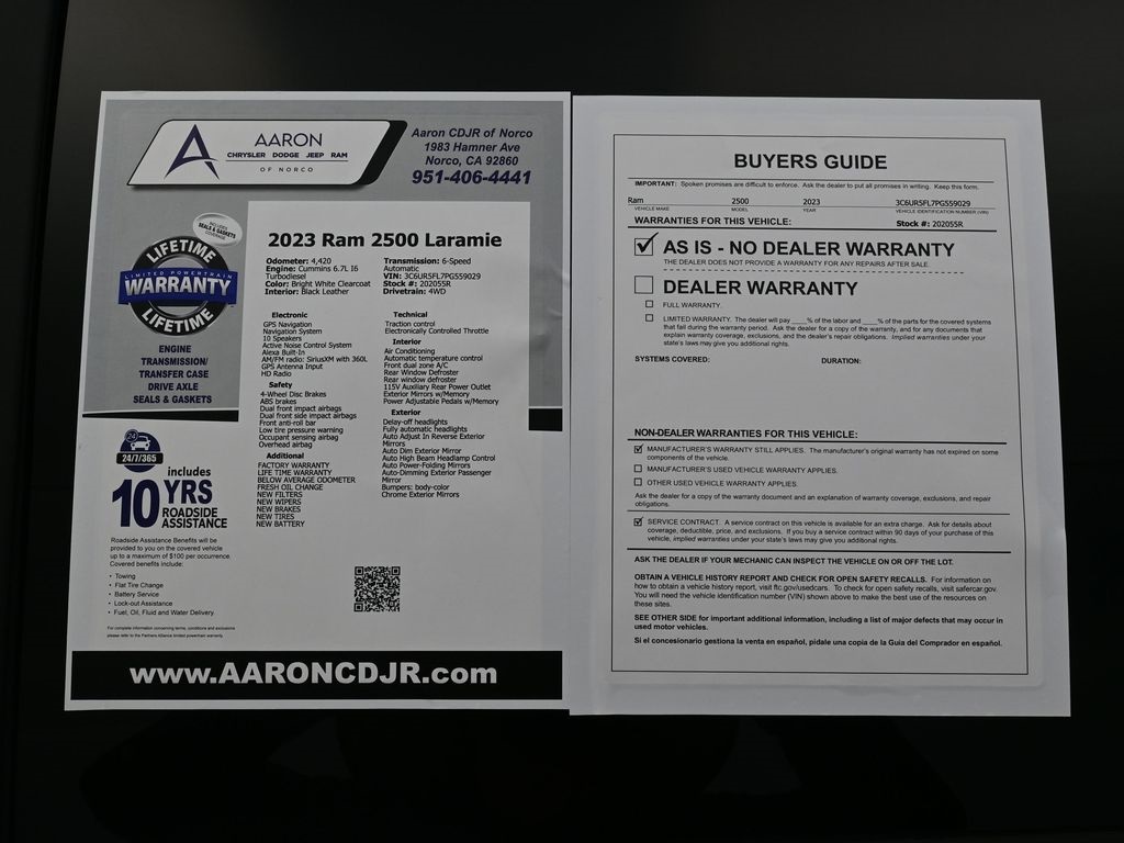 Priced below KBB Fair Purchase Price!FACTORY WARRANTY, LIFE TIME WARRANTY, BELOW AVERAGE ODOMETER, FRESH OIL CHANGE, NEW FILTERS, NEW WIPERS, 2500 Laramie, 4D Crew Cab, Cummins 6.7L I6 Turbodiesel, 6-Speed Automatic, 4WD, 12" Touchscreen Display, 2nd Row In Floor Storage Bins, 4G LTE Wi-Fi Hot Spot, Alexa Built-In, Alloy wheels, Apple CarPlay, Auto Adjust In Reverse Exterior Mirrors, Auto Dim Exterior Mirror, Auto High Beam Headlamp Control, Auto Power-Folding Mirrors, Auto-Dimming Exterior Passenger Mirror, Blind Spot & Cross Path Detection, Chrome Exterior Mirrors, Compass, Connected Travel & Traffic Services, Connectivity - US/Canada, Disassociated Touchscreen Display, Exterior Mirrors Courtesy Lamps, Exterior Mirrors w/Heating Element, Exterior Mirrors w/Memory, Exterior Mirrors w/Supplemental Signals, Foam Bottle Insert (Door Trim Panel), For Details, Visit DriveUconnect.com, For More Info, Call 800-643-2112, Forward & Reverse Utility Lights, Front LED Fog Lamps, Global Telematics Box Module (TBM), Google Android Auto, GPS Antenna Input, GPS Navigation, HD Radio, Heated Front Seats, Integrated Voice Command w/Bluetooth, Laramie Level 1 Equipment Group, LED Reflector Headlamps, Low tire pressure warning, Mirror Running Lights, Navigation System, Off-Road Information Pages, Overhead airbag, ParkSense Front/Rear Park Assist System, ParkView Rear Back-Up Camera, Power Adjust Mirrors, Power Adjustable Convex Aux Mirrors, Power Adjustable Pedals w/Memory, Power Heated Fold Telescopic Mirrors w/Memory, Power Telescoping Mirrors, Radio: Uconnect 5 Nav w/12.0" Display, Radio/Driver Seat/Mirrors/Pedals Memory, Rain Sensitive Windshield Wipers, Rear Power Sliding Window, Rear Window Defroster, Remote Tailgate Release, Selectable Tire Fill Alert, SiriusXM Radio Service, SiriusXM w/360L, Trailer Tow Pages.CARFAX One-Owner.