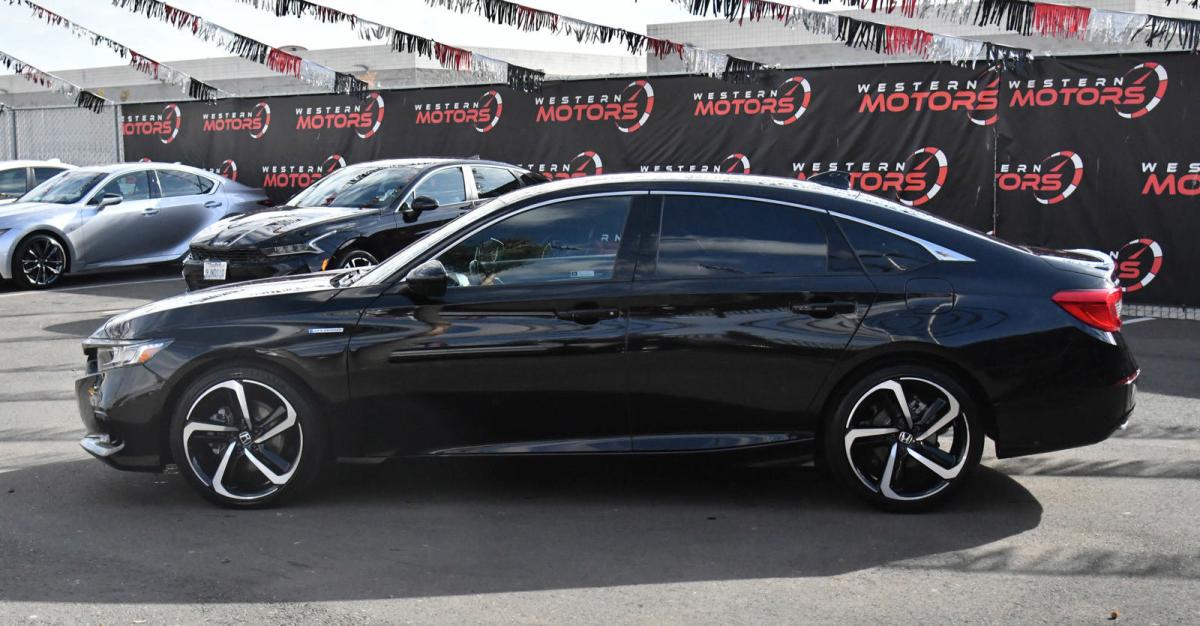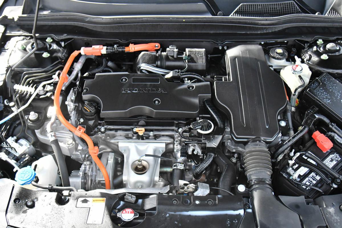 Scores 41 Highway MPG and 44 City MPG! This Honda Accord Hybrid boasts a Gas/Electric I-4 2.0 L/122 engine powering this Variable transmission. Wheels: 19 Machine-Finished Alloy w/Black Inserts, Vehicle Stability Assist (VSA) Electronic Stability Control (ESC), Valet Function.*This Honda Accord Hybrid Features the Following Options *Trunk Rear Cargo Access, Trip Computer, Transmission: Electronic Continuously Variable -inc: sport mode and deceleration selectors, Tires: 235/40R19 96V AS, Tire mobility kit, Strut Front Suspension w/Coil Springs, Speed Sensitive Variable Intermittent Wipers, Single Stainless Steel Exhaust, Side Impact Beams, Seats w/Cloth Back Material.