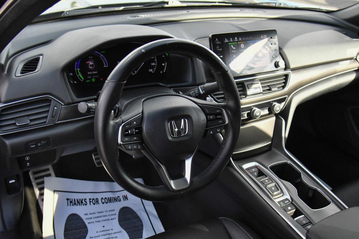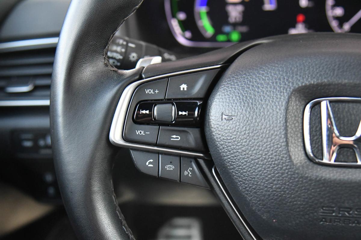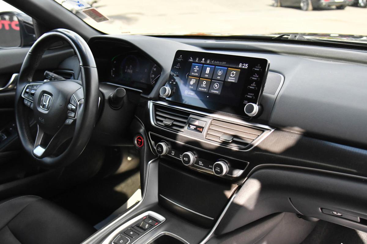 Scores 41 Highway MPG and 44 City MPG! This Honda Accord Hybrid boasts a Gas/Electric I-4 2.0 L/122 engine powering this Variable transmission. Wheels: 19 Machine-Finished Alloy w/Black Inserts, Vehicle Stability Assist (VSA) Electronic Stability Control (ESC), Valet Function.*This Honda Accord Hybrid Features the Following Options *Trunk Rear Cargo Access, Trip Computer, Transmission: Electronic Continuously Variable -inc: sport mode and deceleration selectors, Tires: 235/40R19 96V AS, Tire mobility kit, Strut Front Suspension w/Coil Springs, Speed Sensitive Variable Intermittent Wipers, Single Stainless Steel Exhaust, Side Impact Beams, Seats w/Cloth Back Material.