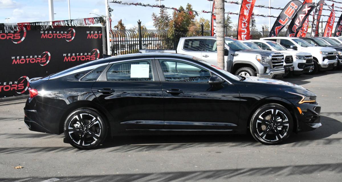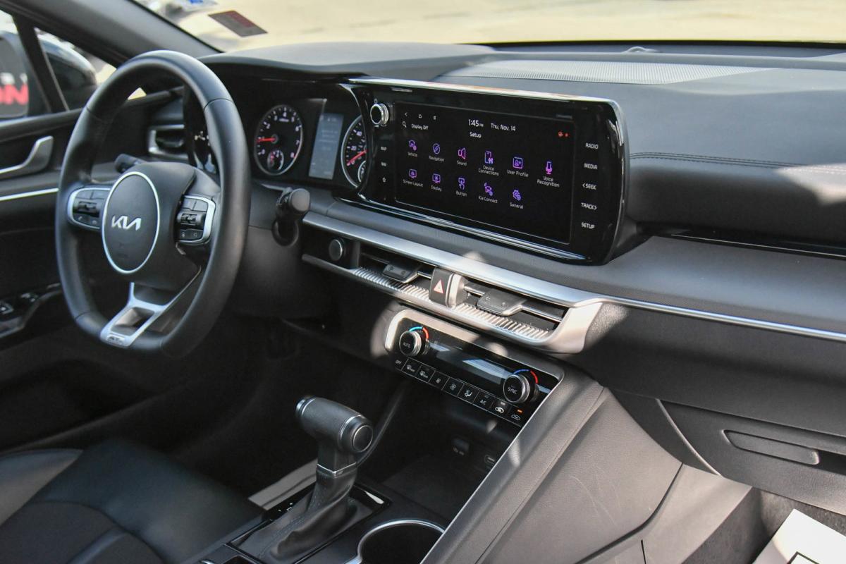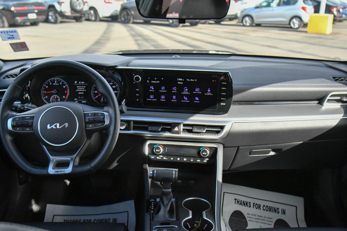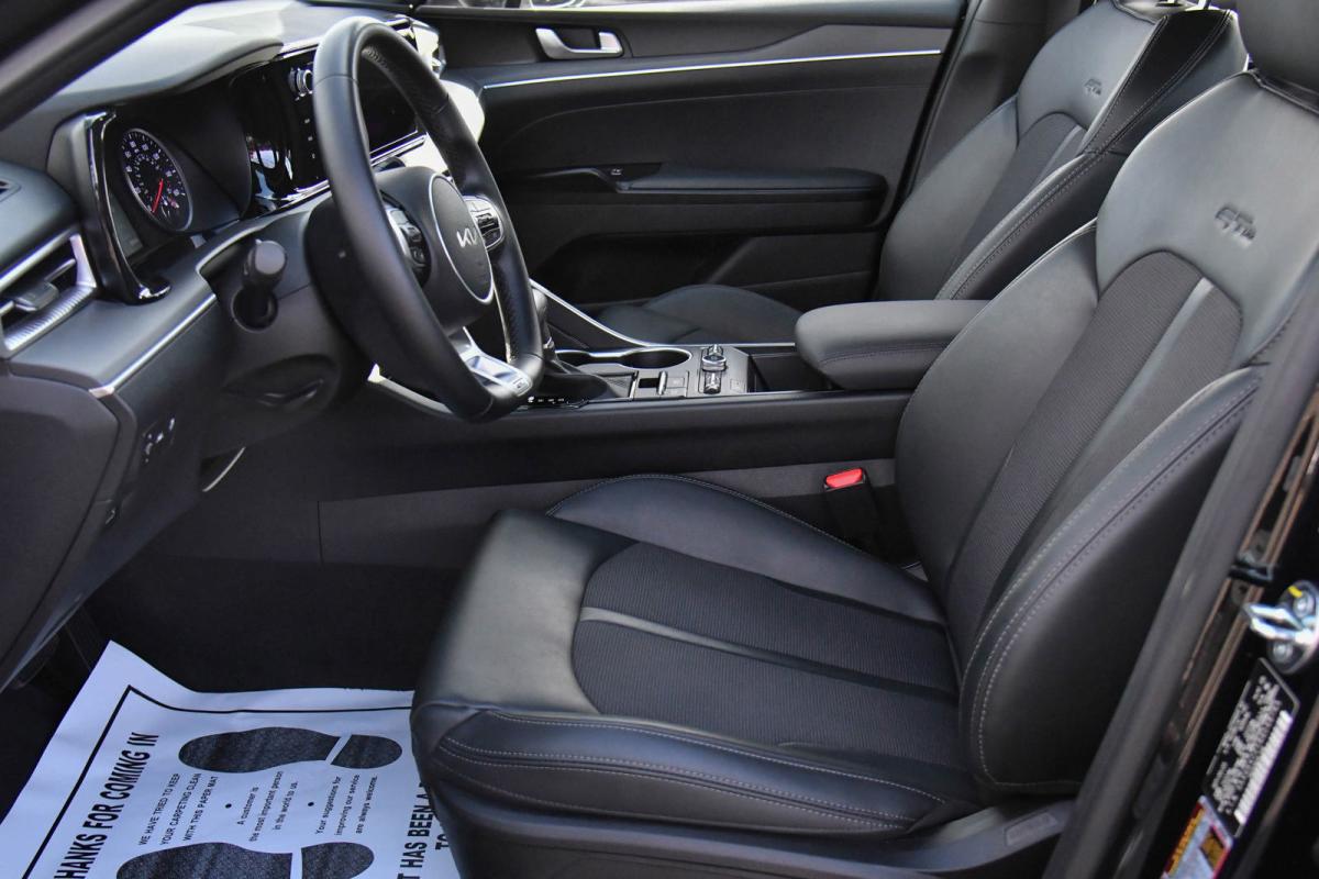 Only 6,840 Miles! Boasts 37 Highway MPG and 27 City MPG! This Kia K5 boasts a Intercooled Turbo Regular Unleaded I-4 1.6 L/98 engine powering this Automatic transmission. EBONY BLACK, CARPETED FLOOR MATS, BLACK, CLOTH/SYNTEX SEAT TRIM -inc: GT-Line logo.*This Kia K5 Features the Following Options *Window Grid Antenna, Wheels: 18 Gloss Black Machined Finish Alloy, Variable Intermittent Wipers, Urethane Gear Shifter Material, Turn-By-Turn Navigation Directions, Trunk Rear Cargo Access, Trip Computer, Transmission: 8-Speed Automatic -inc: drive mode select system, Transmission w/Sequential Shift Control, Tires: 235/45R18.