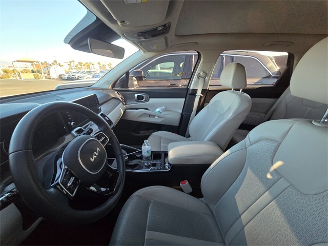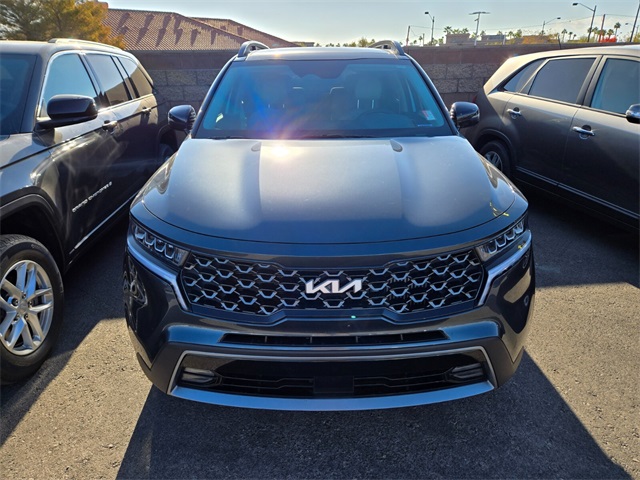 22/27 City/Highway MPGGravity Gray 2022 Kia Sorento X-Line EX AWD 8-Speed DCT 2.5L I4 DGI Turbocharged DOHC 16V LEV3-ULEV70 281hp AWD.If you don't drive here, you can't save here!Price may not include recon fee. AWD, 3.316 Axle Ratio, 3rd row seats: split-bench, 4-Wheel Disc Brakes, 6 Speakers, ABS brakes, Air Conditioning, Alloy wheels, AM/FM radio: SiriusXM, Apple CarPlay & Android Auto, Auto High-beam Headlights, Automatic temperature control, Brake assist, Bumpers: body-color, Carpeted Floor Mats, Delay-off headlights, Driver door bin, Driver vanity mirror, Dual front impact airbags, Dual front side impact airbags, Electronic Stability Control, Emergency communication system: UVO Link, Exterior Parking Camera Rear, Four wheel independent suspension, Front anti-roll bar, Front Bucket Seats, Front Center Armrest, Front dual zone A/C, Front fog lights, Front reading lights, Fully automatic headlights, Heated door mirrors, Heated Front Bucket Seats, Heated front seats, Illuminated entry, Knee airbag, Leather Shift Knob, Leather steering wheel, Low tire pressure warning, Navigation System, Occupant sensing airbag, Outside temperature display, Overhead airbag, Overhead console, Panic alarm, Passenger door bin, Passenger vanity mirror, Power door mirrors, Power driver seat, Power Liftgate, Power moonroof, Power steering, Power windows, Radio data system, Radio: AM/FM Audio System, Rear air conditioning, Rear anti-roll bar, Rear reading lights, Rear window defroster, Rear window wiper, Remote keyless entry, Roof rack: rails only, Security system, Smart Key w/ Push Button and Remote Start, Speed control, Speed-sensing steering, Split folding rear seat, Spoiler, Steering wheel mounted audio controls, SynTex Artificial Leather Seat Trim, Tachometer, Telescoping steering wheel, Tilt steering wheel, Traction control, Trip computer, Turn signal indicator mirrors, Variably intermittent wipers, and Wheels: 8.5J x 20" Matte Gray Alloy.