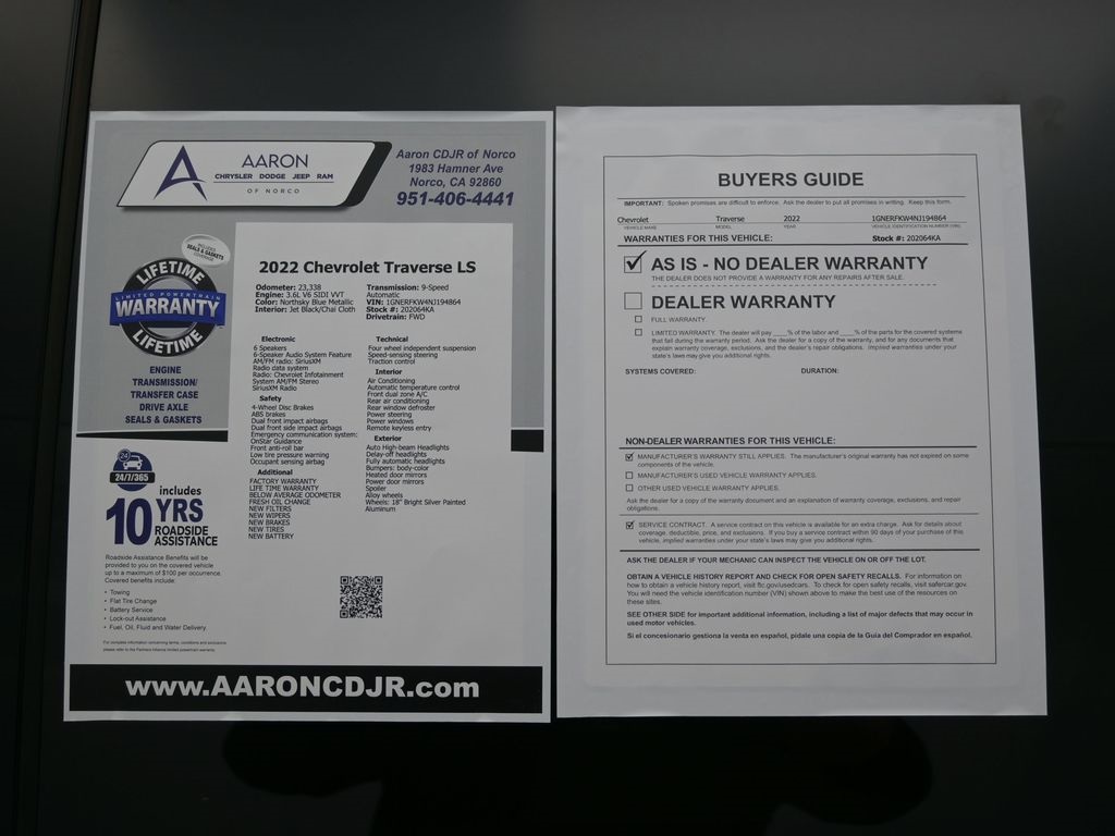 Priced below KBB Fair Purchase Price!LIFE TIME WARRANTY, BELOW AVERAGE ODOMETER, FRESH OIL CHANGE, NEW FILTERS, NEW WIPERS, Traverse LS, 4D Sport Utility, 3.6L V6 SIDI VVT, 9-Speed Automatic, FWD, 3rd row seats: split-bench, 6-Speaker Audio System Feature, Alloy wheels, Apple CarPlay/Android Auto, Cargo Package (LPO), Compass, Exterior Parking Camera Rear, Front dual zone A/C, Front License Plate Bracket Mounting Package, Low tire pressure warning, Overhead airbag, Preferred Equipment Group 1LS, Radio: Chevrolet Infotainment System AM/FM Stereo, Retractable Cargo Shade, SiriusXM Radio, Vertical Cargo Net (LPO), Wheels: 18" Bright Silver Painted Aluminum.Clean CARFAX.CARFAX One-Owner.