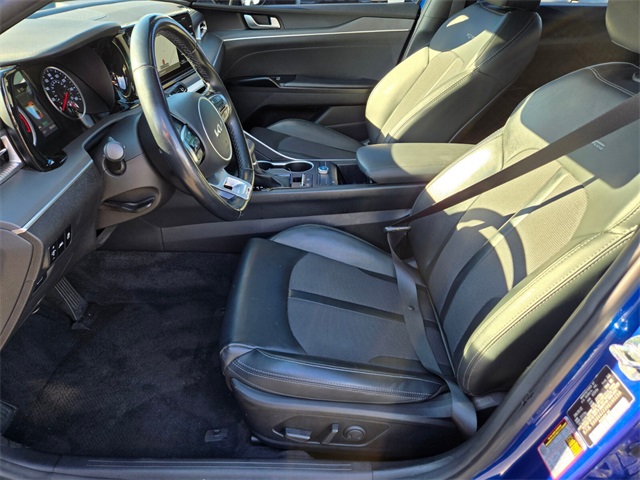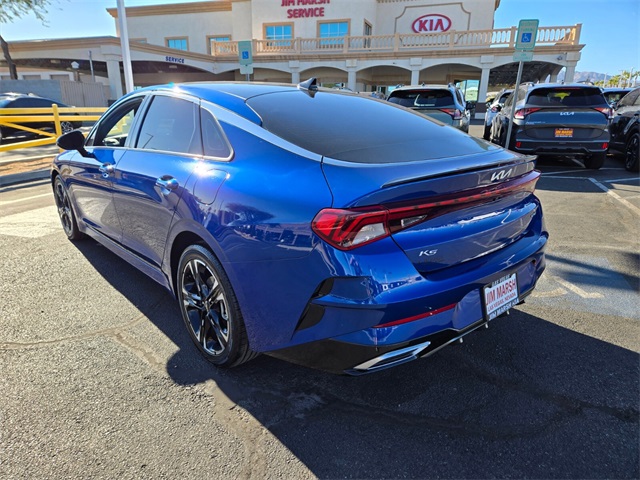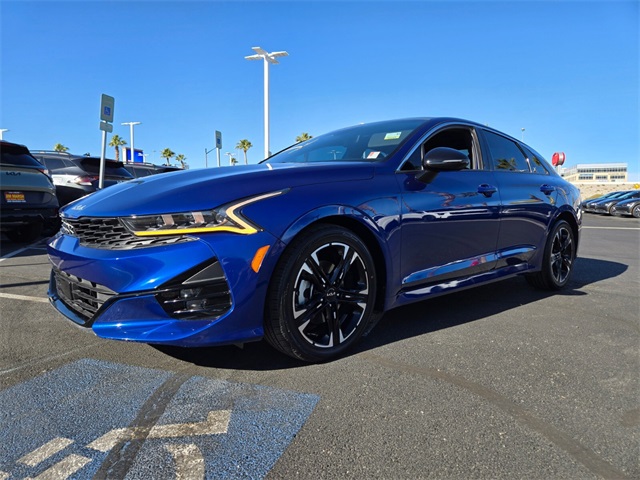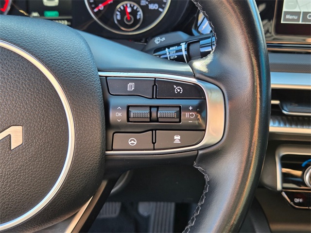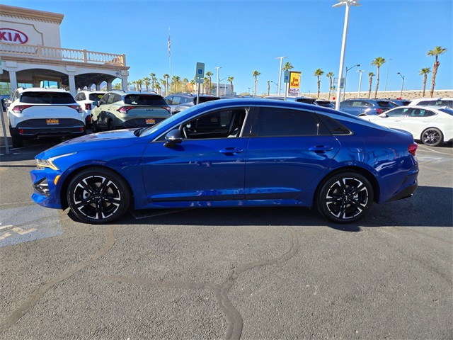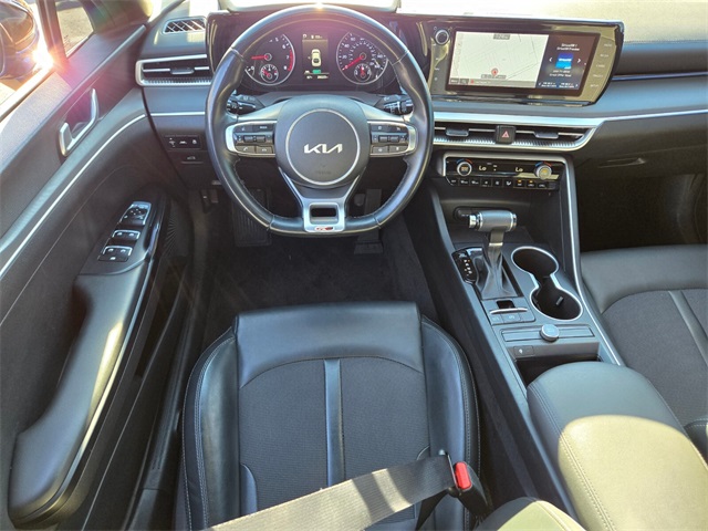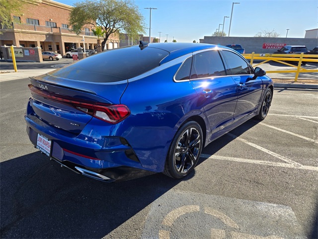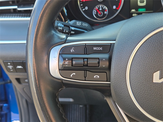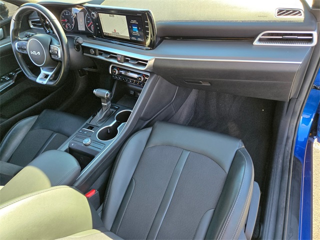 Priced below KBB Fair Purchase Price!27/37 City/Highway MPGSapphire Blue 2022 Kia K5 GT-Line FWD 8-Speed Automatic I4If you don't drive here, you can't save here!Price may not include recon fee. GT-Line FWD Premium Package (Forward Collision Avoidance-Assist - Junction Turn, LED Projection Headlights, Navigation-Based Smart Cruise Control - Curve, and Smart Cruise Control w/Stop & Go), 4-Wheel Disc Brakes, 6 Speakers, ABS brakes, Air Conditioning, Alloy wheels, AM/FM radio: SiriusXM, Apple CarPlay & Android Auto, Auto High-beam Headlights, Automatic temperature control, Brake assist, Bumpers: body-color, Carpeted Floor Mats, Cloth/Leatherette Seat Trim, Delay-off headlights, Driver door bin, Driver vanity mirror, Dual front impact airbags, Dual front side impact airbags, Electronic Stability Control, Four wheel independent suspension, Front anti-roll bar, Front Center Armrest, Front dual zone A/C, Front fog lights, Front reading lights, Fully automatic headlights, Heated door mirrors, Illuminated entry, Knee airbag, Low tire pressure warning, Navigation System, Occupant sensing airbag, Outside temperature display, Overhead airbag, Overhead console, Panic alarm, Passenger door bin, Passenger vanity mirror, Power door mirrors, Power driver seat, Power steering, Power windows, Radio data system, Radio: AM/FM/MP3 Audio System, Rear anti-roll bar, Rear seat center armrest, Rear side impact airbag, Rear window defroster, Remote keyless entry, Security system, Speed control, Speed-sensing steering, Split folding rear seat, Spoiler, Sport steering wheel, Steering wheel mounted audio controls, Tachometer, Telescoping steering wheel, Tilt steering wheel, Traction control, Trip computer, Turn signal indicator mirrors, Variably intermittent wipers, and Wheels: 7.5J x 18" Gloss Black Machined Finish Alloy.