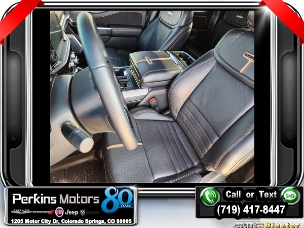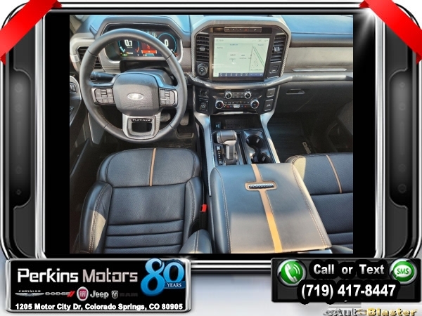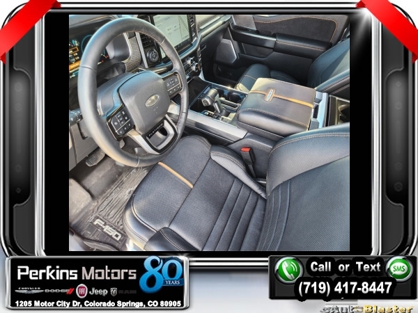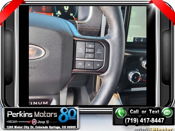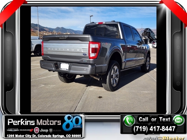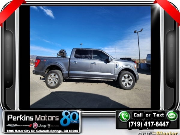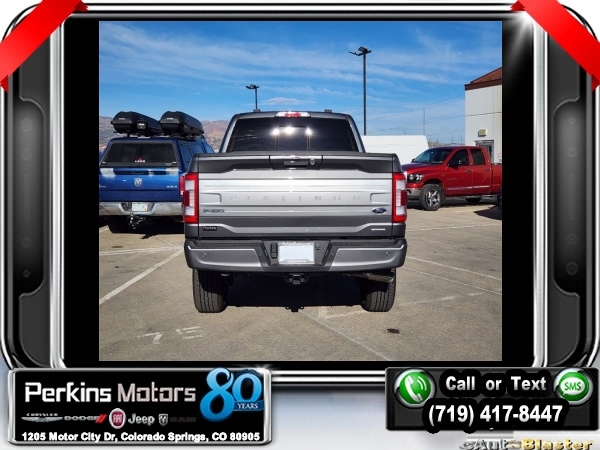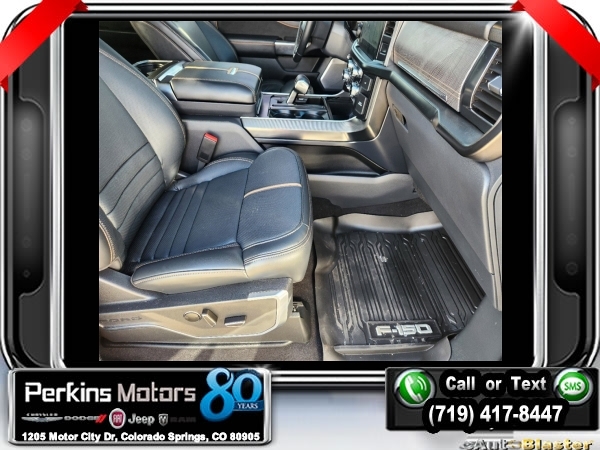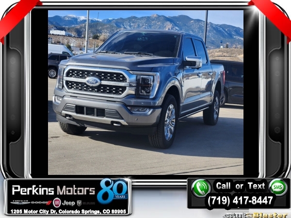 Carbonized Gray Metallic 4WD 3.5L V6 EcoBoost 10-Speed Automatic<br><br>4WD, 20 Polished Aluminum Wheels, 360 Degree Camera, Active Park Assist 2.0, Bed Utility Package, BoxLink, Class IV Trailer Hitch Receiver, Electronic Locking w/3.55 Axle Ratio, Equipment Group 701A High, Extended Range 36 Gallon Fuel Tank, Ford BlueCruise 1.0, Integrated Trailer Brake Controller, LED Box Lighting, Max Trailer Tow Package, Power Tailgate, Pro Trailer Backup Assist & Pro Trailer Hitch Assist, Radio: B&O Unleashed Sound System by Bang & Olufsen, Remote keyless entry, Steering wheel mounted audio controls, Tailgate Step w/Tailgate Work Surface, Twin Panel Moonroof.<br><br><br>CARFAX One-Owner. Clean CARFAX.<br><br>Check us out at www.perkinsmotors.com to see our specials! Since opening our doors in 1944, we’ve been proud to serve Colorado Springs, CO, and the surrounding areas of Pueblo, Castle Rock and Denver, CO. Throughout this time of being family owned for 80 years, we’ve maintained a firm commitment to our customers: to offer a wide selection of New Chrysler, Dodge, Fiat, Jeep, and Ram vehicles and quality pre-owned vehicles, and provide a quick, no-hassle car-buying process that ensures everyone drives off the lot satisfied with their purchase.<br><br><br>Bed Utility Package (BoxLink, LED Box Lighting, Power Tailgate, and Tailgate Step w/Tailgate Work Surface), Equipment Group 701A High (360 Degree Camera, Pro Trailer Backup Assist & Pro Trailer Hitch Assist, and Radio: B&O Unleashed Sound System by Bang & Olufsen), Ford BlueCruise 1.0 (Active Park Assist 2.0), Max Trailer Tow Package (Class IV Trailer Hitch Receiver, Extended Range 36 Gallon Fuel Tank, and Integrated Trailer Brake Controller), 4WD, 20 Polished Aluminum Wheels, Electronic Locking w/3.55 Axle Ratio, Remote keyless entry, Steering wheel mounted audio controls, Twin Panel Moonroof, 4-Wheel Disc Brakes, ABS brakes, Active Park Assist 2.0 Removal, Air Conditioning, Auto High-beam Headlights, Brake assist, Center High-Mounted Stop Lamp CHMSL Camera Removal, Compass, Cruise Control, Delay-off headlights, Driver door bin, Dual front impact airbags, Dual front side impact airbags, Electronic Stability Control, Emergency communication system: SYNC 4 911 Assist, Exterior Parking Camera Rear, Front anti-roll bar, Front reading lights, Front wheel independent suspension, Fully automatic headlights, Heated door mirrors, Illuminated entry, Inclination/Intrusion Sensor Removal, Interior Work Surface, LED Sideview Mirror Spotlights, Low tire pressure warning, Multicontour Seats w/Active Motion Removal, Occupant sensing airbag, Outside temperature display, Overhead airbag, Overhead console, Panic alarm, Passenger door bin, Passenger vanity mirror, Power door mirrors, Power steering, Power windows, Radio data system, Radio: B&O Sound System by Bang & Olufsen, Rear step bumper, Security system, Speed-sensing steering, Split folding rear seat, SYNC 4 w/Enhanced Voice Recognition, Tachometer, Telescoping steering wheel, Tilt steering wheel, Traction control, Trip computer, Variably intermittent wipers, and Voltmeter.