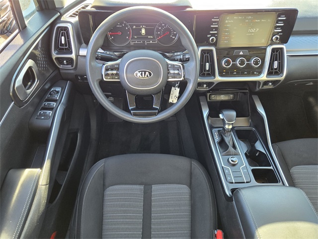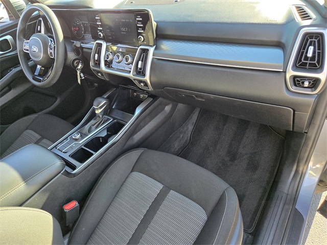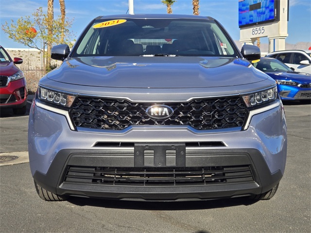 24/29 City/Highway MPGEverlasting Silver 2021 Kia Sorento LX FWD 8-Speed Automatic 2.5L I4 DGI DOHC 16V LEV3-ULEV70 191hpIf you don't drive here, you can't save here!Price may not include recon fee. 17" Alloy Wheels, 3.798 Axle Ratio, 3rd row seats: split-bench, 4-Wheel Disc Brakes, 6 Speakers, ABS brakes, Air Conditioning, Alloy wheels, AM/FM radio, Apple CarPlay & Android Auto, Auto High-beam Headlights, Brake assist, Bumpers: body-color, Carpeted Floor Mats, Cloth Seat Trim, Delay-off headlights, Driver door bin, Driver vanity mirror, Dual front impact airbags, Dual front side impact airbags, Electronic Stability Control, Exterior Parking Camera Rear, Four wheel independent suspension, Front anti-roll bar, Front Bucket Seats, Front Center Armrest, Front reading lights, Fully automatic headlights, Heated door mirrors, Illuminated entry, Knee airbag, Low tire pressure warning, Occupant sensing airbag, Outside temperature display, Overhead airbag, Overhead console, Panic alarm, Passenger door bin, Passenger vanity mirror, Power door mirrors, Power steering, Power windows, Radio data system, Radio: AM/FM Audio System, Rear anti-roll bar, Rear seat center armrest, Rear window defroster, Rear window wiper, Remote keyless entry, Security system, Speed control, Speed-sensing steering, Split folding rear seat, Spoiler, Steering wheel mounted audio controls, Tachometer, Telescoping steering wheel, Tilt steering wheel, Traction control, Trip computer, Turn signal indicator mirrors, and Variably intermittent wipers.