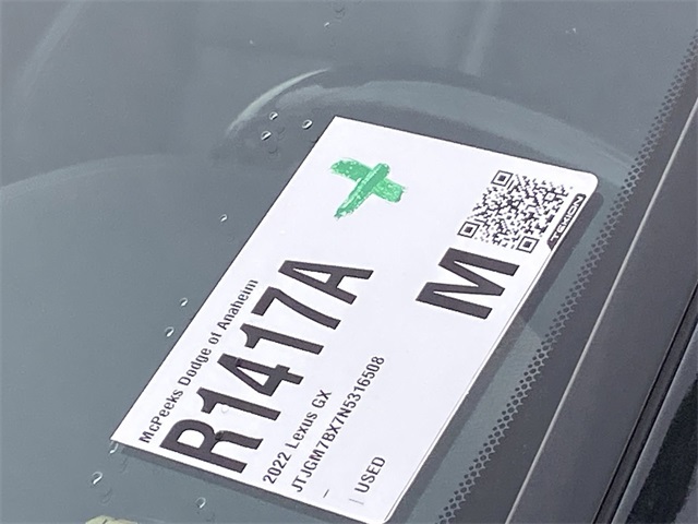 Clean CARFAX. CARFAX One-Owner. INTERIOR & MCPEEK CHRYSLER DODGE JEEP RAM FAMILY OWNED AND OPERATED SINCE 1961 !!!!!, 19" x 7.5J Aluminum Alloy Wheels, 3.909 Axle Ratio, 3rd row seats: split-bench, 4-Wheel Disc Brakes, 9 Speakers, ABS brakes, Adaptive suspension, Air Conditioning, Alloy wheels, AM/FM radio: SiriusXM, Anti-whiplash front head restraints, Apple CarPlay/Android Auto, Auto High-beam Headlights, Auto tilt-away steering wheel, Auto-dimming door mirrors, Auto-dimming Rear-View mirror, Auto-leveling suspension, Automatic temperature control, Brake assist, Bumpers: body-color, CD player, Compass, Delay-off headlights, Driver door bin, Driver vanity mirror, Driver's Seat Mounted Armrest, Dual front impact airbags, Dual front side impact airbags, Electronic Stability Control, Emergency communication system, Exterior Parking Camera Rear, Front anti-roll bar, Front Bucket Seats, Front dual zone A/C, Front fog lights, Front reading lights, Front wheel independent suspension, Fully automatic headlights, Garage door transmitter: HomeLink, Genuine wood console insert, Genuine wood dashboard insert, Genuine wood door panel insert, Headlight cleaning, Heated & Ventilated Front Bucket Seats, Heated door mirrors, Heated front seats, Heated rear seats, Heated steering wheel, Illuminated entry, Illuminated running boards, Knee airbag, Leather Shift Knob, Leather steering wheel, Low tire pressure warning, Mark Levinson Surround Sound System, Memory seat, Navigation System, Occupant sensing airbag, Outside temperature display, Overhead airbag, Overhead console, Panic alarm, Passenger door bin, Passenger seat mounted armrest, Passenger vanity mirror, Power door mirrors, Power driver seat, Power moonroof, Power passenger seat, Power steering, Power windows, Radio data system, Radio: Lexus Multimedia System w/Navigation, Rain sensing wipers, Rear air conditioning, Rear anti-roll bar, Rear reading lights, Rear seat center armrest, Rear side impact airbag, Rear window defroster, Rear window wiper, Remote keyless entry, Roof rack: rails only, Security system, Semi-Aniline Leather Seat Trim, Speed control, Speed-sensing steering, Split folding rear seat, Spoiler, Steering wheel memory, Steering wheel mounted audio controls, Tachometer, Telescoping steering wheel, Tilt steering wheel, Traction control, Trip computer, Turn signal indicator mirrors, Variably intermittent wipers, Ventilated front seats.Black Onyx 2022 Lexus GX 460 Luxury 4WD 6-Speed Automatic with Sequential Shift ECTReceive Free lube and oil filter changes for up to 45,000 miles for 3 years!!! McPeek's Dodge of Anahiem 1221 S. Auto Center Drive Anahiem, CA 92806 714-262-4902.
